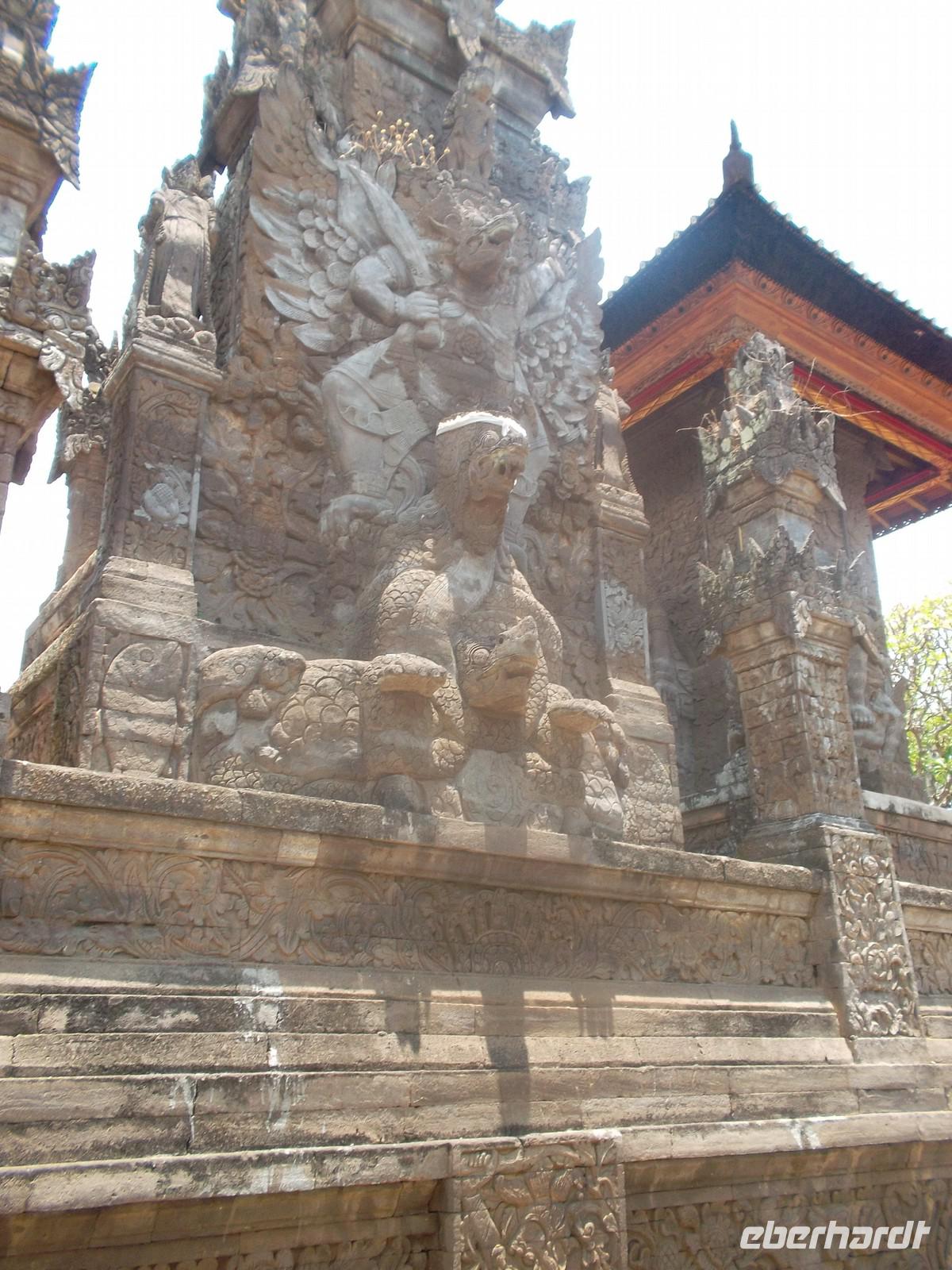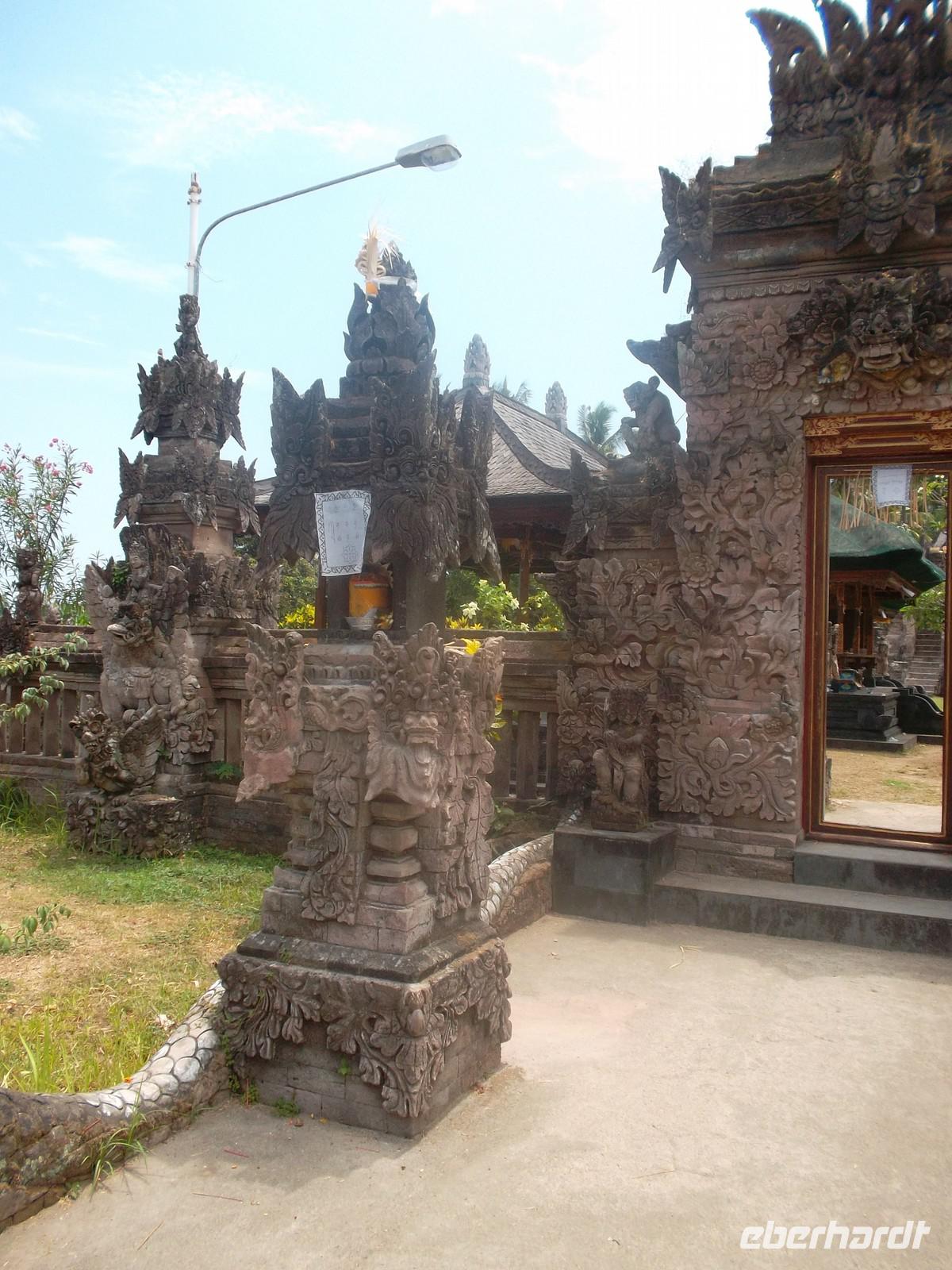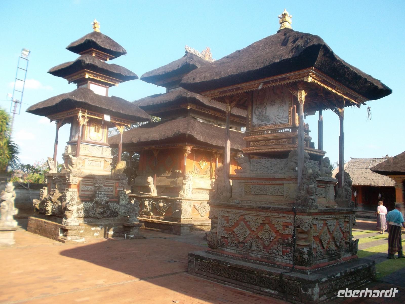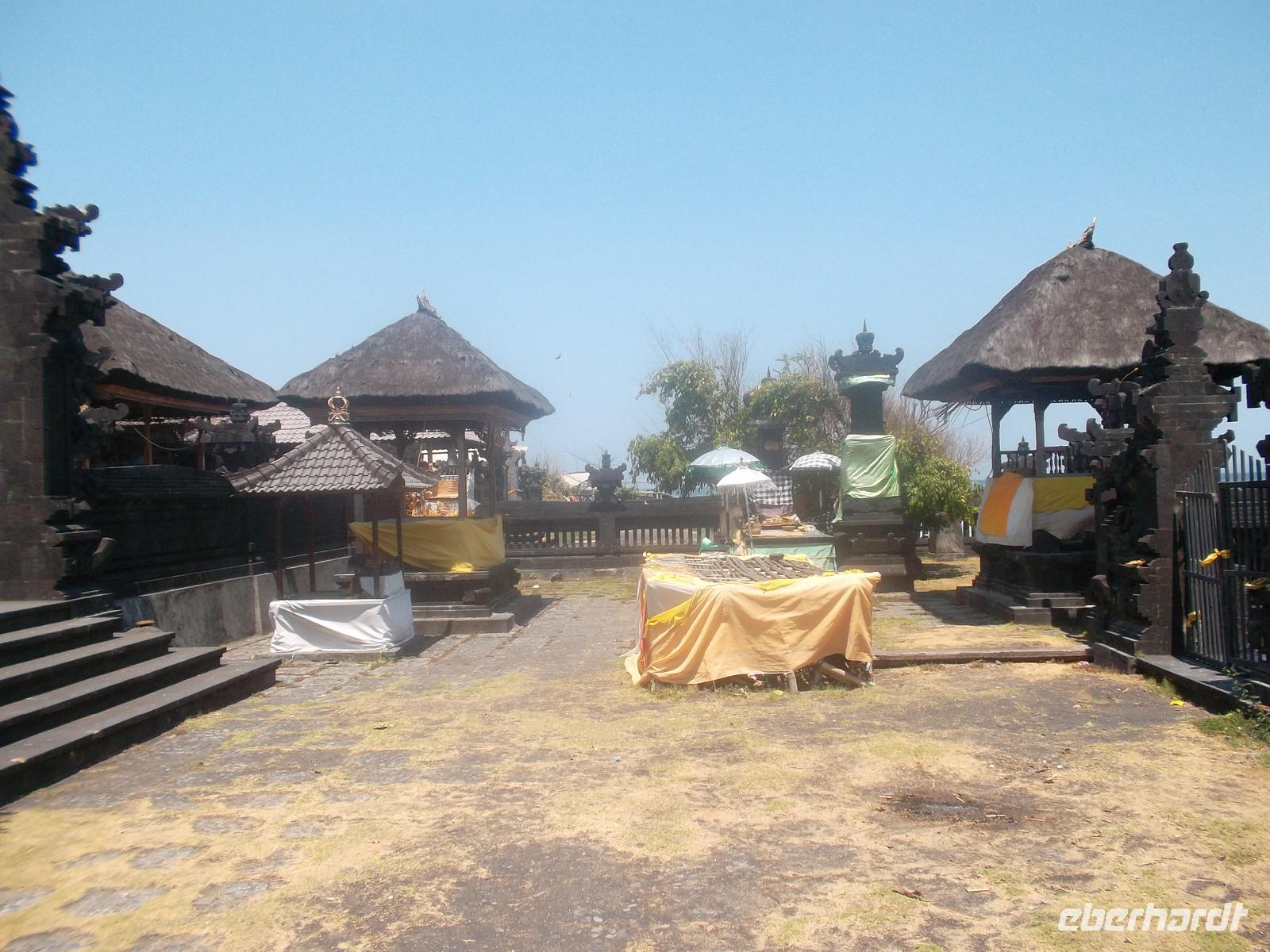 Im Zentrum liegt der Pura Panataran Agung Besakih, in dem der „eine" Gott - nach der indischen Terminologie als Trimurti, also als Hindu-Dreifaltigkeit Brahma-Shiva-Vishnu - verehrt wird. Zwar darf man die Tempelanlage komplett umrunden, aber Zutritt wird nur Gläubigen und nur an Feiertagen gewährt.