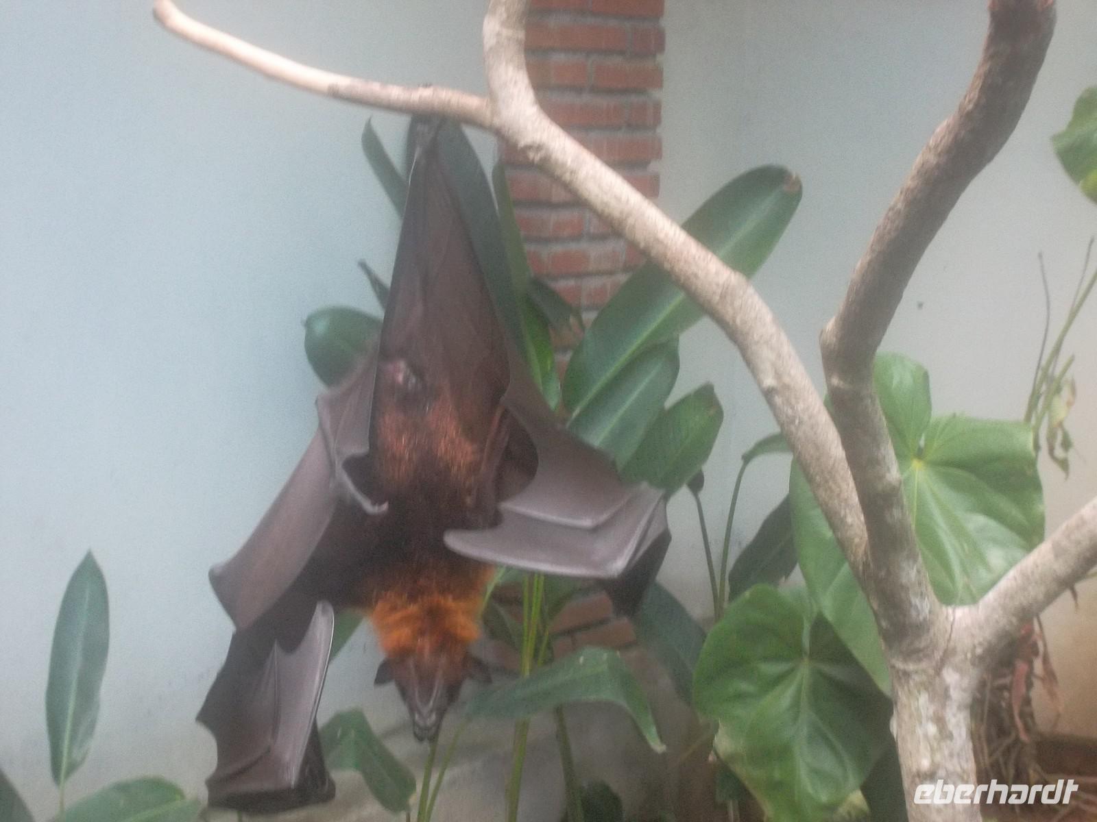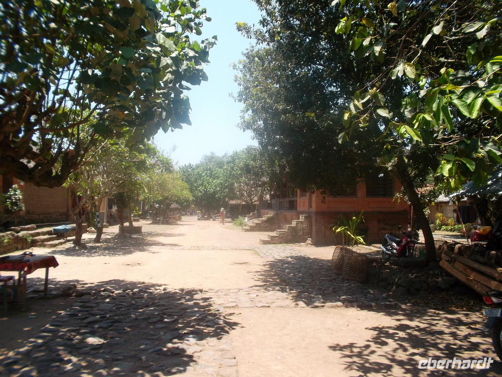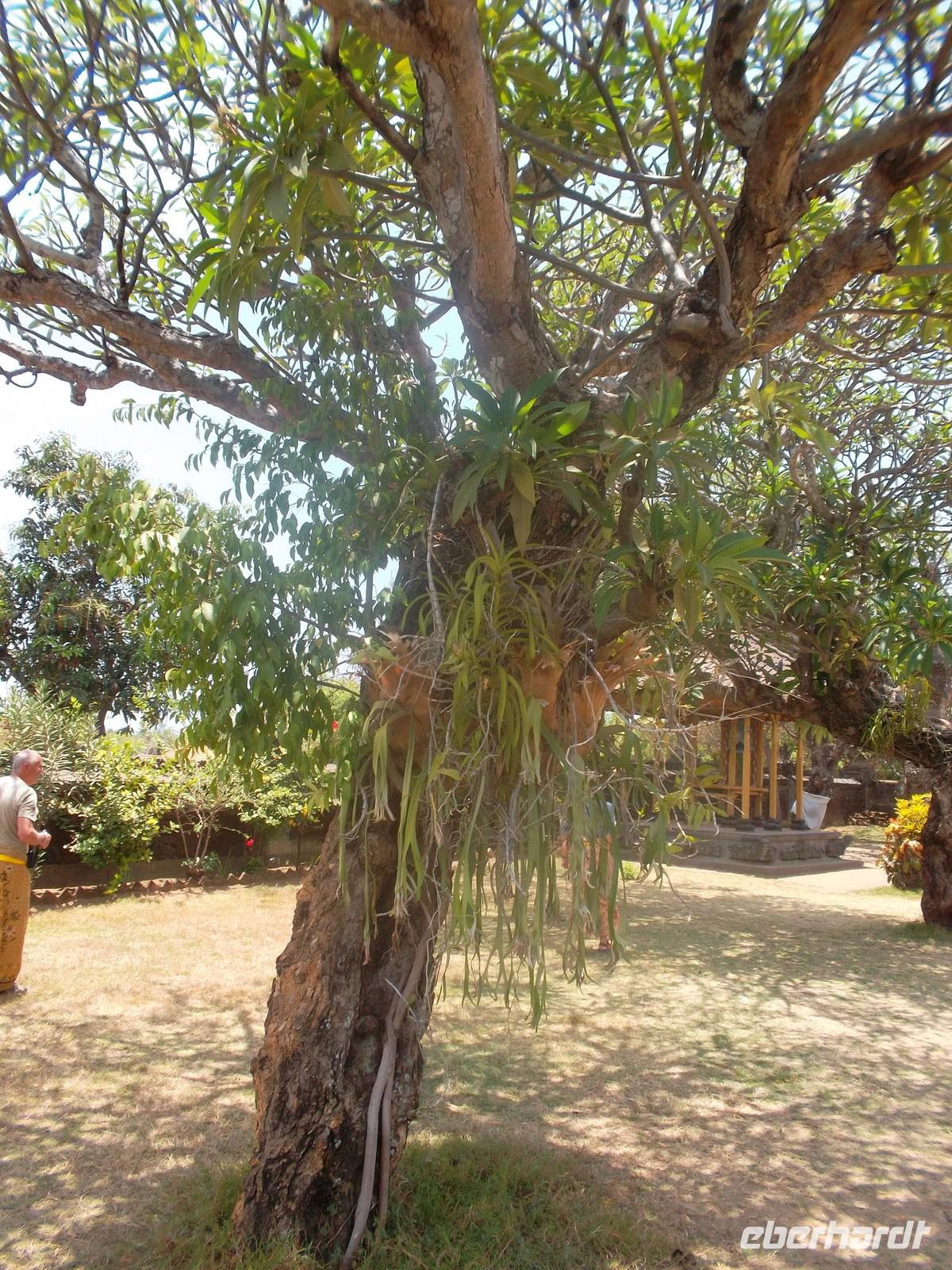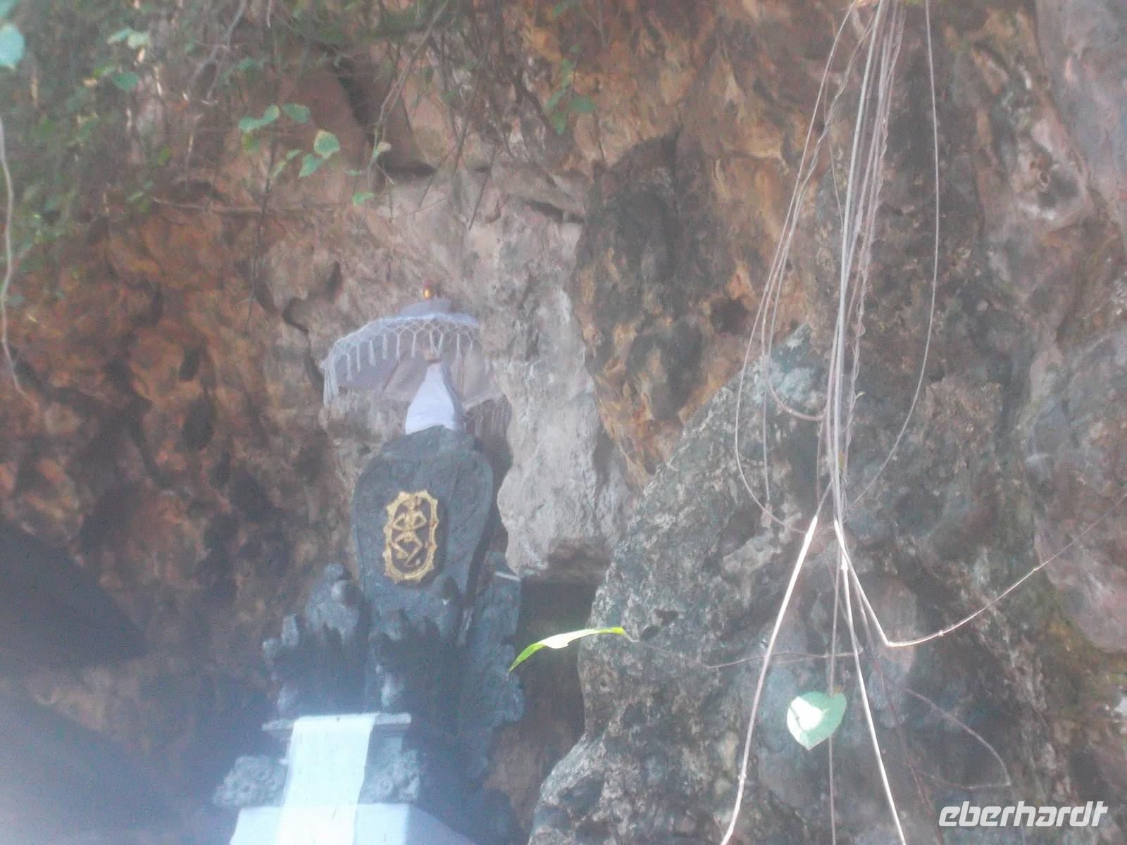 Ein interessanter Exkurs führte uns am Vormittag noch einmal in den Osten Balis, zum Goa Lawah. Dies ist einmer der bedeutendsten Tempel Balis, gelegen vor einer legendären Grotte mit zehntausenden Fledermäusen. Obwohl gerade eine Opferzeremonie stattfand, durften wir den Tempel betreten, und neben dem Allerheiligsten die heiligen Handlungen verfolgen. Dieser Tempelbesuch war wahrlich ein würdiger Abschluss unserer Reise! Es folgte der Besuch eines Bali Aga, eines traditionellen Dorfes in unveränderter Bali-Tradition. Tengganan ist ein solcher Ort, wo die Zeit stehengeblieben scheint, Die Hähne, zumeist in geflochtenen Körben gehalten, krähen auf der sonnenüberfluteten Hauptstraße, wo die Clan- und Versammlungshäuser in der Mitte stehen, während die Straße zu beiden Seiten an ihnen vorbeiläuft und die Häuser außen stehen, so dass das Dorf ein sehr langgezogenes Rechteck bildet. Hier bestimmt die Tradition u.a., dass nur die im Dorf wohnen bleiben und leben dürfen, die die alten Traditionen bewahren wollen.