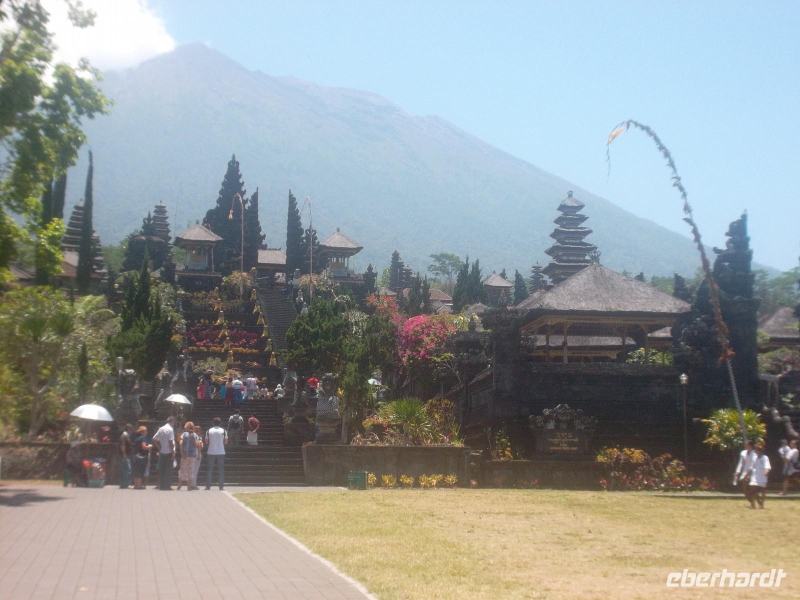 An seiner Flanke befindet sich das bedeutendste Heiligtum der hinduistisch geprägten Insel: Pura Besakih, der „Muttertempel" aller balinesischer Tempel. Er wurde vermutlich im 8. Jahrhundert gegründet und liegt auf rund 950 Meter. Die Gesamtanlage mit über 200 Gebäuden gibt sowohl den traditionellen balinesischen Fürstengeschlechtern hier ihren eigenen Bezirk als auch allen Dorfgemeinschaften Balis. Sie verfügen innerhalb des Geländes über eigene Tempel und Schreine, die jeweils von einer Mauer umgeben sind.