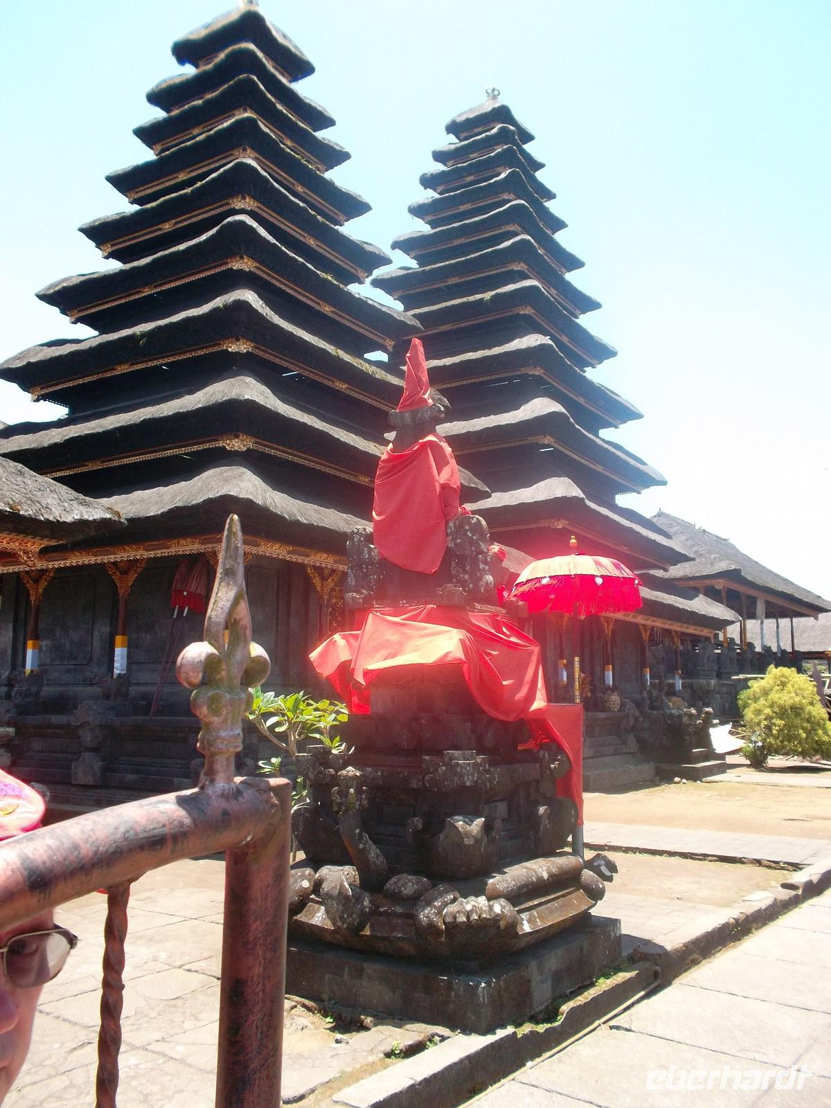 Bei der Fahrt zu unserem letzten Übernachtungsort konnten wir als „Richtig Reisen!"-Extra den roten Backsteintempel Pura Dusa Batuan einbauen, der mit vielen Nebentempeln und Opferplätzen ein Schmuckstück südbalinesischer Architektur ist.
