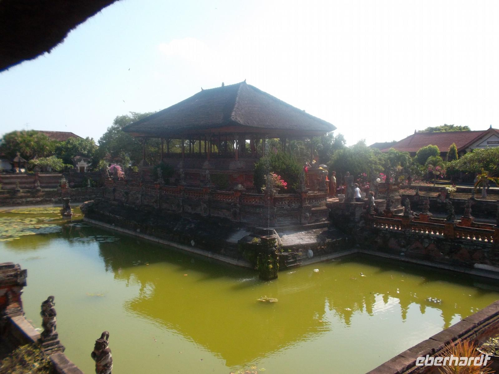 Nach dem Gewürzkauf hielten wir noch in Semarapura, einst das Zentrum von Balis wichtigstem Königreich Klungkung. Schauplatz eines Kampfes der Balinesen gegen die Kolonialmacht Niederlande ist der Ort bis heute berühmt für die Reste des einstigen Palastes, das Wasserschloß und die „Gerichtshalle" Kerta Gosa mit ihren balinesischen Gemälden. Gezeigt werden meist Geschichten aus Epen wie dem Mahabharata oder Ramayana in Bildern im klassischen Stil.