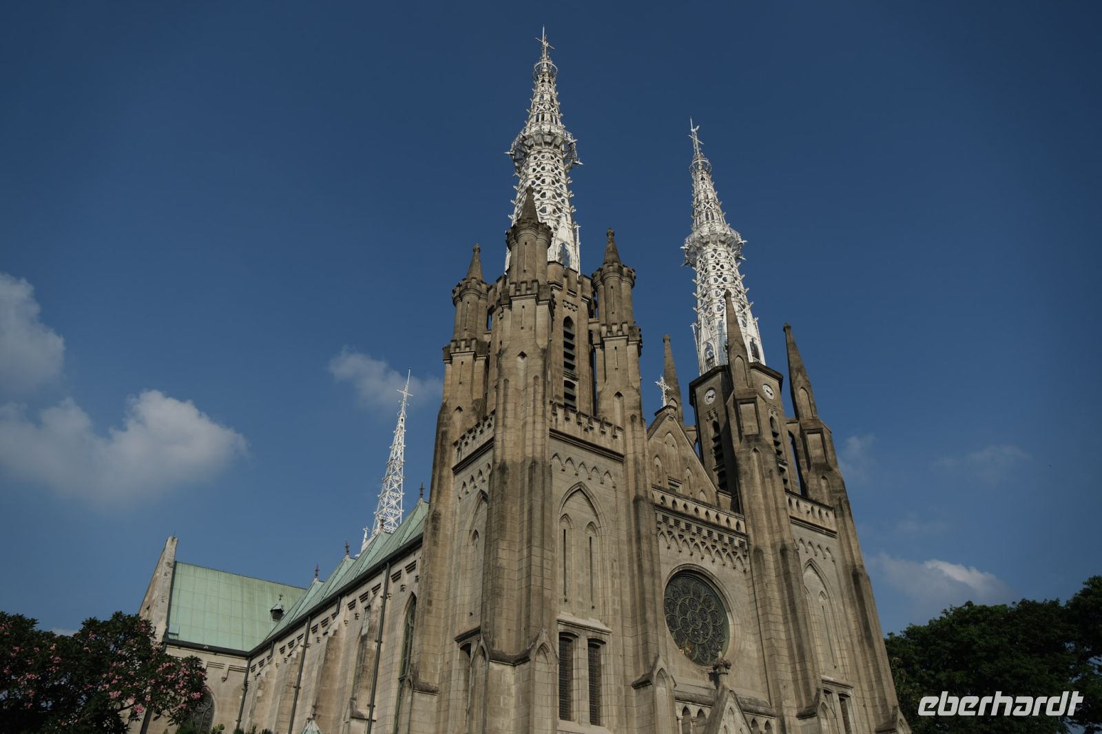 Zuerst besuchten wir die Altstadt Batavia, in der sich noch zahlreiche Spuren aus der niederländischen Kolonialzeit finden. Wir besichtigten das Museum im alten Rathaus, spazierten über den Hauptplatz und machten einen Abstecher zum historischen Hafen. Danach führte uns die Tour weiter zur beeindruckenden Istiqlal-Moschee, wo wir einen kurzen Fotostopp einlegten. Direkt gegenüber befindet sich die Kathedrale von Jakarta – beide Gebäude konnten wir aufgrund laufender Gottesdienste nur von außen betrachten, doch schon der äußere Anblick war sehr eindrucksvoll.