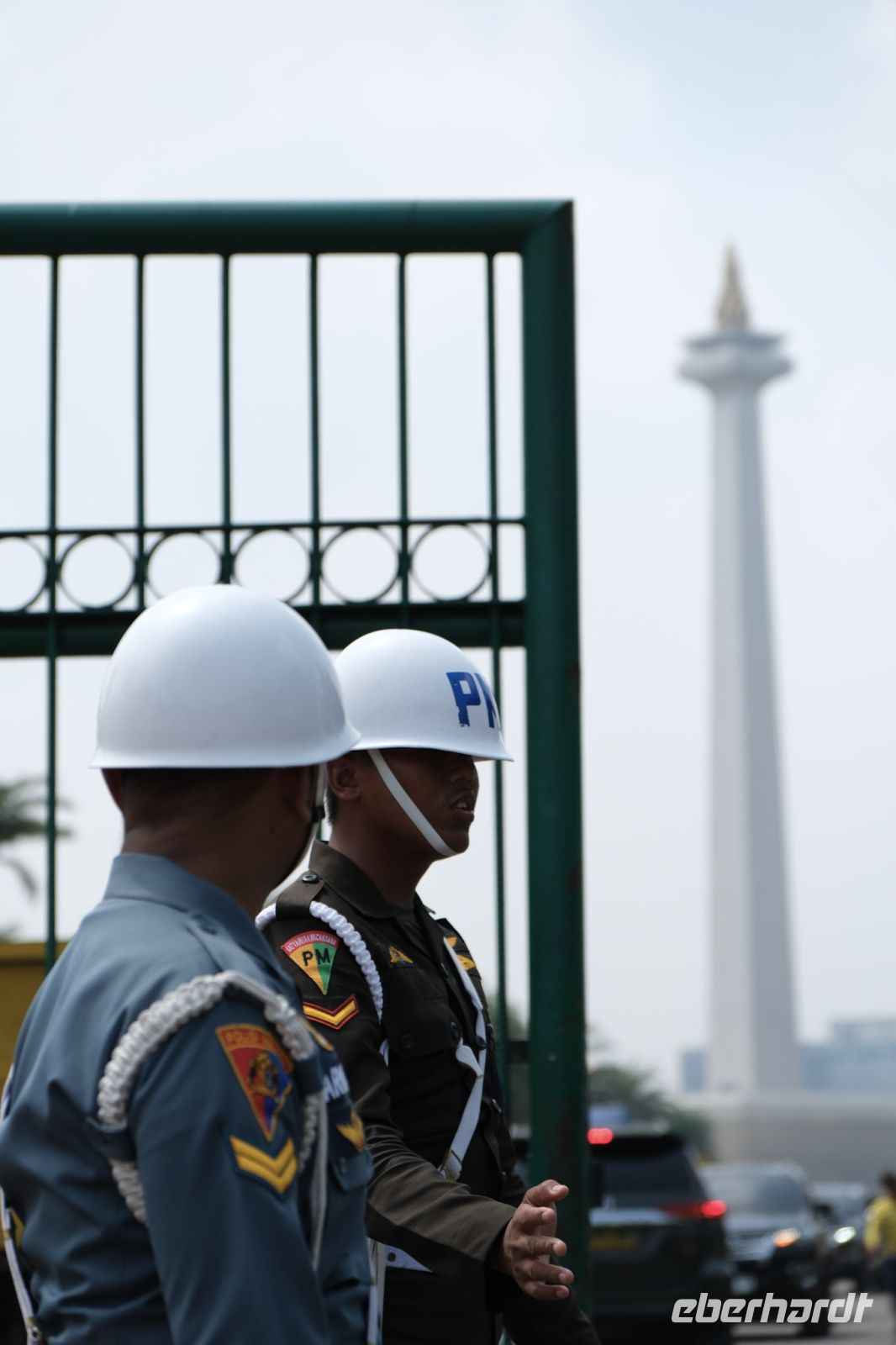 Nach einem leckeren Frühstück und einer erholsamen Nacht starteten wir gut gelaunt in den neuen Tag. Unser erstes Ziel war das Monumen Nasional, das Wahrzeichen Jakartas. Da der Verkehr in der Hauptstadt äußerst dicht und unberechenbar ist, war es eine gute Entscheidung, diesen Programmpunkt auf den heutigen Tag zu legen – am Vortag wäre es schlicht zu viel gewesen.