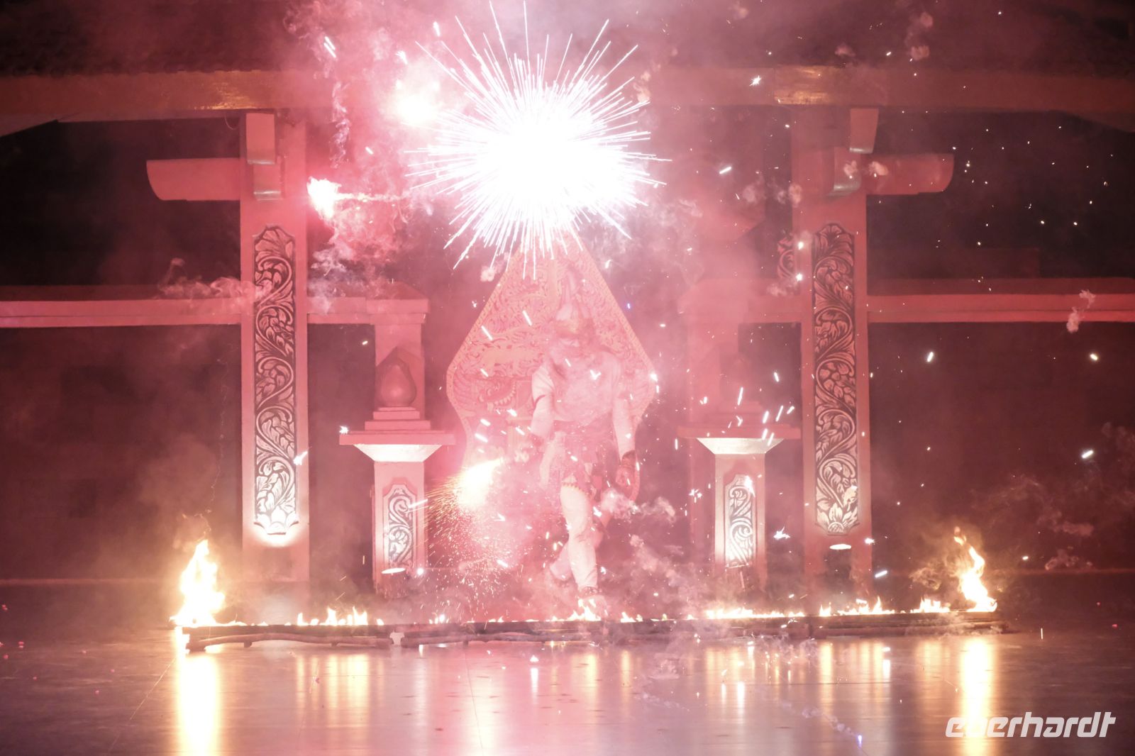 Nach dem Essen begaben wir uns in das angrenzende Theater, wo die Vorführung begann. Der Tanz erzählte die klassische Liebesgeschichte von Prinz Rama, der mit Unterstützung des Affengottes Hanuman seine entführte Gemahlin Sita aus den Fängen des Dämonenkönigs Ravana befreit. Die kunstvollen Kostüme, präzisen Bewegungen und spektakulären Feuerszenen machten den Abend zu einem eindrucksvollen Abschluss unseres Aufenthalts in Yogyakarta.