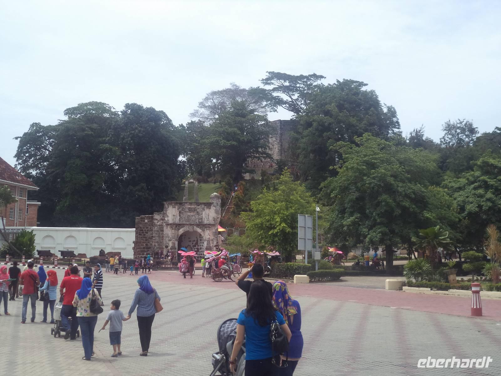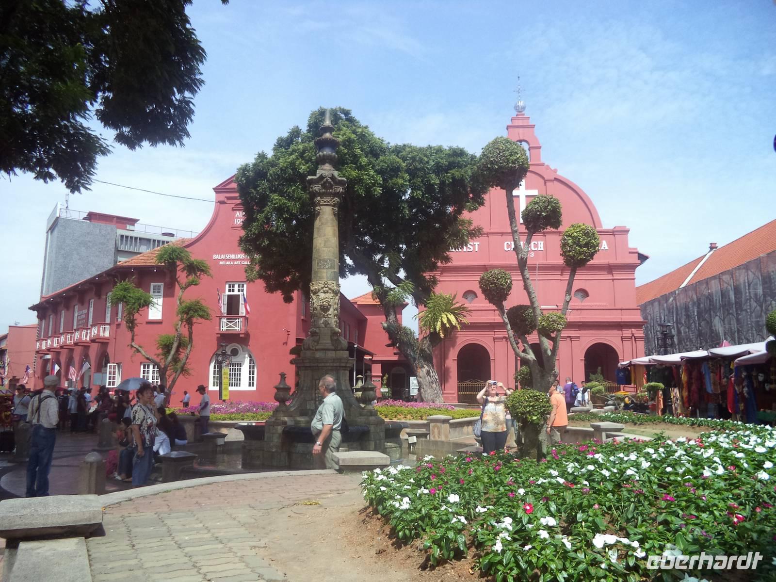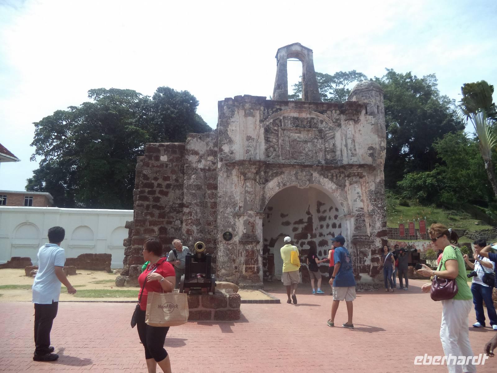 Relativ früh hieß es „Koffer laden" und wir fuhren mit dem Bus zur malaysischen Grenze, wo wir uns vom Busfahrer und Reiseführer Ishak verabschiedeten. Wie im Vorjahr unkompliziert und problemlose verlief der Grenzübergang. Dann passierte der Bus den „causeway", eine kilometerlange Brücke und verließ damit den Inselstaat Singapur, um zum malaysischen Festland zu gelangen. Auch hier alles unkompliziert - seit ein paar Wochen entfällt sogar das sonst obligatorische Ausfüllen der Einreisekarten. Direkt am Ausgang begrüßte uns unser malaysischen Reiseleiter Zulkarnain - kurz „Zul" genannt - überaus freundlich in seiner Heimat. Im kleinen Reisebus fuhren wir über die Festlands-Autobahn in Richtung Nordwesten, während Zul, der viele Jahre in Deutschland gelebt hatte, in hervorragendem Deutsch über seine asiatische Heimat und die Besonderheiten Malaysias plauderte. Nach interessanter Fahrt, nur unterbrochen durch einen kurzen Toilettenstopp an einer Autobahnraststätte, erreichten wir unser Tagesziel, die Stadt Malakka, erreichten. Heute zählt sie knapp 400.000 Einwohnern und ist nicht nur eine bedeutende Großstadt, sondern historisch gesehen eine der interessantesten Orte von Malaysia. Zwar besitzt ihr einst ungemein bekannter und wichtiger Hafen heute nur noch für die Küstenschifffahrt Bedeutung, aber die Altstadt steht unter UNESCO-Welterbeschutz und eine Besichtigung des historischen Zentrums ist ein Muss für jeden, der Malaysia kennenlernen will. In der Altstadt von Malakka ist nahezu überall koloniales Erbe spür- und sichtbar, aus mehreren Epochen. Wir begannen unsere Besichtigung an den Überresten des einst wehrhaften Santiago-Tores, erbaut von den Portugiesen und später holländisch genutzt, dessen strategische Bedeutung durch malerisch darum gruppierte alte Schiffskanonen dokumentiert wurde. Über den Berg mit der Ruine der St.Pauls.-Kirche, aus der einst die Holländer eine Festung gemacht hatten ging es zum alten Hauptplatz. Warum er der „Rote Platz" genannt wird erschließt sich sofort aus dem Anstrich der Gebäude, die mit Christuskirche, dem alten Rathaus und dem Glockenturm und der noch aktiven Peterskirche das koloniale Zentrum und die Mitte des UNESCO-Ortes bilden. Nach der kurzen Stadtführung genossen wir unsere Freizeit in der berühmten Jonker-Street, dem „touristischen Herz" von Malakka. Die historische Geschäftsstraße hat bis heute noch viel vom Flair der alten holländischen Kolonialstraße bewahrt.