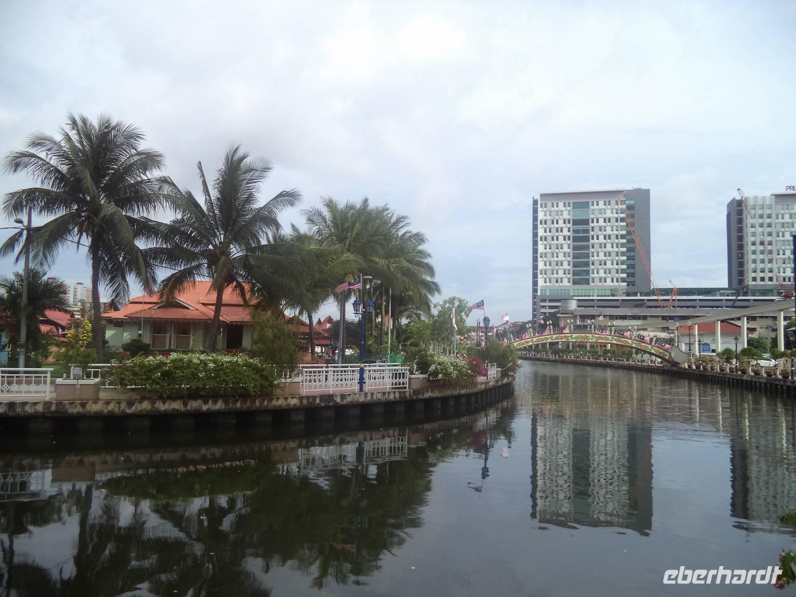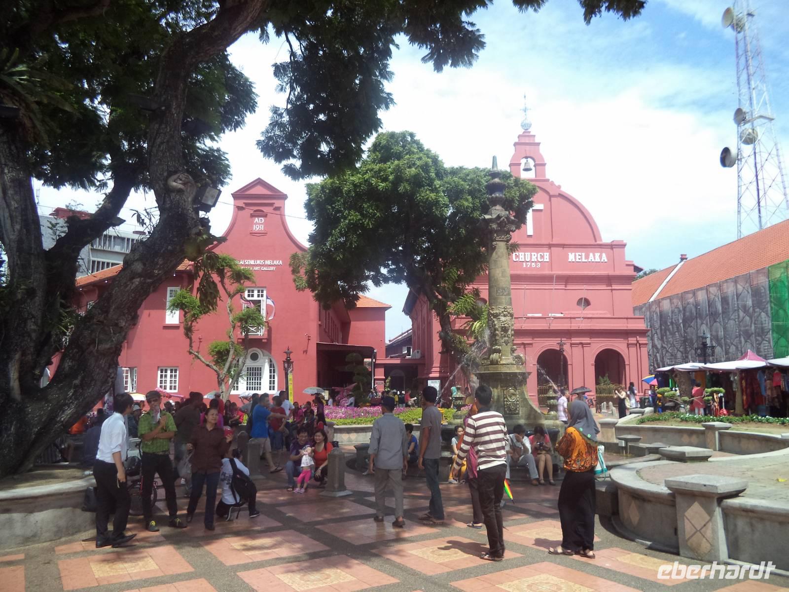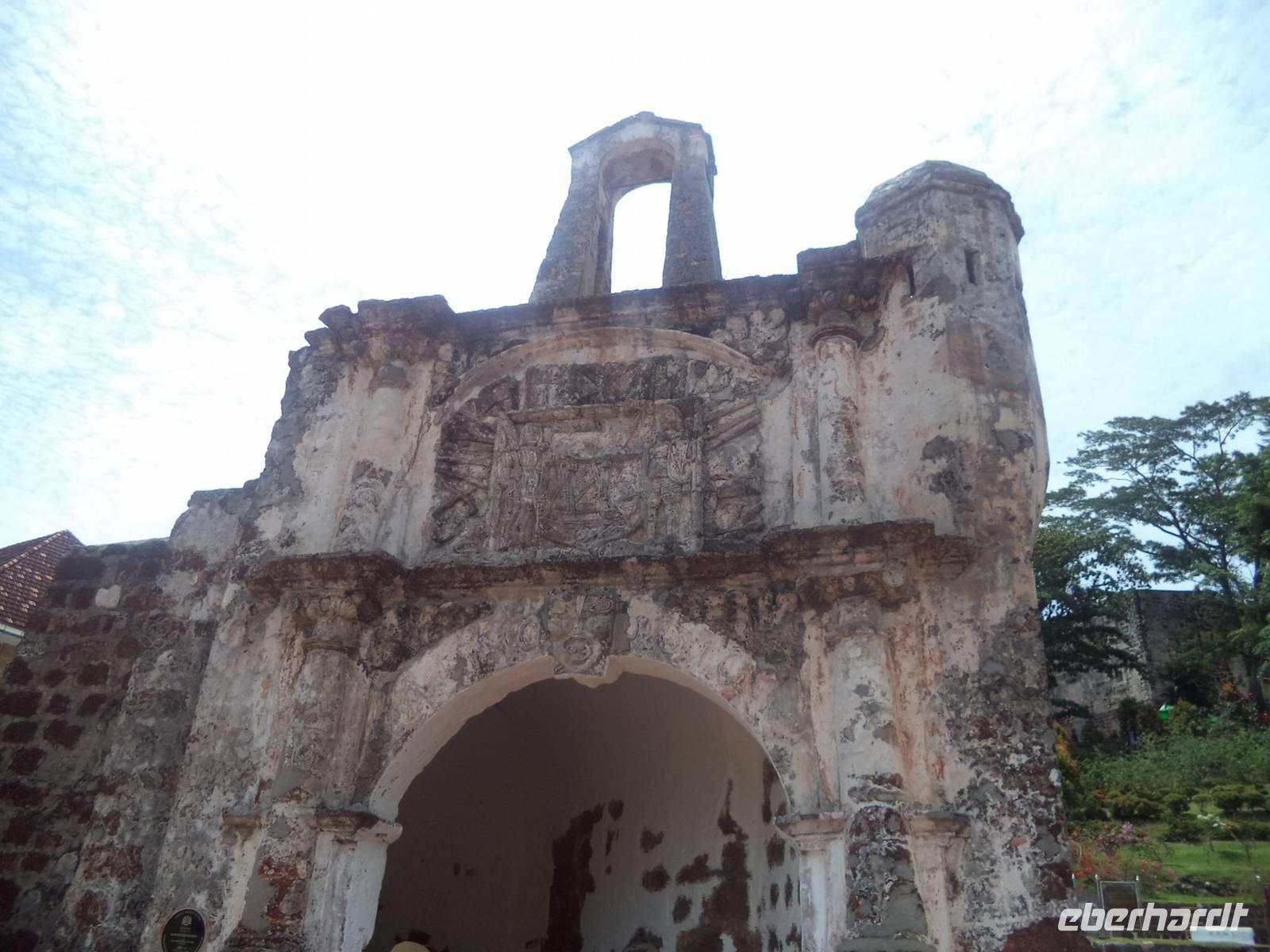 Relativ früh hieß es „Koffer laden" und wir fuhren mit dem Bus zur malaysischen Grenze, wo wir uns vom Busfahrer und Reiseführer Ishak verabschiedeten. Wie im Vorjahr unkompliziert und problemlose verlief der Grenzübergang. Dann passierte der Bus den „causeway", eine kilometerlange Brücke und verließ damit den Inselstaat Singapur, um zum malaysischen Festland zu gelangen. Auch hier alles unkompliziert - seit ein paar Wochen entfällt sogar das sonst obligatorische Ausfüllen der Einreisekarten. Direkt am Ausgang begrüßte uns unser malaysischen Reiseleiter Zulkarnain - kurz „Zul" genannt - überaus freundlich in seiner Heimat. Im kleinen Reisebus fuhren wir über die Festlands-Autobahn in Richtung Nordwesten, während Zul, der viele Jahre in Deutschland gelebt hatte, in hervorragendem Deutsch über seine asiatische Heimat und die Besonderheiten Malaysias plauderte. Nach interessanter Fahrt, nur unterbrochen durch einen kurzen Toilettenstopp an einer Autobahnraststätte, erreichten wir unser Tagesziel, die Stadt Malakka, erreichten. Heute zählt sie knapp 400.000 Einwohnern und ist nicht nur eine bedeutende Großstadt, sondern historisch gesehen eine der interessantesten Orte von Malaysia. Zwar besitzt ihr einst ungemein bekannter und wichtiger Hafen heute nur noch für die Küstenschifffahrt Bedeutung, aber die Altstadt steht unter UNESCO-Welterbeschutz und eine Besichtigung des historischen Zentrums ist ein Muss für jeden, der Malaysia kennenlernen will. In der Altstadt von Malakka ist nahezu überall koloniales Erbe spür- und sichtbar, aus mehreren Epochen. Wir begannen unsere Besichtigung an den Überresten des einst wehrhaften Santiago-Tores, erbaut von den Portugiesen und später holländisch genutzt, dessen strategische Bedeutung durch malerisch darum gruppierte alte Schiffskanonen dokumentiert wurde. Über den Berg mit der Ruine der St.Pauls.-Kirche, aus der einst die Holländer eine Festung gemacht hatten ging es zum alten Hauptplatz. Warum er der „Rote Platz" genannt wird erschließt sich sofort aus dem Anstrich der Gebäude, die mit Christuskirche, dem alten Rathaus und dem Glockenturm und der noch aktiven Peterskirche das koloniale Zentrum und die Mitte des UNESCO-Ortes bilden. Nach der kurzen Stadtführung genossen wir unsere Freizeit in der berühmten Jonker-Street, dem „touristischen Herz" von Malakka. Die historische Geschäftsstraße hat bis heute noch viel vom Flair der alten holländischen Kolonialstraße bewahrt.