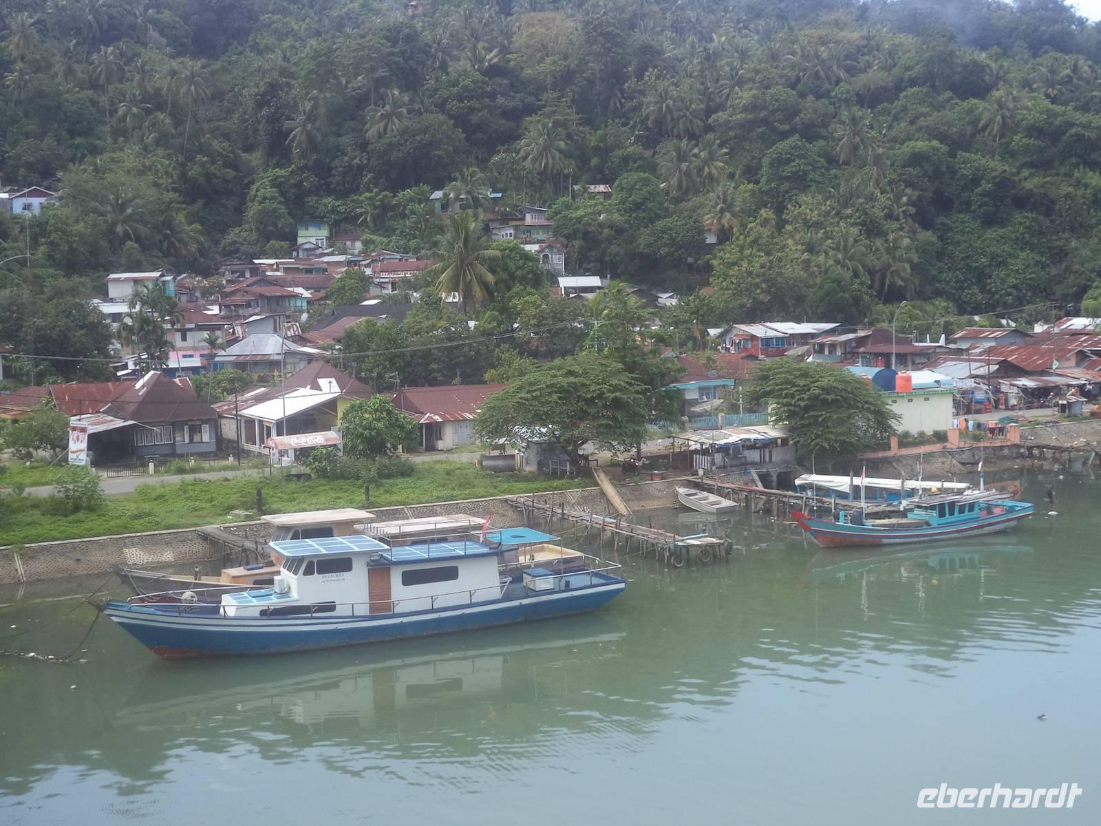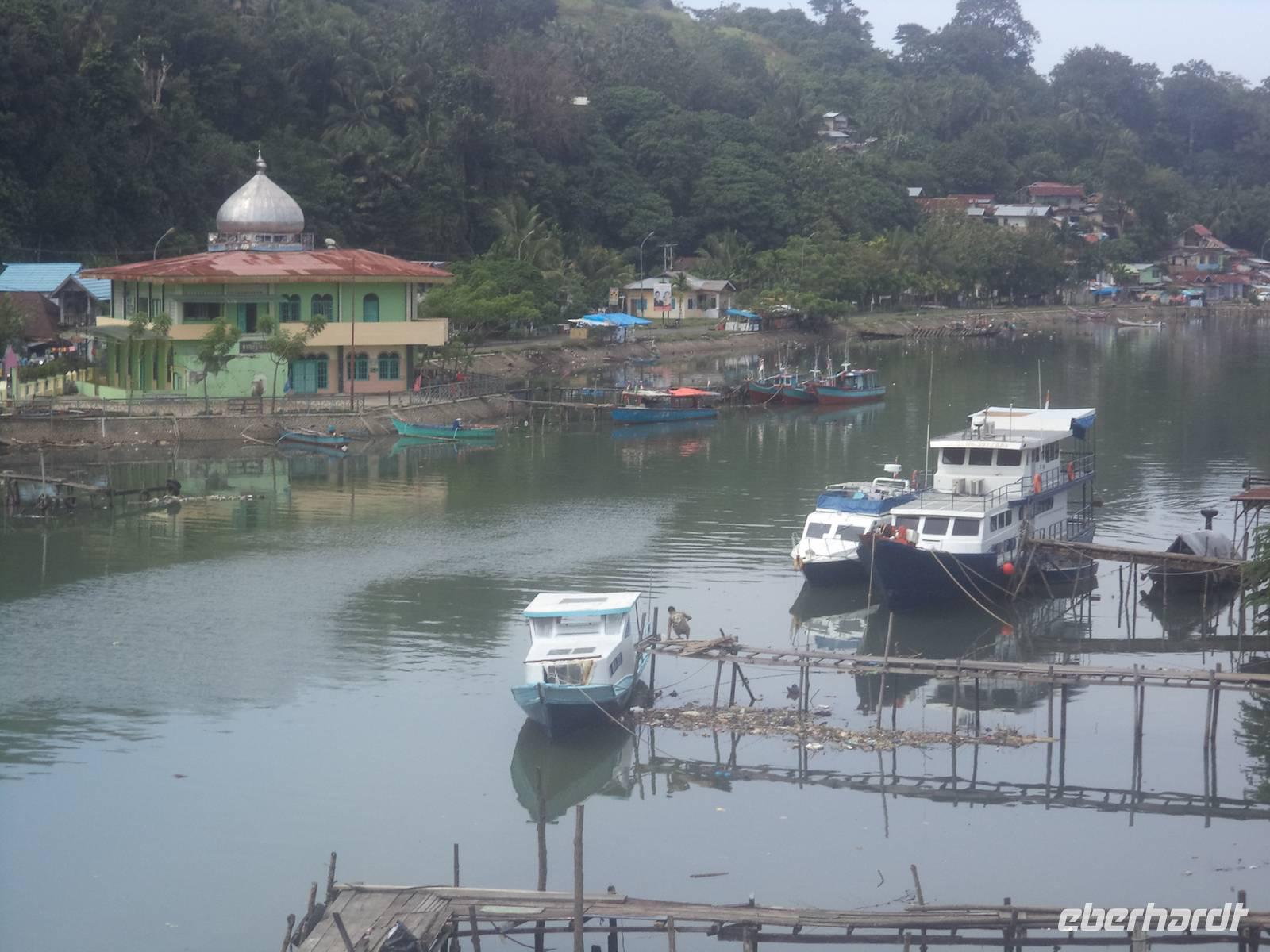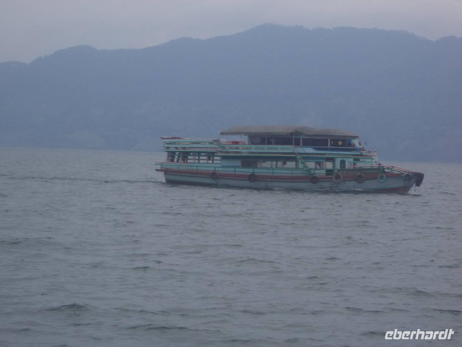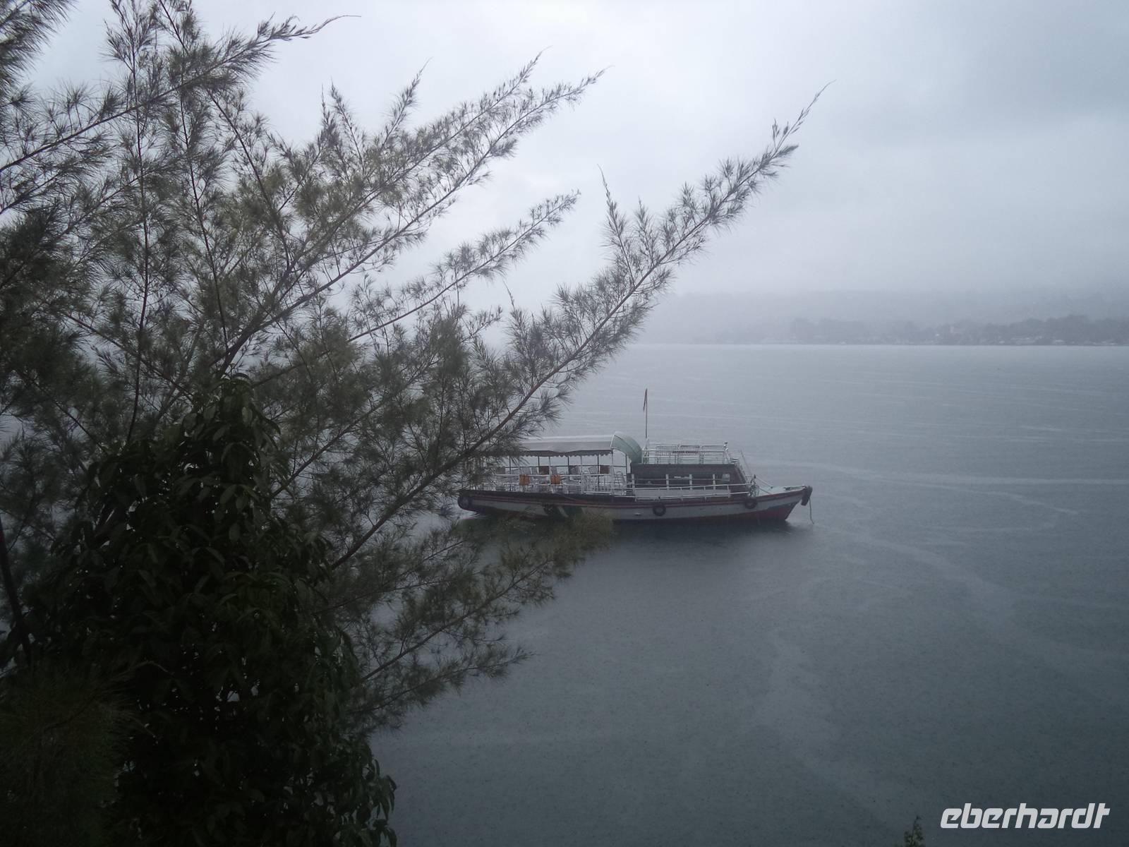 Ein Tag mit dem Boot - heute versprach das Programm, sehr entspannt zu werden. Unser Hotel lag ja auf der Ferieninsel Samosir, die mit 647 km² nur unwesentlich kleiner ist als die Baleareninsel Menorca. Sie ist die größte Insel der Welt, die in einem Kratersee liegt und dieser wiederum - der legendenumwobenen Tobasee - ist seinerseits der größte Vulkan-Kratersee weltweit. Seine Fläche von 1776 km² könnte mehr als dreimal die des Bodensees enthalten und als trichterförmiges, vulkanisch entstandenes Gewässer übertrifft er mit über 500 m Tiefe die meisten Binnenseen der Welt. Auf diesem See der Superlative wollten wir heute die interessantesten und traditionsreichsten Orte der Ferieninsel Samosir mit dem Boot besuchen.
