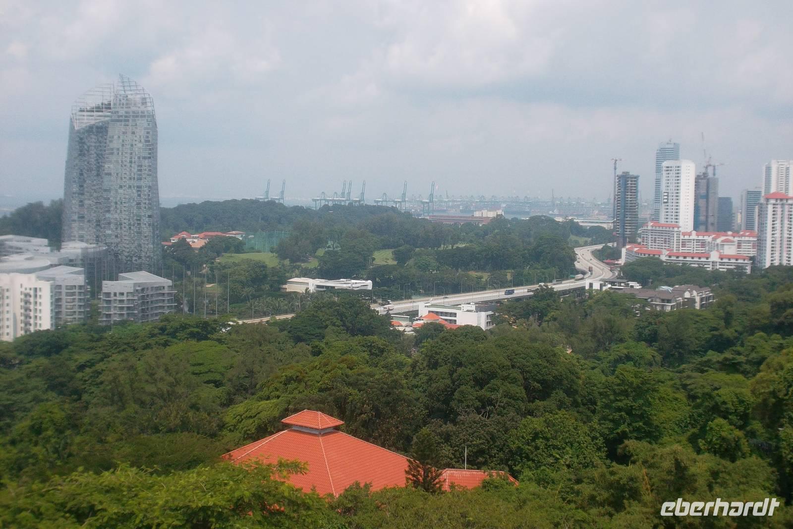 Auf unserer Rundfahrt neben den Glas- und Betonpalästen, hypermodernen Bauten die mitunter fast schwerelos scheinen, besuchten wir Chinatown. Nach kurzem Fotostopp am hier legenden Hindutempel tauchten wir ein in den „Schmelztiegel" Singapur, der die verschiedenen asiatischen Völker, durchmischt mit Chinesen und Europäern, in einem bunten Völkergemisch „durcheinanderwirbelt" Auf dem Straßenmarkt von Chinatown, den wir durchquerten, kann man das recht gut erkennen. In einem der größten chinesisch-buddhistischen Tempel des Stadtstaates legten wir einen Stopp ein, um die Tempelkultur bei einem kleinen Rundgang besser kennenzulernen. Dann fuhren wir zu einer der höchsten Erhebungen von Singapur. Der Mount Faber ist Anfangs- und Endpunkt einer Seilbahn, die hier vom Aussichtspunkt zur Vergnügungs-Insel Sentosa führt. Mit einigen unserer Gäste habe ich diese Seilbahnfahrt unternommen, die etwa eine halbe Stunde dauert und bei der man einen herrlichen Blick über den Hafen und den Süden von Singapur und die Insel Sentosa hat. Danach ging es zum vielleicht interessantesten Teil Singapurs und einem seiner unbestrittenen Höhepunkte: zum Besuch des Orchideengartens. Der wartet als größter seiner Art in Asien mit Orchideen unglaublicher Pracht und einer bezaubernden Blütenvielfalt auf. Neuzüchtungen haben hier ebenso ihren Platz wie „ganz gewöhnliche" Orchideen und Blumen der üppigen tropischen Vegetation.