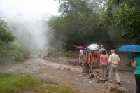 In der Stadt Tarutung, einem Verwaltungszentrum des Batak-Toba-Landes legten wir eine Mittagspause ein um dann weiter zu unserem Tagesziel Sipirok zu fahren - im Bewußtsein, dass wir aufgrund der Straßenverhältnisse langsamer vorankommen würden. Trotz der immer noch dunstigen Witterung legten wir einen Fotostopp am letzten Blick auf den Tobasee ein und hatten noch etwas später eine kleine „Wanderung" zu den heißen Schwefelquellen von Sipoholon. Teilweise von den Bewohnern kanalisierte, rauchende und nach Schwefel riechenden Rinnsale und weißgelbe Felskuppen finden sich hier an den Schwefelaufbrüchen vulkanischen Ursprunges, von den Einheimischen zum Abbau von Schwefelkalk und für Warmwasser-Pools genutzt.