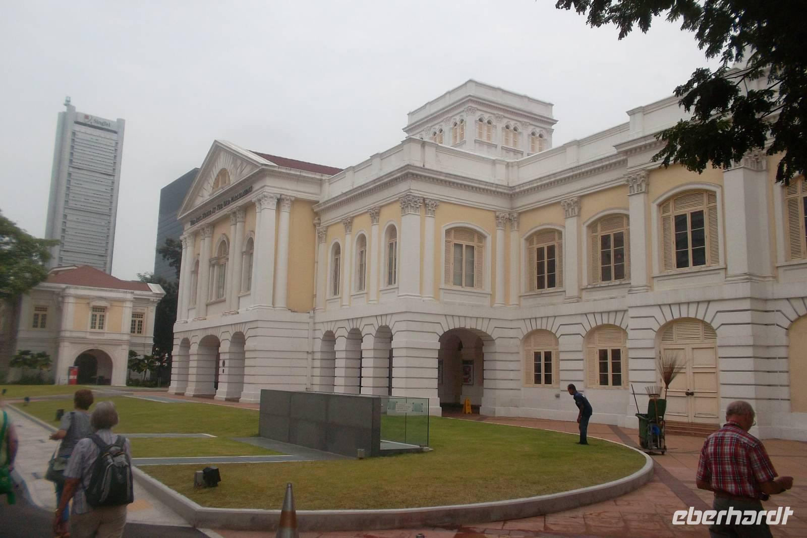 Mit Reiseleiter Ishak begannen wir heute nach dem Frühstück unsere Stadtrundfahrt durch das Zentrum von Singapur im alten kolonialen Stadtzentrum. Ein wenig verbaut und verdeckt waren einige Ausblicke von den Vorbereitungen eines Groß-Ereignisses, das am kommenden Wochenende stattfinden würde - dem Formel-1-Rennen durch die Stadt Singapur. Die Strecke zieht sich auch durch die rings um die Statue des Stadtgründers Sir Thomas Stamford Raffles gelegene koloniale Altstadt. Stolz und eindrucksvoll steht Sir Thomas Stamford Raffles neben dem Alten Postamt, umgeben von den ehemaligen Verwaltungsgebäuden. Als britische Kolonie und bedeutendes Handelszentrum war Singapur einst die wichtigste der „strait settlements", der Handelsniederlassungen an der bedeutendsten asiatischen Schiffsroute, der „Straße von Malakka". Bis heute zählt sie zu den meistbefahrenen Gewässern der Welt. Heute, nach gründlicher Renovierung in den letzten Jahren - nicht alles ist schon fertig - erstrahlen die historischen Bauten im weißgelb-getünchten Glanz. Nach kurzem Spaziergang am Fluss und den zwei historischen Brücken erreichten wir den „Merlion", das Wahrzeichen Singapurs, das ein Fabelwesen - halb Löwe, halb Fisch - darstellt. Dahinter verbirgt sich die Gründungslegende der Stadt.Heute hat das nicht allzu große historische Viertel eher Erholungs- und musealen Charakter - das eigentliche Leben im Stadtstaat Singapur findet man in den bewohnten und belebten neustädtischen Zentren, wie beispielsweise Chinatown. Hauptsächlich jedoch präsentiert sich Singapur als ultramoderne Geschäftsstadt mit bewegter Skyline, die gut mit der amerikanischer Großstädte zu vergleichen ist - ebenso wie mit der Tokios, Hongkongs oder Shanghais.