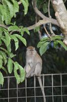 Früh verlassen wir die Insel und fahren mit der Fähre retour nach Parapat, wo unser Bus wartet. Ich kaufe erst einmal Obst und Nüsse, da wir unterwegs auf dieser Strecke keine Chance auf ein für Europäer zugeschnittenes Restaurant haben werden. Die Straße geht entlang des Tobasees hoch auf einen ca. 1.500 m hohen Pass mit traumhaften Ausblicken. Wir stoppen an einer in Vollblüte stehenden Kaffeeplantage, trinken am Pass heißen Ingwertee. In Simarjungung halten wir und haben den letzten Ausblick auf den Toba See und auch auf den Sipisopiso Wasserfall. Dann geht es über teils sehr schlechte Straßen nach Brastargi. Unterwegs sehen wir noch reichlich Vulkanasche vom Ausbruch des Sinapung vor wenigen Tagen. Rauchen tut er immer noch! Wir halten am Langhaus der Simalungun Könige, was heute ein Museum ist. Es ist erstaunlich, dass dort bis zur Unabhängigkeit Indonesiens der König residierte. Der nächste Halt ist in Dokan, wo wir die traditionellen Häuser der Karo Batak sehen. Sie unterscheiden sich klar von denen der Toba Batak. In Brastagi besuchen wir den Obst- und Gemüsemarkt. Auch hier sind die Aschereste und einige Beschädigungen durch den Vulkanausbruch in der Vorwoche noch überdeutlich. Als nächstes fahren wir zum wenig entfernten neu gebauten Swedagon Tempel, der von Chinesen aus Medan gesponsert wurde, und besichtigen diesen. Beim Verlassen des Tempels können wir einen Trupp Langschwanzmakaken lange am Parkplatz beobachten. Danach geht's direkt zum Hotel.