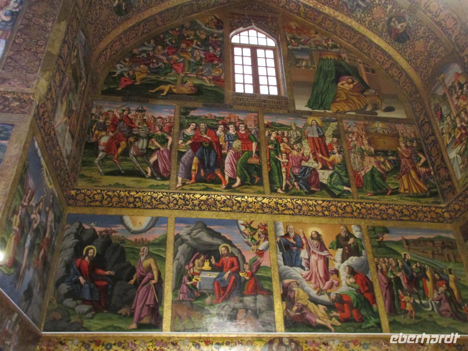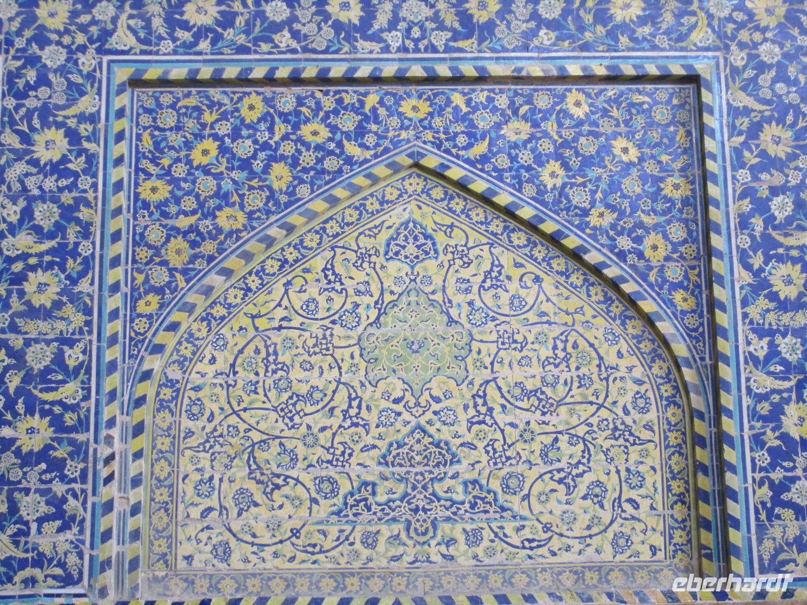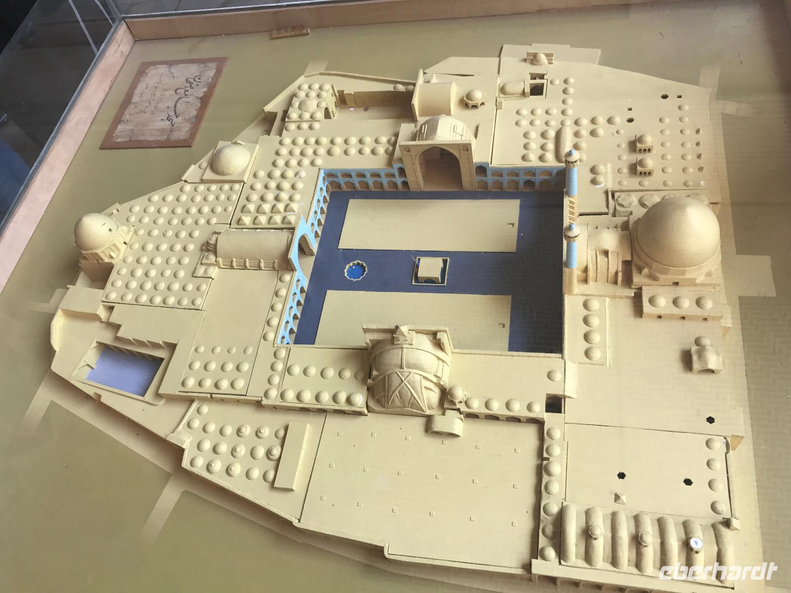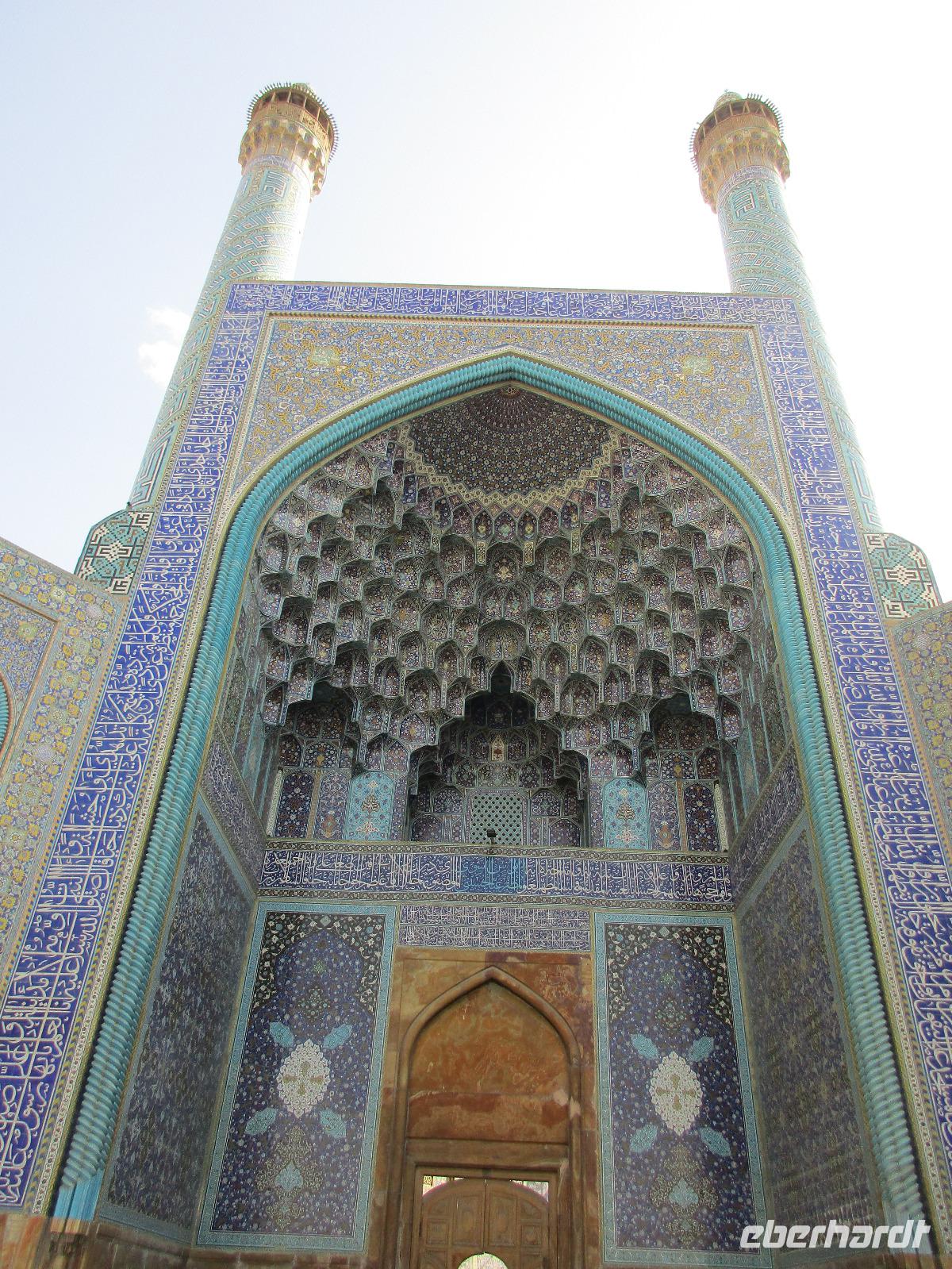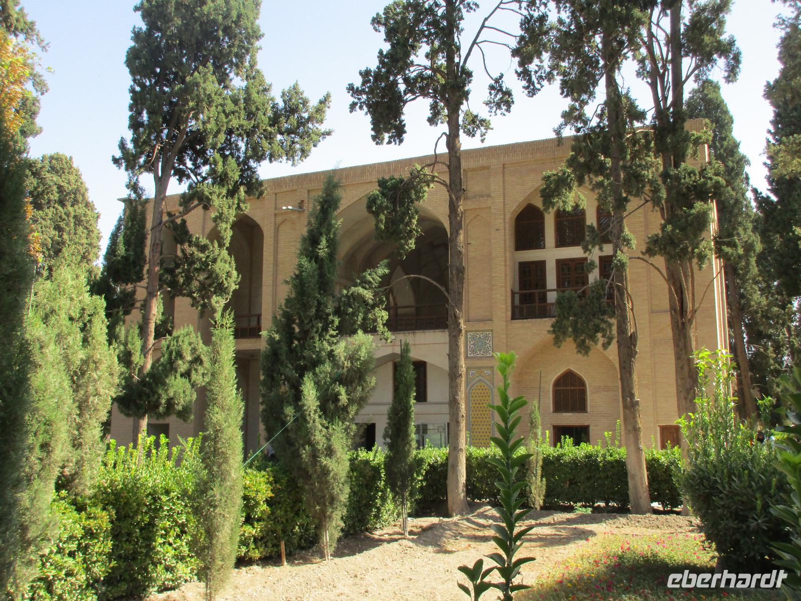 „Die Hälfte der Welt" stand heute auf unserem Programm - am Ende des Tages hätten wir glatt behauptet, sie wäre die ganze - so viel hatten wir an diesem Tag gesehen und an Informationen bekommen. Aber nun von Anfang an. Nach einem sehr leckeren Frühstück und einer kurzen Busfahrt starteten wir unsere Besichtigungen im Dscholfa-Viertel, dem Armenierviertel. Die 1663 vollendete Vank-Kirche beeindruckte uns mit Farbenreichtum und wunderbaren Gemälden zur Christianisierung Armeniens im Inneren. Im Museum neben der Kathedrale bestaunten wir zwar Schätze wie ein bemaltes Haar und die kleinste Bibel der Welt, aber wir erfuhren auch erschreckende Details zum Völkermord an den Armeniern durch das Osmanische Reich. Im Anschluss fuhren wir in die Nähe des Basars, durch den wir Zugang zur Jame-Moschee hatten. Diese wird gerade teilweise renoviert, aber dies tat der Erhabenheit, die diese Moschee ausstrahlt, keinen Abbruch. Mohammad erläuterte uns neben den Besonderheiten der 4 Eingangstore, auch Iwan genannt, die Geschichte dieses beeindruckenden Monuments. Danach besuchten wir den Palast der 40 Säulen, Chehel-Sotun-Palast, mit einem wunderbaren Garten, eine Oase. Dort verkosteten wir dann auch frisch gepressten Granatapfelsaft, frisch gepressten Möhrensaft und Faloudeh - eine typische persische Süßspeise, dazu traditionelles Eis. Frisch gestärkt begaben wir uns nun zu Fuß zum Imamplatz. Nach einer kurzen Vorführung der Miniaturmalerei erfolgte die erste Besichtigung in der aus dem 17. Jahrhundert stammenden Imam-Moschee. Das Hauptportal beeindruckt mit fast 27 Metern Höhe und wird noch überragt von den zwei 42 Meter hohen Minaretten. Im Osten des Imam-Platzes, nach dem chinesischen Tiananmen-Platz der größte Platz der Welt, findet man die Lotfullah-Moschee, auch als Frauenmoschee bekannt - hier hatten auch die Damen des königlichen Gefolges Zutritt. Gegenüber ist der Ali-Qapu-Palast, übersetzt „Hohe Pforte", von dessen Terrasse der König das Polo-Spiel auf dem Platz verfolgt haben soll. Polo konnten wir heute nicht beobachten, aber das Leben auf dem Platz und die wunderbare Aussicht haben die 40 Stufen Aufstieg gelohnt. Noch ein Stockwerk höher findet man einen Musikraum, der mit formschönen Aussparungen in den Wänden eine besondere Akustik ermöglicht und heute noch für musikalische Veranstaltungen genutzt wird. Da alle durch den ereignis- und informationsreichen Tag müde waren, gestaltete sich der Bummel über den Basar ganz kurz und wir gingen zum Hotel zurück. Am Abend fuhren wir noch einmal zum Imam-Platz, der am Ende des Tages noch einmal eine ganz andere Atmosphäre versprüht, und aßen in einem Restaurant im Basar zu Abend. Auf dem Rückweg wurden noch kleine Schätze als Andenken erstanden und wieder fielen alle mit wunderbaren Eindrücken ins Bett.