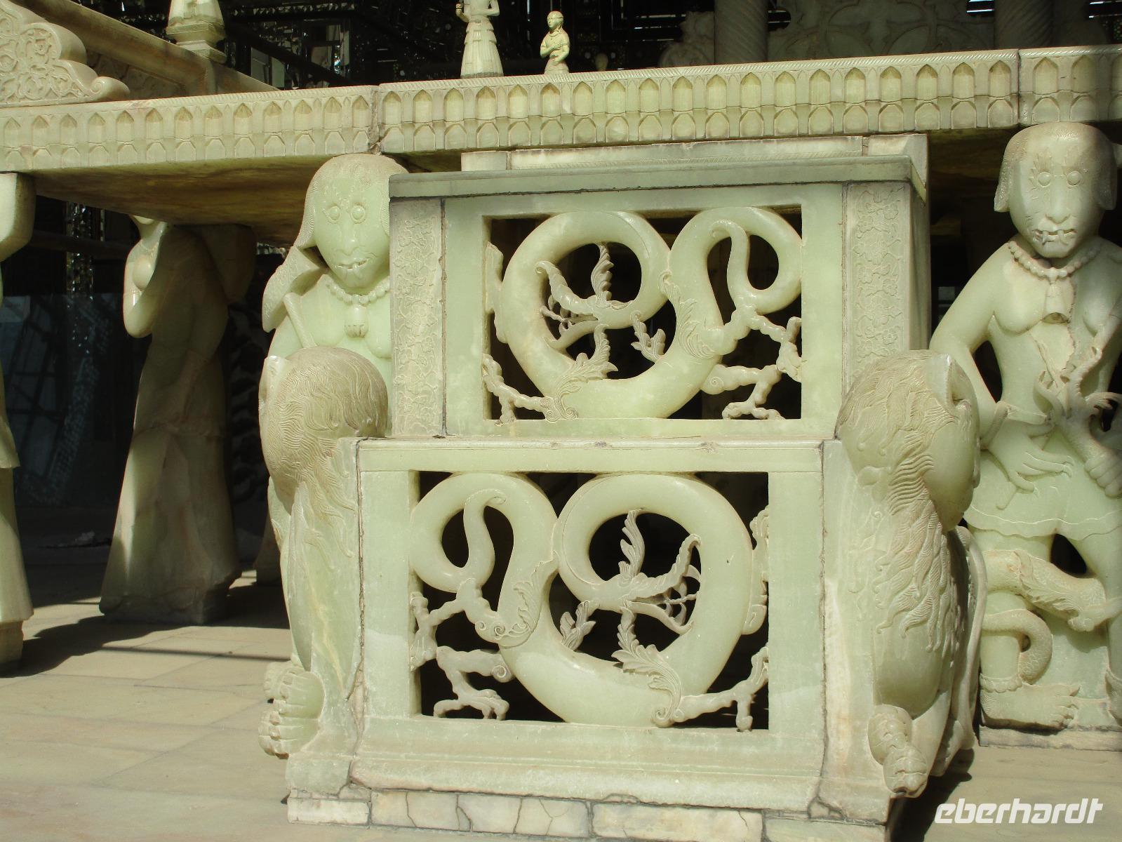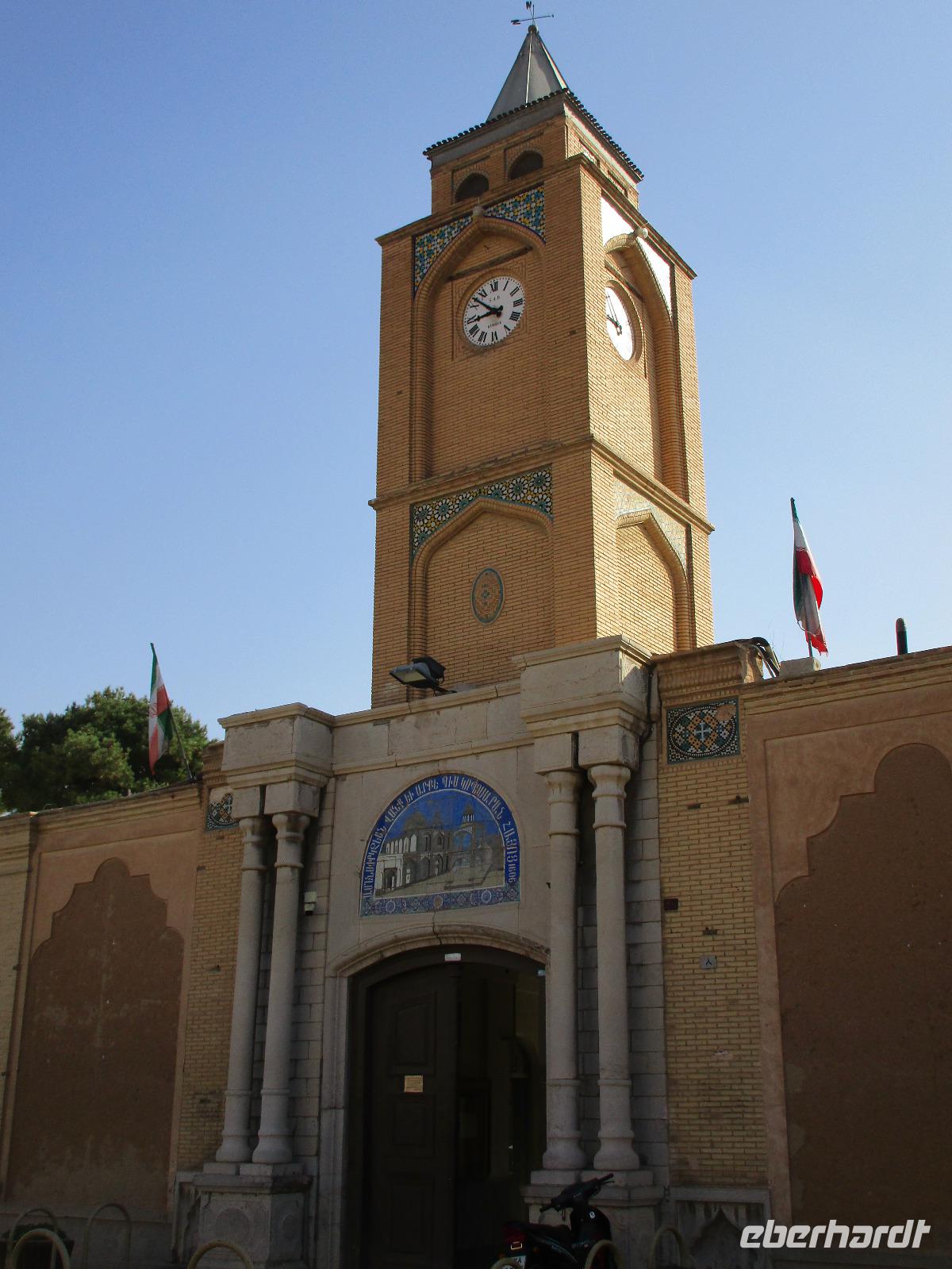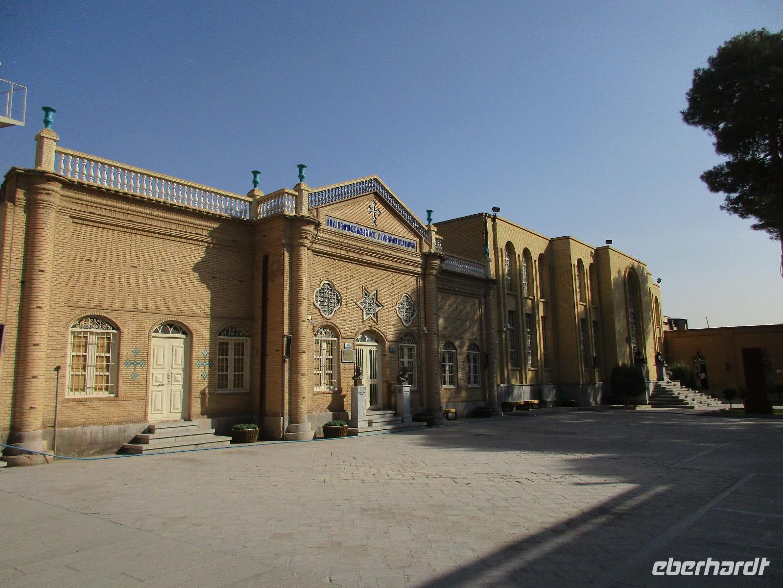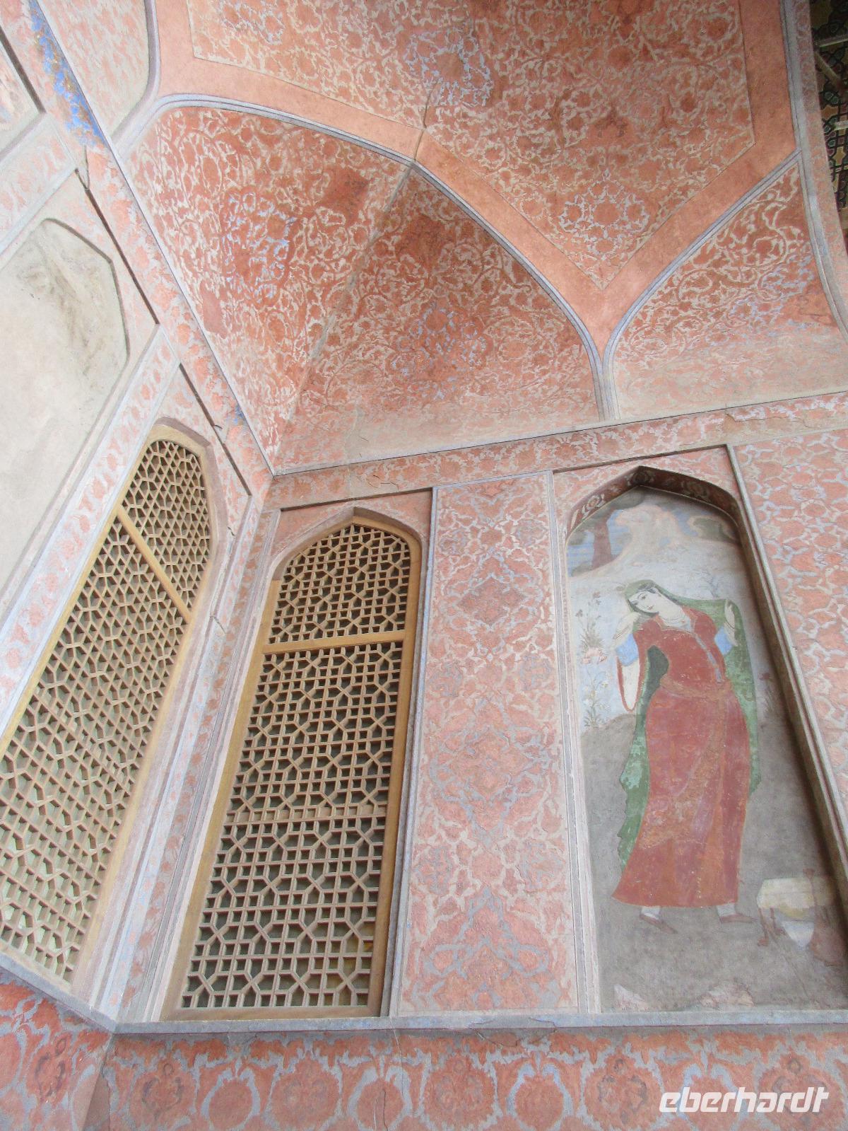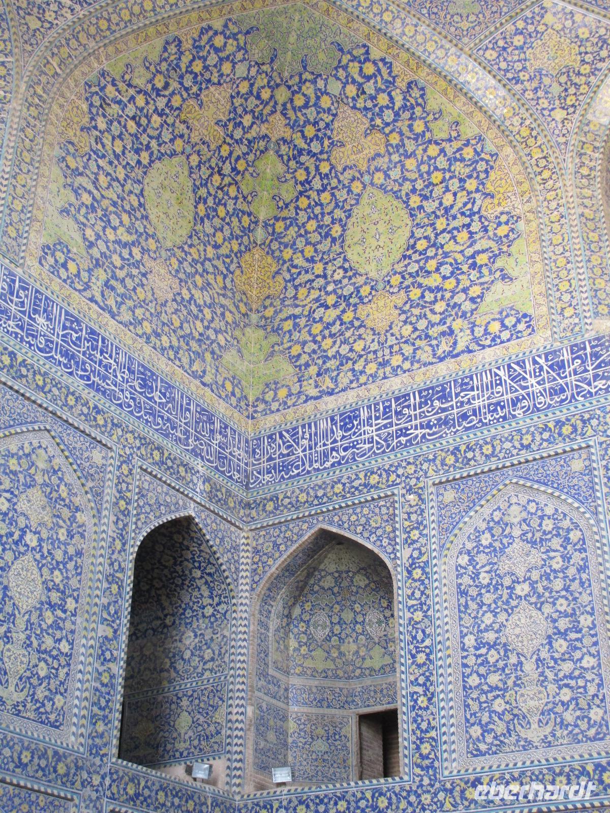 „Die Hälfte der Welt" stand heute auf unserem Programm - am Ende des Tages hätten wir glatt behauptet, sie wäre die ganze - so viel hatten wir an diesem Tag gesehen und an Informationen bekommen. Aber nun von Anfang an. Nach einem sehr leckeren Frühstück und einer kurzen Busfahrt starteten wir unsere Besichtigungen im Dscholfa-Viertel, dem Armenierviertel. Die 1663 vollendete Vank-Kirche beeindruckte uns mit Farbenreichtum und wunderbaren Gemälden zur Christianisierung Armeniens im Inneren. Im Museum neben der Kathedrale bestaunten wir zwar Schätze wie ein bemaltes Haar und die kleinste Bibel der Welt, aber wir erfuhren auch erschreckende Details zum Völkermord an den Armeniern durch das Osmanische Reich. Im Anschluss fuhren wir in die Nähe des Basars, durch den wir Zugang zur Jame-Moschee hatten. Diese wird gerade teilweise renoviert, aber dies tat der Erhabenheit, die diese Moschee ausstrahlt, keinen Abbruch. Mohammad erläuterte uns neben den Besonderheiten der 4 Eingangstore, auch Iwan genannt, die Geschichte dieses beeindruckenden Monuments. Danach besuchten wir den Palast der 40 Säulen, Chehel-Sotun-Palast, mit einem wunderbaren Garten, eine Oase. Dort verkosteten wir dann auch frisch gepressten Granatapfelsaft, frisch gepressten Möhrensaft und Faloudeh - eine typische persische Süßspeise, dazu traditionelles Eis. Frisch gestärkt begaben wir uns nun zu Fuß zum Imamplatz. Nach einer kurzen Vorführung der Miniaturmalerei erfolgte die erste Besichtigung in der aus dem 17. Jahrhundert stammenden Imam-Moschee. Das Hauptportal beeindruckt mit fast 27 Metern Höhe und wird noch überragt von den zwei 42 Meter hohen Minaretten. Im Osten des Imam-Platzes, nach dem chinesischen Tiananmen-Platz der größte Platz der Welt, findet man die Lotfullah-Moschee, auch als Frauenmoschee bekannt - hier hatten auch die Damen des königlichen Gefolges Zutritt. Gegenüber ist der Ali-Qapu-Palast, übersetzt „Hohe Pforte", von dessen Terrasse der König das Polo-Spiel auf dem Platz verfolgt haben soll. Polo konnten wir heute nicht beobachten, aber das Leben auf dem Platz und die wunderbare Aussicht haben die 40 Stufen Aufstieg gelohnt. Noch ein Stockwerk höher findet man einen Musikraum, der mit formschönen Aussparungen in den Wänden eine besondere Akustik ermöglicht und heute noch für musikalische Veranstaltungen genutzt wird. Da alle durch den ereignis- und informationsreichen Tag müde waren, gestaltete sich der Bummel über den Basar ganz kurz und wir gingen zum Hotel zurück. Am Abend fuhren wir noch einmal zum Imam-Platz, der am Ende des Tages noch einmal eine ganz andere Atmosphäre versprüht, und aßen in einem Restaurant im Basar zu Abend. Auf dem Rückweg wurden noch kleine Schätze als Andenken erstanden und wieder fielen alle mit wunderbaren Eindrücken ins Bett.
