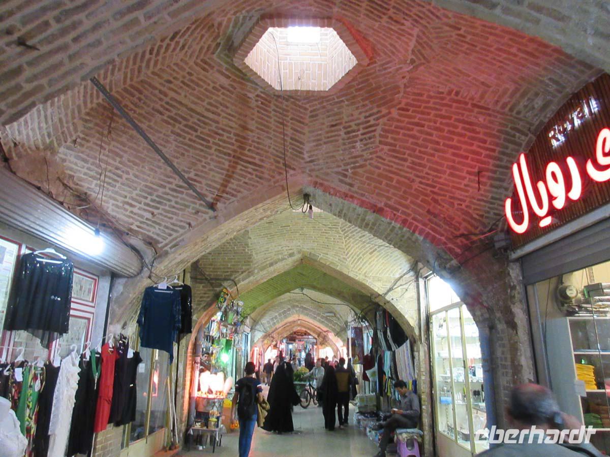 Letztes Etappenziel ist Zandschan. Am Stadtrand befindet sich unser nettes Hotel. Doch bevor wir dort hingelangen. schlendern wir über den Basar, der in Teilen noch aus dem 16. Jahrhundert stammt. Hier werden auch erste Einkäufe getätigt, denn David hat ganze Packen an Geldscheinen dabei, sodass jeder immer die Möglichkeit zum Geld wechseln hat. Der Einfachheit wegen kann man sagen, dass ca. 40 000 Rial einem Euro entsprechen. Man ist hier also sehr schnell Millionär.