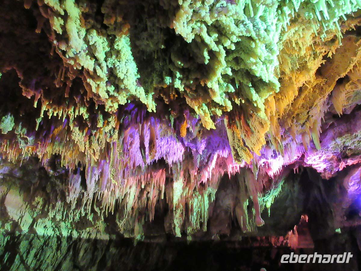 Einem Wunder der Natur gebührt unser nachmittäglicher Ausflug in die Ali Sadr Tropfsteinhöhle. Zu Fuß und mit Booten erkunden wir das mit Wasser gefüllte Höhlenlabyrint. Große Hallen wechseln sich mit engen Durchgängen ab. Mitunter sind bestimmte Gebilde farbig angestrahlt. Draußen ist es sehr warm, und so schmeckt eine gestern besorgte Melone doppelt köstlich.