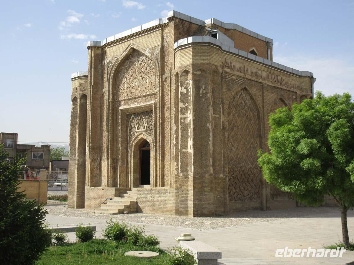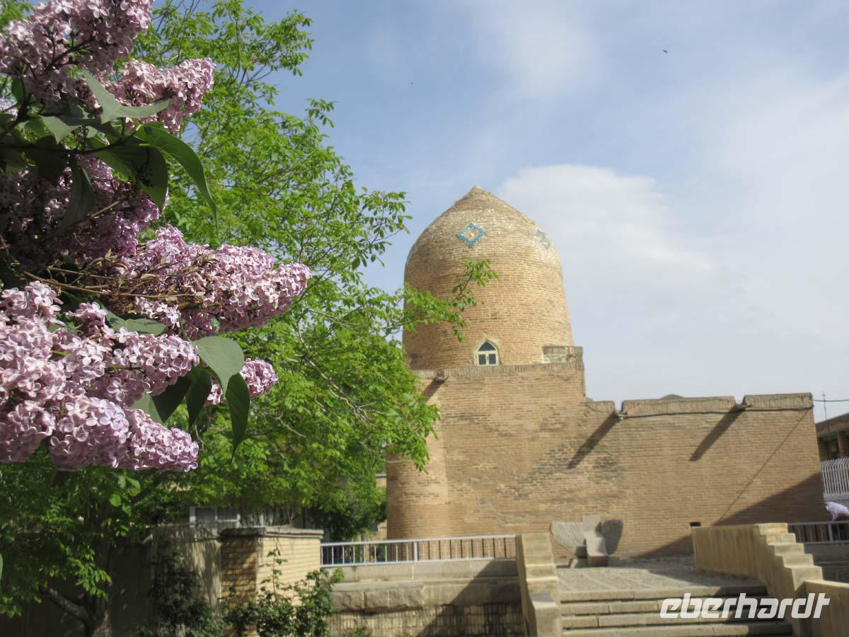 Gegen Abend erreichen wir Hamadan, wo wir zwei Nächte bleiben werden. Gegenüber unserem Hotel grüßt die Grablege von Baba Taher, dem ersten bedeutenden persischen Dichter. Dieser starb hier im Jahre 1019.