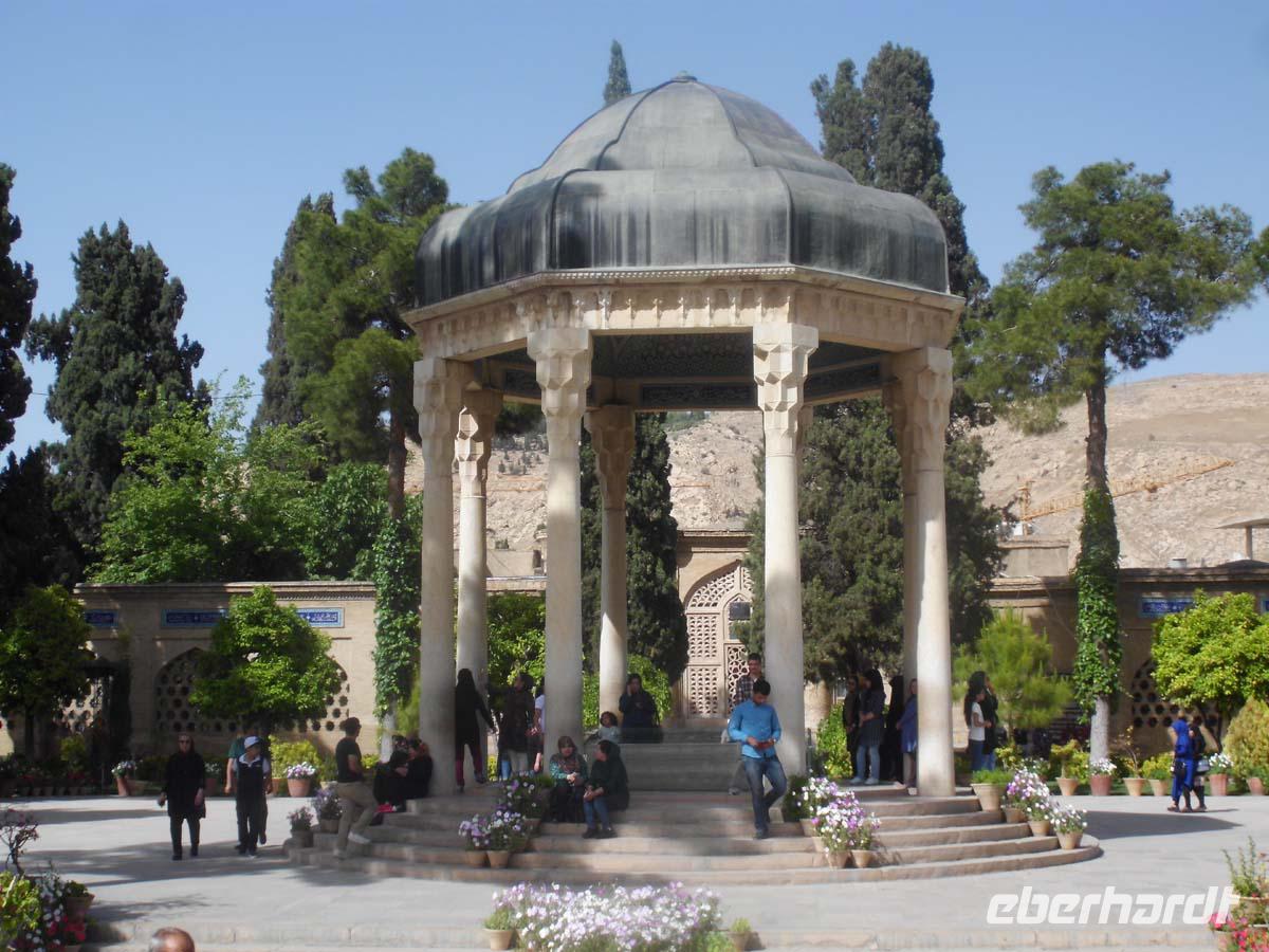 Shiraz wird die Stadt der Poeten genannt, denn ist Heimat und Grabplatz zweier berühmter Dichter aus dem 14. und 13. Jh.: Hafiz und Saadi. Beide Mausoleen besichtigen wir. Letzterer gefällt mir besonders mit Versen wie: „Es ist keine Kunst die Welt zu erobern, wenn Du kannst, erobere ein Herz." Auch eine gewisse Selbstironie ist ihm zu Eigen wenn er sagt: „Besser ein Irrtum der Dich beglückt, als eine Wahrheit, die Dich nieder drückt."