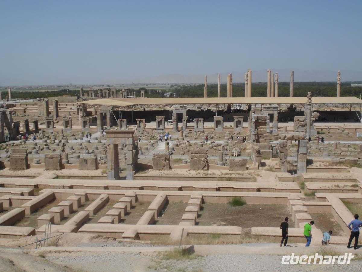 An diesem Tag erwartet uns ein Höhepunkt der Reise, die Besichtigung von Persepolis. Persepolis, die Repräsentationshauptstadt des achämenidisch- persischen Weltreichs. Sie wurde von Darius I. um 518 v.Chr. gegründet und existierte bis zu ihrer Zerstörung durch das griechische Heer Alexanders des Großen im Jahre 331 v.Chr. Persepolis diente vor allem auch der Ausrichtung der Neujahrsfeierlichkeiten, zu denen jedes Jahr Ende März, dem Jahresbeginn im persischen Sonnenkalender, Gesandtschaften aus allen Völkern des Reiches eintrafen und ihre Geschenke überreichten. Im Gelände befinden sich der Apadana-Audienzpalast, das Schatzhaus sowie die Paläste von Darius und Xerxes. Die Anlage steht auf einer riesigen Terasse.