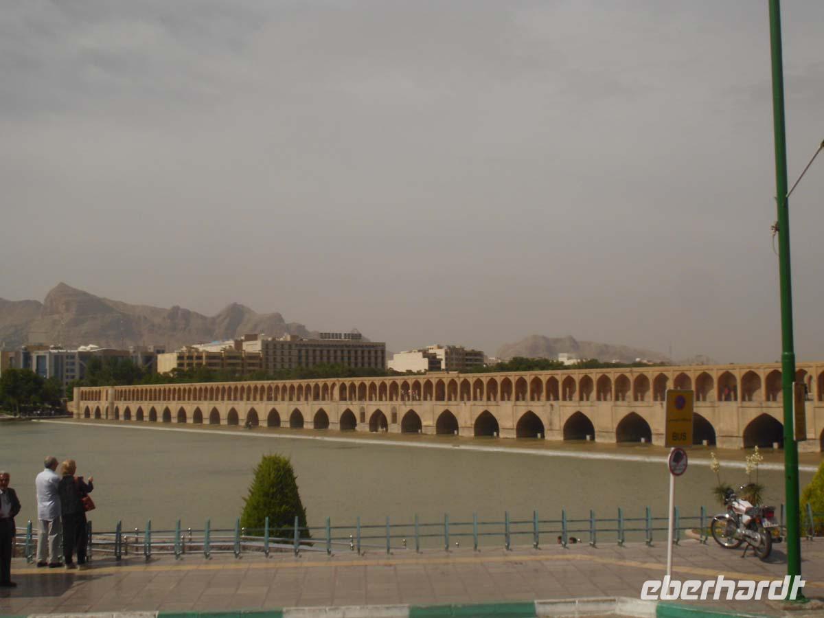 Isfahan ist auch berühmt für seine historischen Brücken. Neben der 33 Bogen Brücke zieht uns vor allem die Khaju Brücke an. Hier sind hunderte von Menschen, welche die Füße ins Wasser halten und die Kühle des Flusses Zayandehrud genießen, welcher nach dem Regen der letzten Nächte seit Wochen endlich wieder Wasser führt. Immer wieder wollen Menschen von uns wissen, woher wir kommen, oder bleiben einfach stehen um zu lauschen, welche Sprache wir sprechen. Sie winken und freuen sich wie wir alles bestaunen. Schnell lernt man jede Menge Leute kennen, die Verwandte oder Bekannte in München, Stuttgart oder anderswo in Deutschland haben. Eine Atmosphäre der Herzlichkeit umfängt uns; nicht nur in Isfahan.