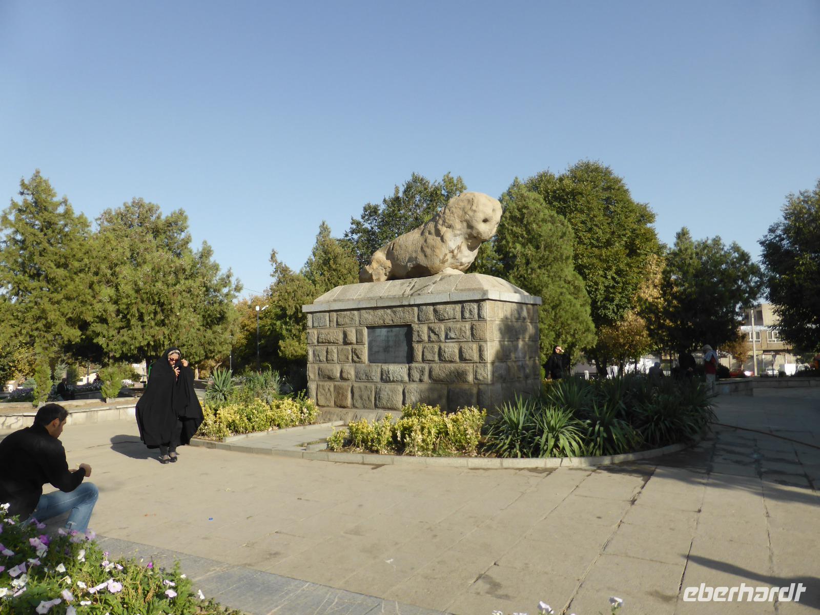 Danach hatten wir Freizeit für die Mittagspause und am Nachmittag besuchten wir das Mausoleum von Bu Ali. Er war der bekannteste persische Mediziner, Gelehrte und Philosoph des 11.Jahrhunderts und ist im Abendland unter dem Namen Avicenna bekannt. Wir kennen ihn durch den Roman „Der Medicus" von Noah Gordon und dessen Verfilmung. Unser nächster Fotostopp war am steinernen Löwen, einer stark verwitterten Skulptur, welche laut Legende auf Anweisung Alexander des Großen in Gedenken an seinen hier verstorbenen General Hephaistion in Auftrag gegeben wurde. Danach fuhren wir ins Gandj Nameh (Schatzbuch) -Tal, welches unweit von Hamadan, an einem Ausläufer des Alvand-Gebirges liegt. Der Grund für unseren Besuch waren die beiden in den Fels geschlagenen Inschriften aus der Zeit von Darius I. und Xerxes I.. Diese sind jeweils in drei Blöcke aufgeteilt, welche in altpersischer, neu-elamischer und neu-babylonischer Keilschrift den zoroastrischen Gott Ahura Mazda und die jeweiligen weltlichen Herrscher, Darius bzw. Xerxes, preisen. Anschließend fuhren wir auf den Abbasabat-Hügel, um Hamadan von „oben" zu betrachten. Den Abschluss des Tages bildete das Abendessen im Restaurant „Nal-e-Eshkene".