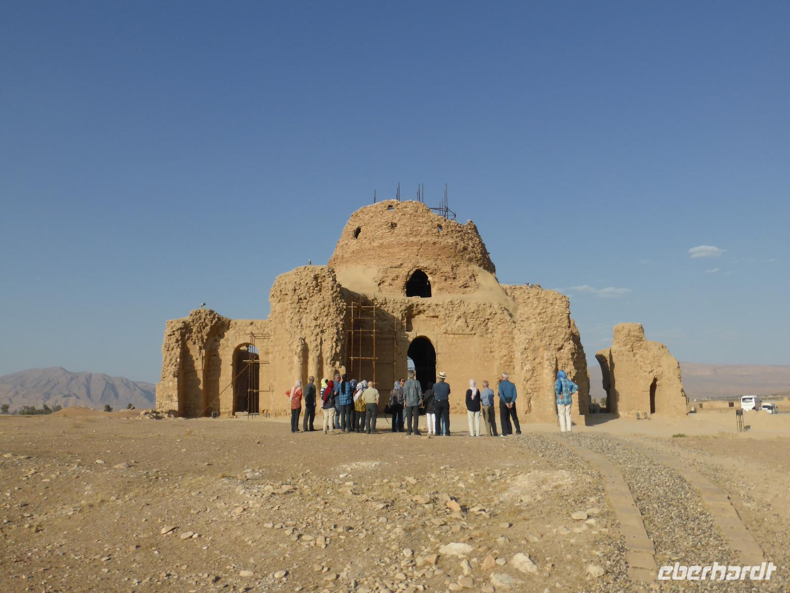 Am heutigen Tag stand eine lange Busetappe auf dem Programm. Unser Ziel war Shiraz. Von Kerman aus fuhren wir durch ein Pistazien-Anbaugebiet über Sirjan in Richtung Westen. Unterwegs legten wir eine gemütliche Kaffee- und Teepause sowie oberhalb des Daryacheh-ye-Bakhtegan-Salzsees einen Fotostopp ein. Es gibt im Zagrosgebirge eine Salzquelle, in der aus 1000 Metern Tiefe Wasser an die Erdoberfläche gedrückt wird und anschließend in die Salzseen fließt. Weiter ging es nach Sarvestan, zum Palast Bahram V. aus sassanidischer Zeit. Man nimmt an, dass die Anlage um 430 n.Chr. errichtet worden sein könnte und sie sowohl eine repräsentative als auch sakrale Funktion innehatte. Kurz vor der Stadt sahen wir einen weiteren Salzsee und an dessen Rand die aufgeschütteten Salzhalden. Gegen 18.00 Uhr kamen wir dann an unserem Hotel „Aryo Barzan" in Shiraz an. Da es mitten im Stadtzentrum liegt, nutzten viele nach dem Abendessen die Gelegenheit zu einem kleinen Spaziergang. Auch in Shiraz sahen wir noch vereinzelte Prozessionen, obwohl das Ashura-Trauerfest dem Ende zuging. Die Teilnehmer in schwarzen Hemden und Hosen führen dabei symbolische Selbstgeißelungen durch: Sie bestrafen sich jährlich aufs Neue, dass die Bewohner von Kufa Hussein, den Enkel des Propheten, im Jahr 680 in der Schlacht von Kerbela nicht unterstützt haben. Er unterlag der herrschenden Kalifenlinie der Umayyaden. Für die Prozessionsteilnehmer endete der Abend damit, dass Kerzen angezündet wurden und man in Stille trauerte.