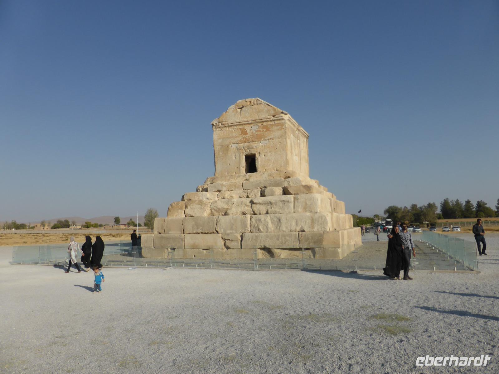 Den Abschluss des Besichtigungsprogramms bildete Pasargadae. An diesem historisch bedeutenden Ort wurden im Jahre 550 v.Chr. die Meder von den Persern besiegt. Nach seinem Sieg begründete Kyros II. hier die erste achämenidisch-persische Königsresidenz, von deren ehemaligen Palastanlagen leider nicht mehr viel erhalten ist. Im Jahre 539 v.Chr. hatte Kyros II. Babylon kampflos eingenommen. Nach der Zwangsumsiedlung der Juden durch Nebukadnezar II. nach Babylon, am Anfang des 6.Jh. v.Chr., entließ Kyros II. nach der Einnahme der Stadt die Juden aus der Gefangenschaft und finanzierte den Wiederaufbau des zerstörten Tempels König Salomons in Jerusalem. Das Grabmal von Kyros II. fand bereits Alexander der Große, ein Verehrer von Kyros II., Ende des 4.Jh. v.Chr. aufgebrochen und ausgeraubt vor. Das schlichte Grab des „Königs aller Länder" steht auf einem sechsstufigen pyramidenförmigen Unterbau und wird von einem Mitarbeiter der Denkmalschutzbehörde bewacht. Von Pasargadae aus hatten wir noch eine etwa 4,5 stündige Autobahnfahrt bis Isfahan vor uns, wo wir am späten Abend im Hotel „Aseman" eincheckten.