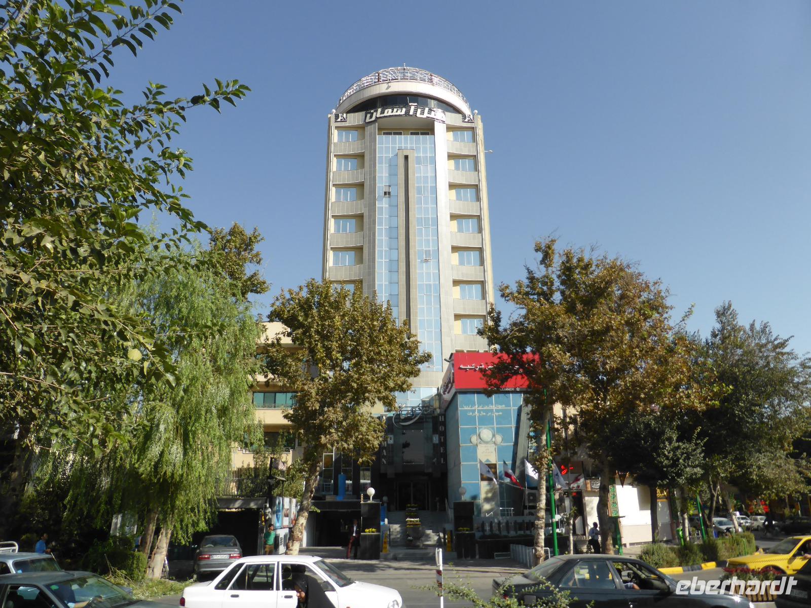 Nach unserer Ankunft am Leipziger Flughafen und dem gemeinsamen Essen in „Cliccadou- Bar" folgte der Flug nach Istanbul. Weitere Teilnehmer unserer Reisegruppe flogen von Berlin und von Zürich dorthin. Gegen 23:40 Uhr startete unser Flug mit Türkisch Airlines nach Teheran. Die Verpflegung an Bord war gut und die Rücklehnen der Vordersitze waren mit Bildschirmen ausgestattet. Da für den Iran ein Visum erforderlich ist, mussten wir nicht extra ein Einreiseformular ausfüllen. Kurz vor der Landung erfolgte eine Durchsage, dass alle Frauen das Kopftuch anlegen müssen und dass auf dem Flughafen Ayatollah Khomeini ein Fotografier-Verbot besteht. In Teheran angekommen, folgte die übliche Pass- und Visakontrolle. Unser örtlicher Reiseleiter David erwartete uns in der Empfangshalle. Willkommen im Iran! Anschließend fuhren wir mit dem Bus zur Übernachtung ins Hotel „Laleh".