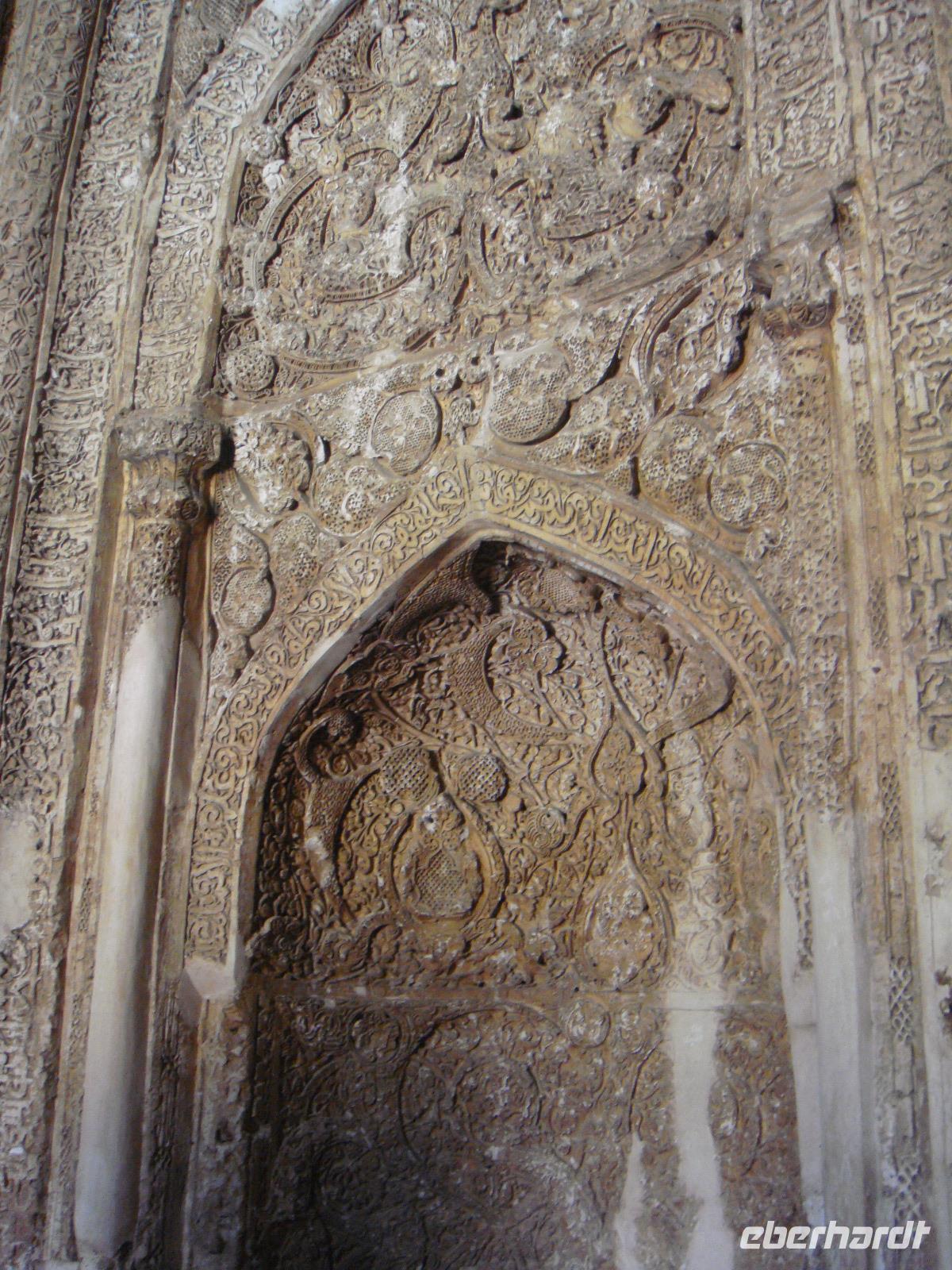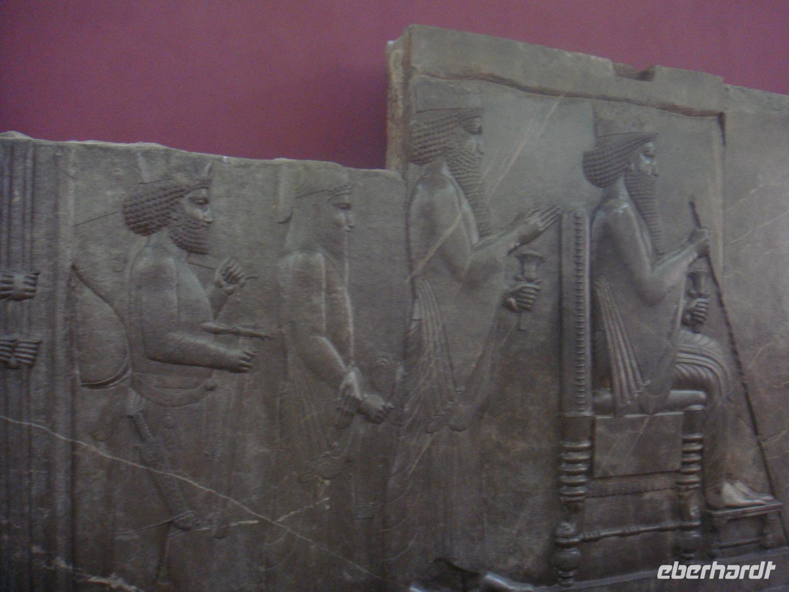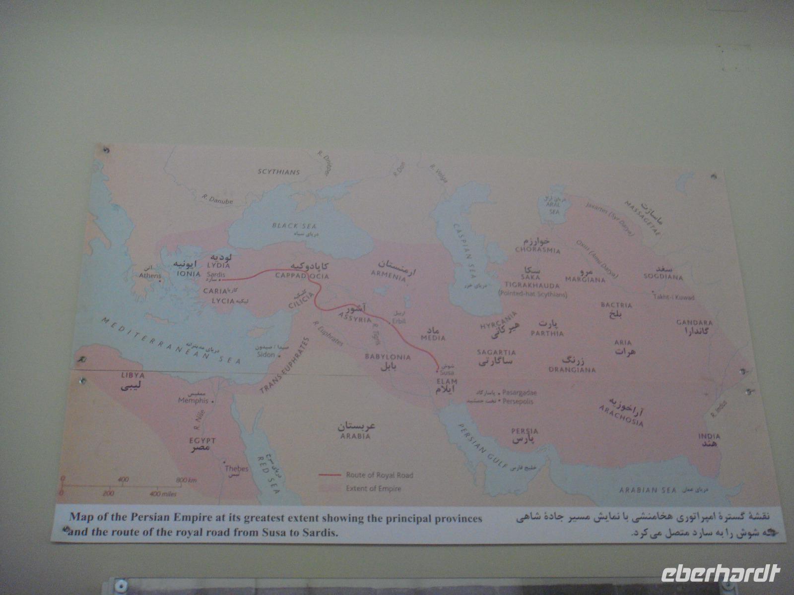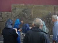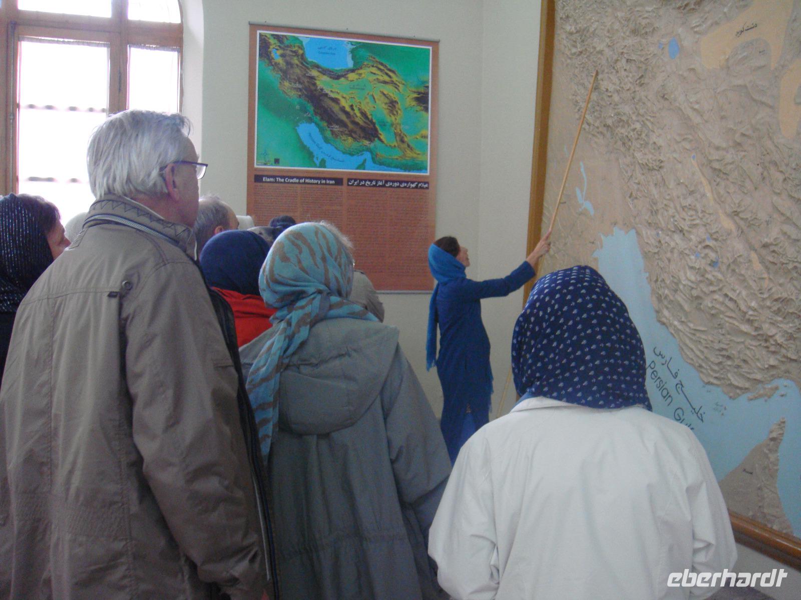 Als erstes besuchen wir in Hamadan den Hegmataneh-Hügel, auf dem sich Hagmatana, die Hauptstadt der Meder befand (ca. 715-550 v.Chr.). Die freigelegten Gassen und Hausmauern auf dem Hügel stammen aus der späteren seleukidischen und parthischen Zeit. Nach dem Rundgang über das Ausgrabungsgelände erhalten wir im dazugehörigen, sehr informativen Museum wunderbare Einblicke. Den Abschluss bildet die ebenfalls auf dem Gelände stehende, ca. 160 Jahre alte, armenische Kirche. Vom Hegmataneh- Hügel gehen wir zum Mausoleum von Esther und Mordachai. Esther war die Frau von König Xerxes und rettete die jüdische Bevölkerung Susas durch Fürbitte bei ihrem Gemahl vor den Progromen. Die Rettung soll der Anlass für das jüdische Purimfest sein. Anschließend besuchten wir den Gonbad-e Alavian Grabbau, eine Anlage aus der späten seldschukischen bis ilkhanidischen Zeit. Bekannt ist er auch unter dem Namen Seldschuken-Grab. Weiter geht es zum Mausoleum von Bu Ali. Er war der bekannteste persische Mediziner, Gelehrte und Philosoph des 11.Jahrhunderts und ist im Abendland unter dem Namen Avicenna bekannt. Uns ist er durch den Roman „Der Medicus" von Noah Gordon und dessen Verfilmung bekannt. Auf dem Rückweg zum Bus kaufe ich Pistiazien und Mandeln welche wir bei unserer Tee- Pause am steinernen Löwen, verköstigen. Es ist eine stark verwitterte Skulptur, welche laut Legende auf Anweisung Alexander des Großen in Gedenken an seinen hier verstorbenen General Hephaistion in Auftrag gegeben wurde. Danach fuhren wir ins Gandj Nameh (Schatzbuch) -Tal, welches unweit von Hamadan, an einem Ausläufer des Alvand-Gebirges liegt. Der Grund für unseren Besuch waren die beiden in den Fels geschlagenen Inschriften aus der Zeit von Darius I. und Xerxes I.. Diese sind jeweils in drei Blöcke aufgeteilt, welche in altpersischer, neu-elamischer und neu-babylonischer Keilschrift den zoroastrischen Gott Ahura Mazda und die jeweiligen weltlichen Herrscher, Darius bzw. Xerxes, preisen. Voller Eindrücke fahren wir zum Hotel und den heutigen Abend verbringen wir bei einer Iranischen Familie. Die junge Studentin hat uns als Dankeschön zu sich in Ihr Haus zum Abendessen eingeladen. Hier zeigt sich die unglaubliche Freundlichkeit der Iraner. Wir würden fürstlich bekocht und kamen ins Gespräch. Die Frau des Hauses hatte leckere Speisen bereitet. Wir tauschen Adressen aus und bekommen zum Abschied ein Gruppenbild und eine kleine Schale geschenkt. Völlig überwältigt von dieser Herzlichkeit fahren wir zurück in unser Hotel
