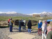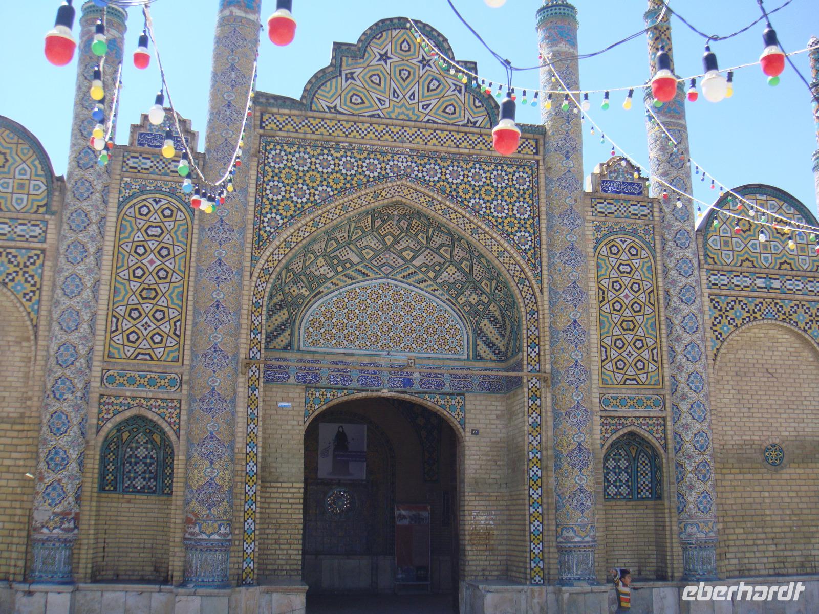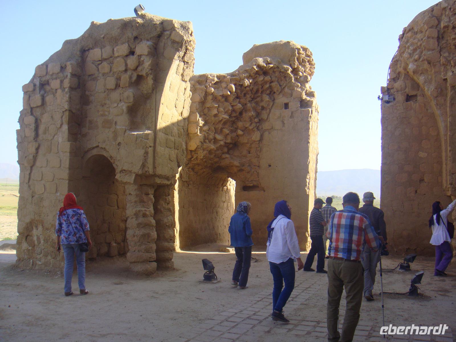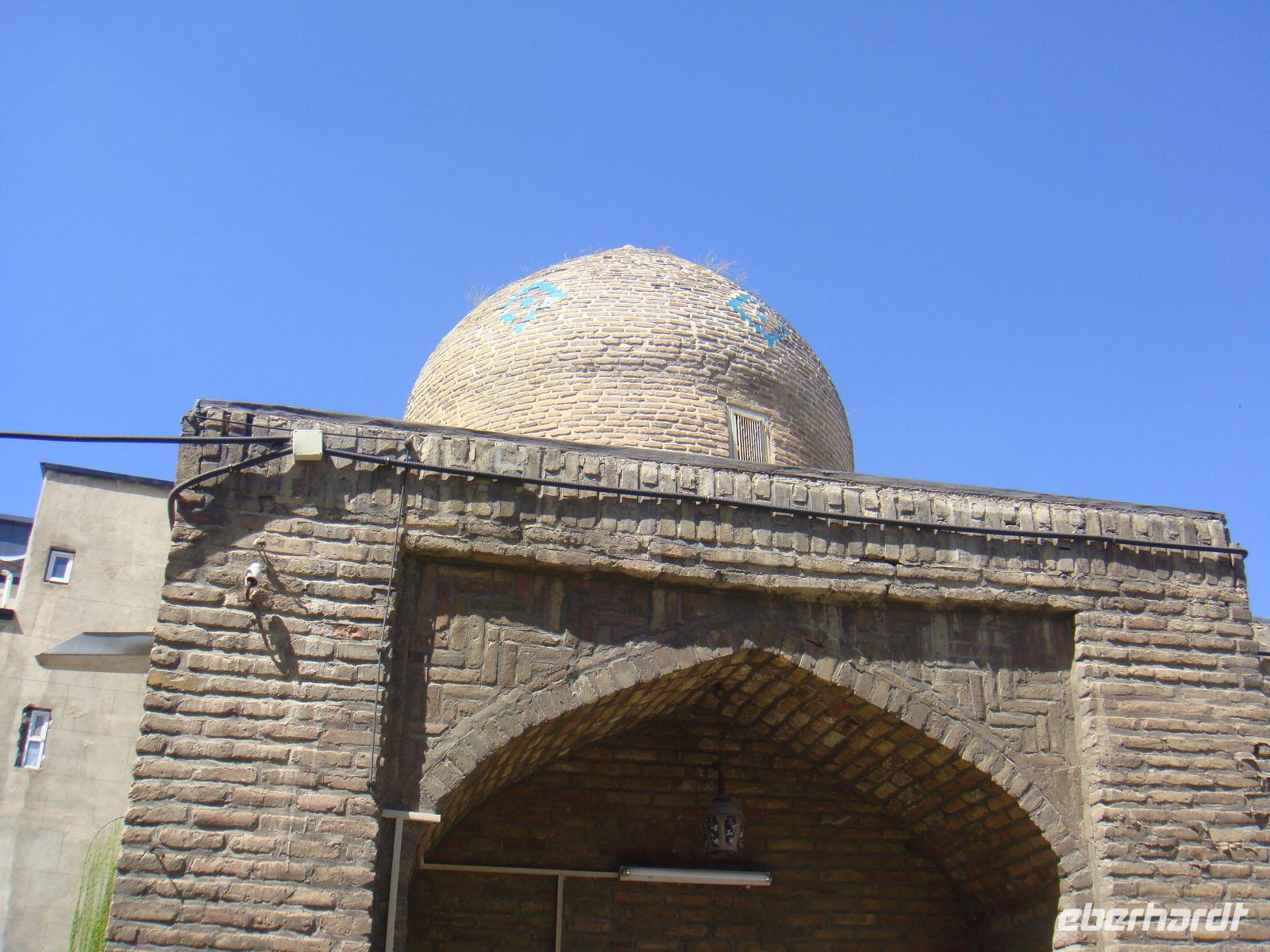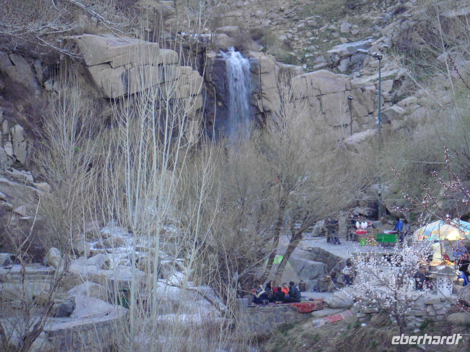 Wir stärken uns bei einem reichhaltigen Frühstück und nehmen Kurs auf Qazwin. Die Fahrt führt uns zunächst zum Azadi-Monument, einem Bauwerk, welches 1971 anlässlich der 2500-Jahrfeier Persiens vom letzten Shah eingeweiht wurde. „Azadi" bedeutet „Freiheit". Vom Monument aus fuhren wir in westlicher Richtung nach Qazwin. Die Stadt war im 16.Jh. Hauptstadt des safawidischen Reiches. Ein kurzer Fotostopp am qadjarischen Stadttor, durch welches einst die Karawanen zogen, besichtigten wir das Mausoleum Hosseins. Er war ein Sohn des 8. Imam Reza und verstarb in Qazwin auf der Durchreise nach Khorasan. Wieder sind wir beeindruckt durch Spiegelmosaike, welche tausendfach das Licht brechen, so dass es überall funkelt und glitzert. Im Inneren steht der Holz-Sarg von Hossein, der von einem silbernen Gitter umgeben ist, an dem die Pilger ihre Wünsche äußern können. Das Mausoleum wird wieder verlassen, indem man aus Respekt vor dem Beigesetzten rückwärts zur Tür heraus geht. An einem Rastplatz nehmen wir eine junge Studentin auf, die ebenfalls nach Hamadan möchte. Natürlich stimmen wir zu und nehmen sie mit. Am Nachmittag nehmen wir unser Picknick ein und lassen es uns bei Käse, Tomate, Gurke, frischen Brot und Melone schmecken. Weiter geht es nach Hamadan. Gegen 16:00 Uhr erreichen wir unser Hotel Baba Taher Hotel. Wir genießen die freie Zeit bis zum Abendessen. Um 18:00 Uhr starten wir zum berühmten Wasserfall „Gandschname". Dieser befindet sich 12 km südwestlich des Zentrums von Hamadan, 5 km vom Stadtrand entfernt, im oberen Bereich eines beliebten Naherholungsgebiets von Hamadan. Wir bemerken deutlich die kühlen Temperaturen in fast 1700 Metern Höhe. Wir kuscheln uns in unsere Jacken und erkunden den Wasserfall. Gleich in der Nähe des Wasserfalls kehren wir zum Abendessen ein. Wir probiren Kebab und eingelegten Knoblauch. Dazu Reiß mit einer Safranhaube und iranisches Bier. Zufrieden kommen wir wenig später wieder in unserem Hotel an.