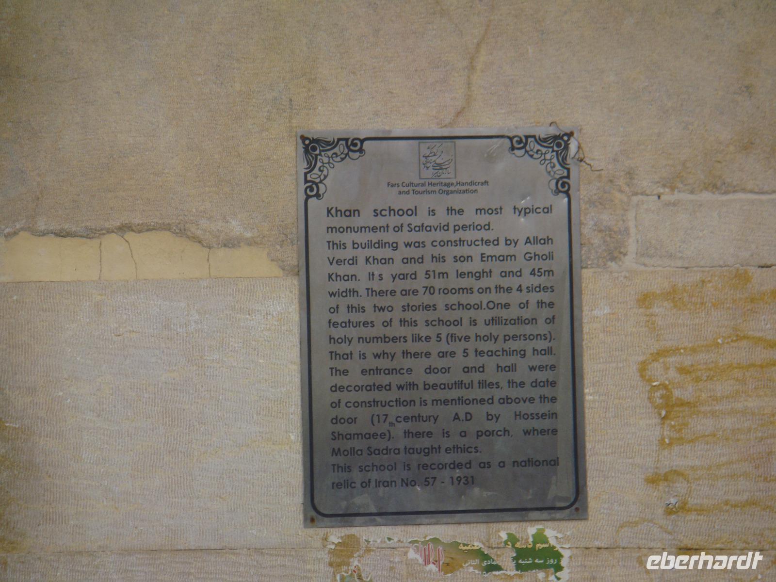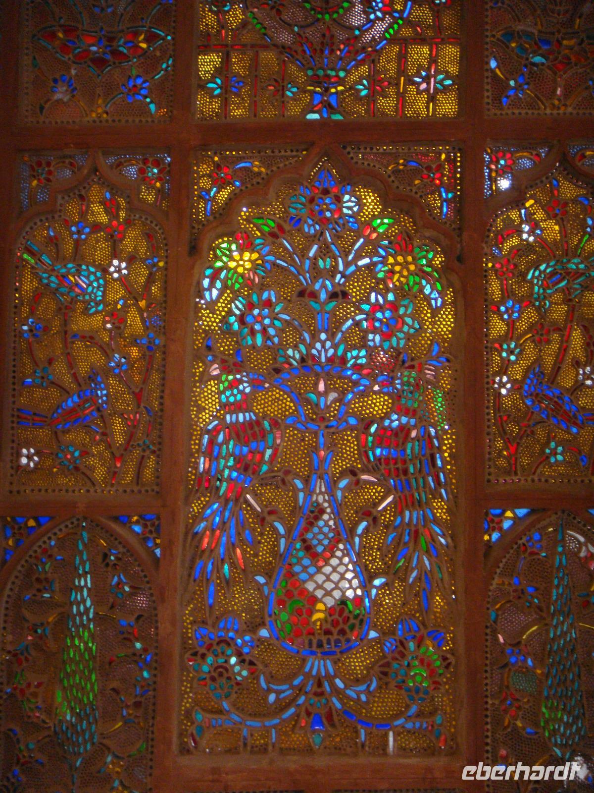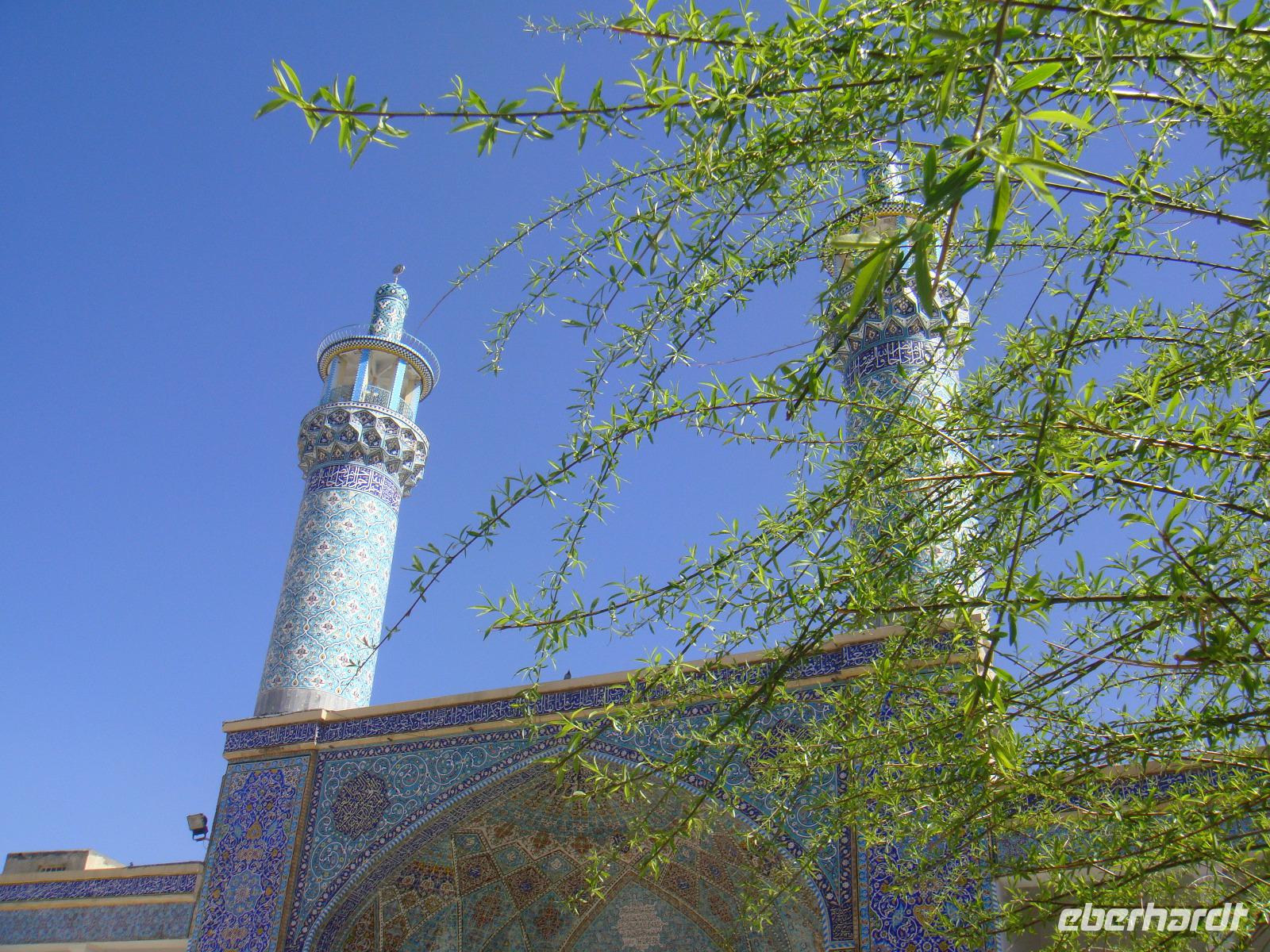 Nach dem Frühstück welches wir ebenfalls im Nachbarhotel einnehmen erkunden wir nun eines der schönsten Städte Persiens. Wir nutzen den Vormittag und gehen zur Nasir-al Molk Moschee. Die Sonnenstrahlen fahren durch das Fensterglas und somit gibt es ein prächtiges Farbenspiel im Inneren der Moschee. Da die Sehenswürdigkeiten in Shiraz dicht beieinander liegen, spazieren wir nach einem kurzen Plausch mit einem Iraner in Richtung Najarestan-Garten. Dies ist ein Verwaltungssitz aus dem Ende des 19. Jh. Er besteht aus einer Palastanlage und einem wunderschönen Garten. Wir erkunden die Anlage auf eigene Faust und nach einer kurzen Pause geht es weiter zu einer alten Koranschule. Diese ist jedoch nicht mehr in Betrieb. Ein kurzer Blick lohnt sich dennoch. Wir schlendern weiter durch die Straßen und kosten leckeres, frisches Fladenbrot an einer Bäckerei und versorgen uns mit Wasser. Am Nachmittag gönnen wir uns eine ausgiebige Kaffeepause in der Nähe des Mausoleums von Hafis. Hm leckerer Mochito und Kaffee. Nun brechen wir auf um das Mausoleum Hafis einer der bekanntesten persischen Dichter und Mystiker Persiens. Simin bringt uns das Leben des Dichters mit Gedichten und Liedern näher. Wir sind begeistert von Ihrem Gesang und somit stielt sie jedem Reiseleiter auch die Show. Wir fahren zurück zum Hotel und packen schon die Koffer für den nächsten Morgen.
