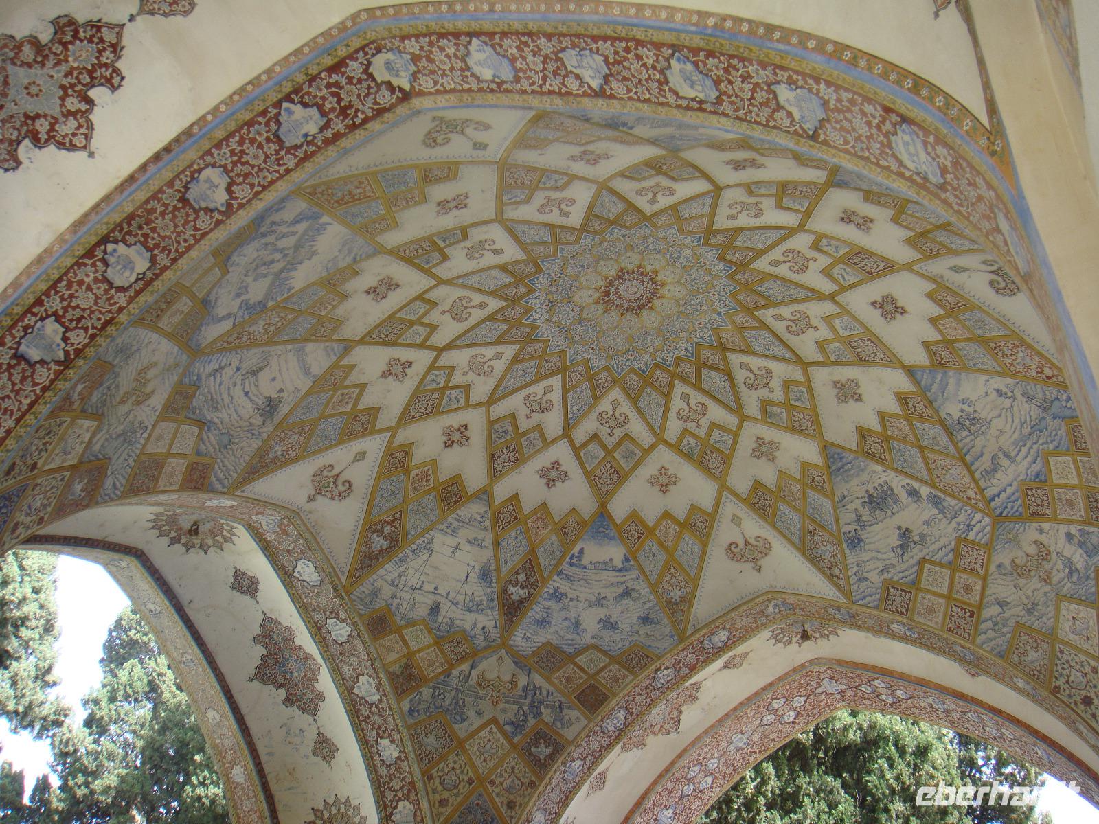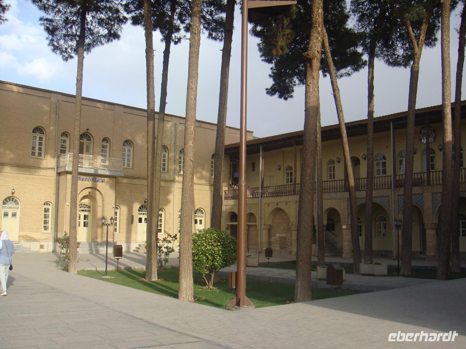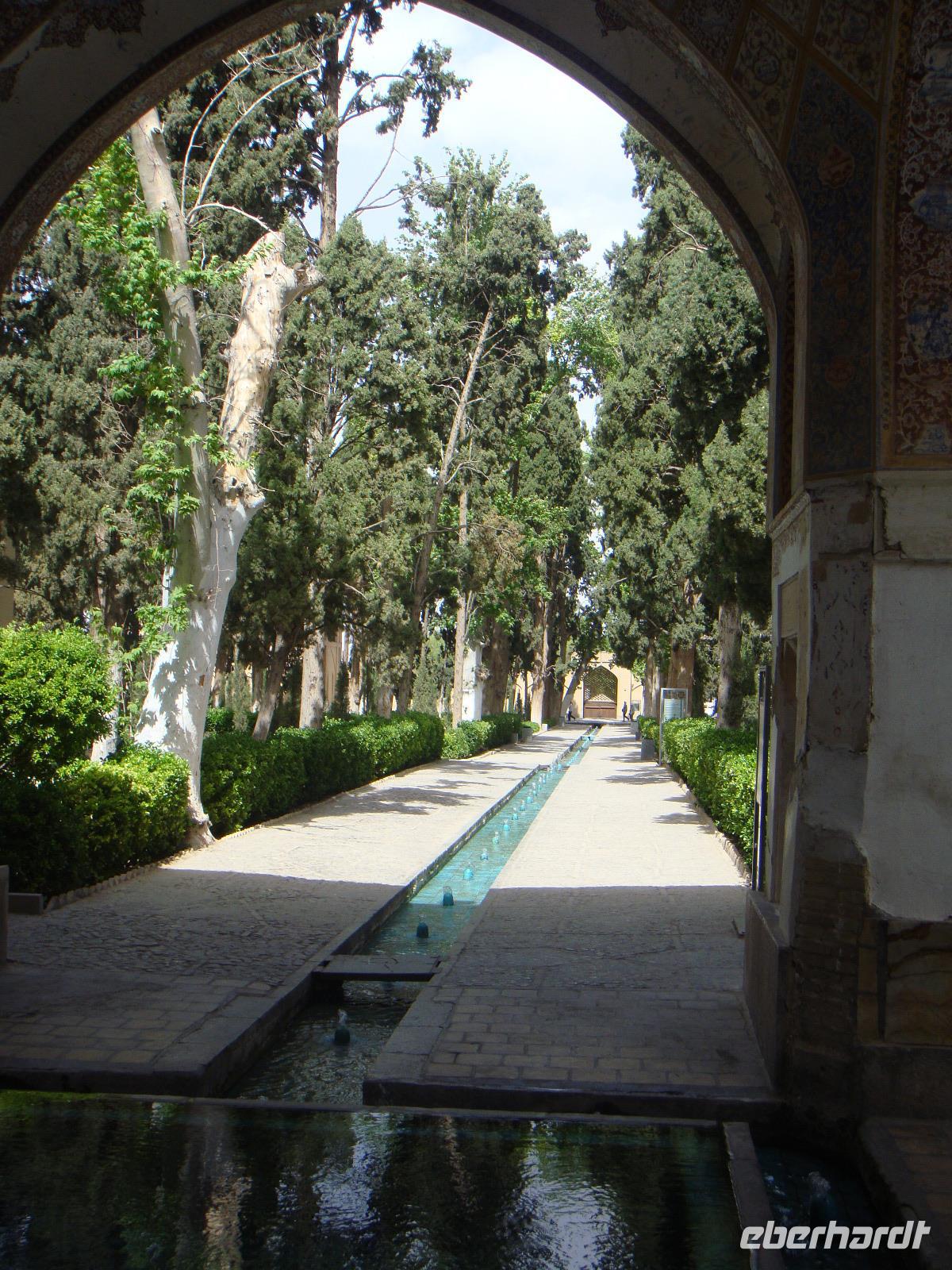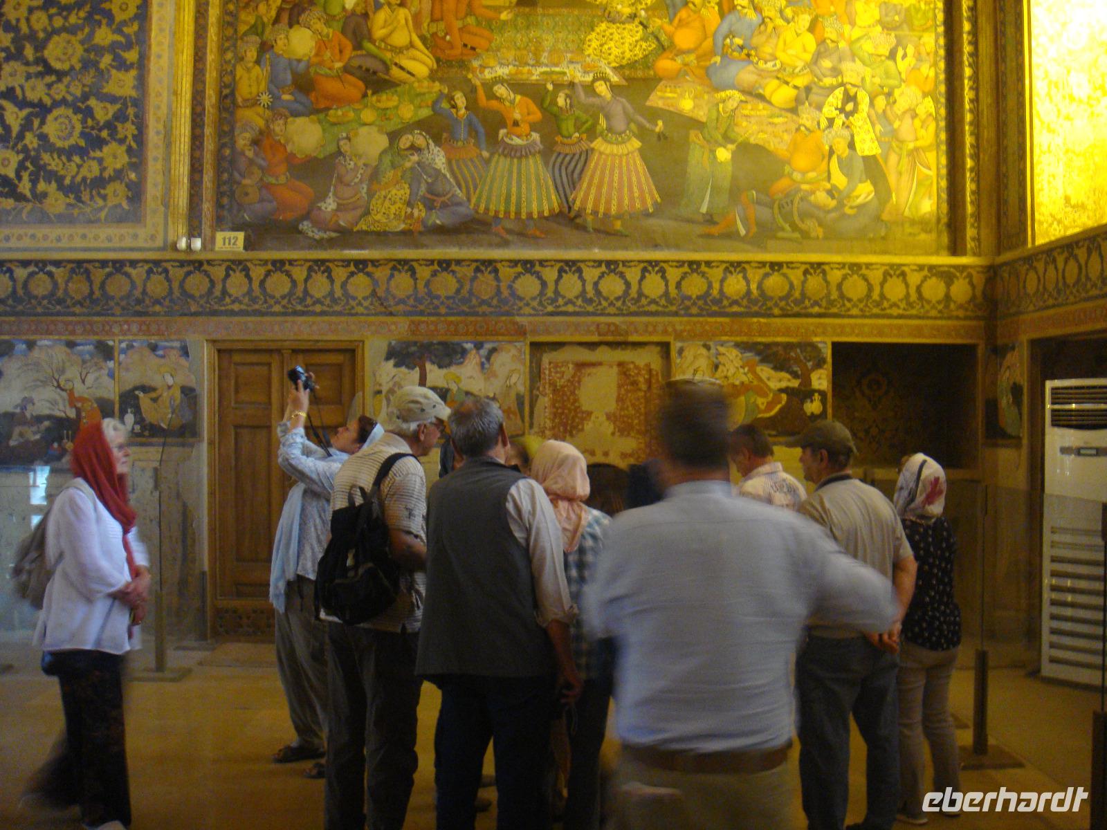 Den letzten Tag unserer Reise genießen wir in vollen Zügen. Die Stadt hat ein sehr anziehendes Stadtbild, sie ist sehr sauber und es gibt viele Grünanlagen. Zunächst besuchen wir den Palast der 40 Säulen. Mit einer großen Gartenanlage mit einem langgezogenen Wasserbecken, an dessen Ende sich ein gewaltiger Palast erhebt ist sehr beeindruckend. Das Dach des Palastes wird von zwanzig Säulen aus Zedernholz gestützt. Die Verdopplung der Säulen durch die Spiegelung im Wasserbecken gab dem Palast seinen Namen (40-Säulen-Palast). Im Inneren des Palastes sind die Wände mit Gemälden von politischen Ereignissen des 16.-18. Jahrhunderts geschmückt. Unweit vom 40-Säulen-Palast befindet sich der Maydan-e Naqsh-e Jahan-Platz bzw. auch Imam-Platz, dem Abbild der Welt. Er zählt zu den schönsten Plätzen der Welt. Wir besichtigen die 2 angrenzend stehenden Moscheen, die Lotfullah-Moschee (Privatmoschee der safawidischen Königsfamilien) und die Imam-Moschee. Interessant war der Besuch einer Tischdecken-Druckerei, in der die Muster per Hand auf die Baumwolle gestempelt werden. Von einer gewaltigen Veranda im 3. Stock kann man den gesamten Imam-Platz fantastisch überschauen. Leider stand uns aufgrund von Bauarbeiten nicht die gesamte Fläche zur Verfügung, aber selbst vom zugänglichen Teil gelangen uns einmalige Fotoaufnahmen. Anschließend bummelten wir über den prächtigen Bazar. Nun sind die letzten Einkäufe getätigt und Simin lädt zu einem köstlichem Safran Eis ein. Zum Abschluss fährt Sie noch mit uns in das jüdische Viertel. Es geht zurück zum Hotel und wir erleben in Hotel Restaurant mit einem herrlichem Panoramablick einen schönen Abschluss der. Nun heißt es Kofferpacken und fertig machen für den Abflug.