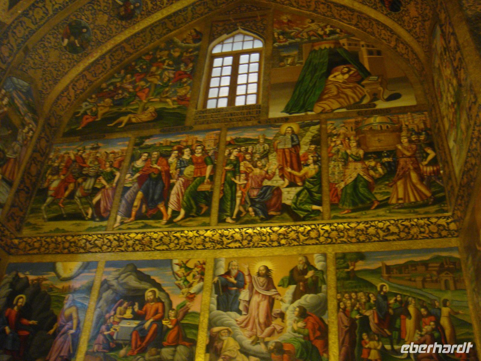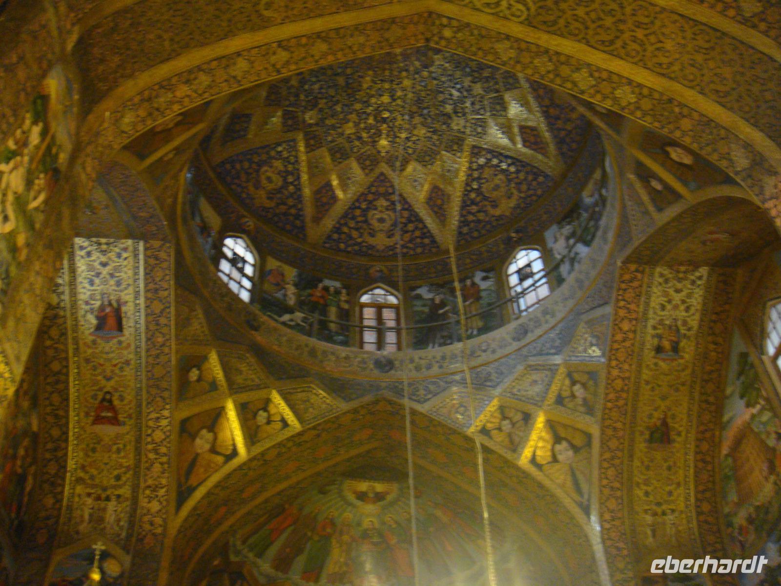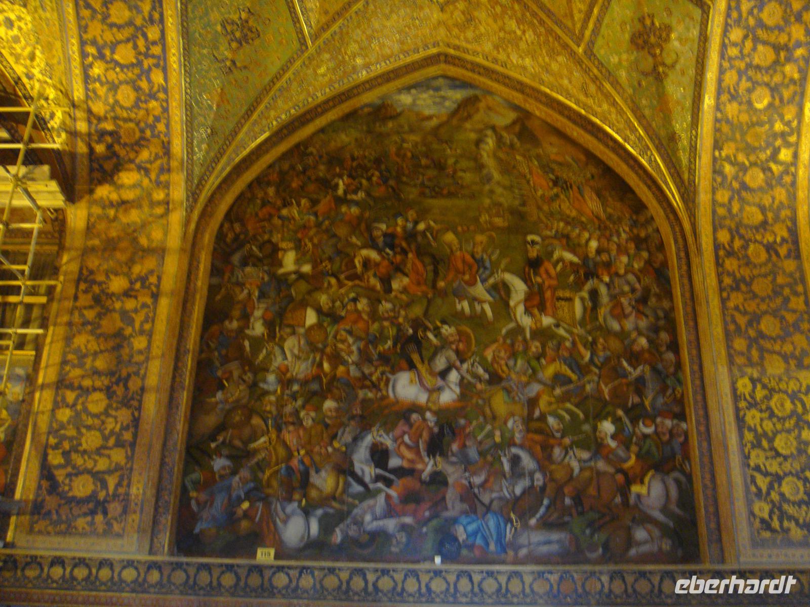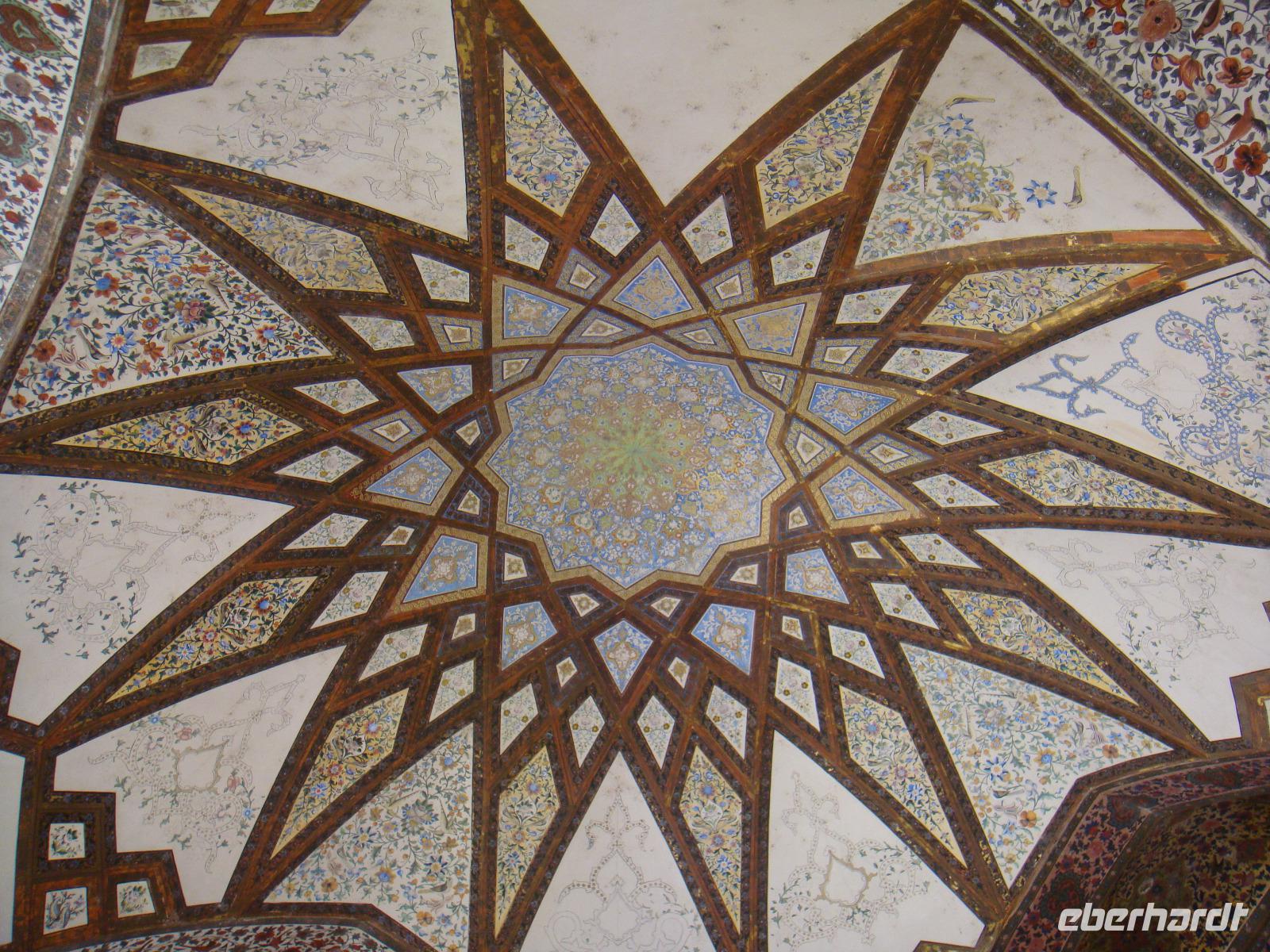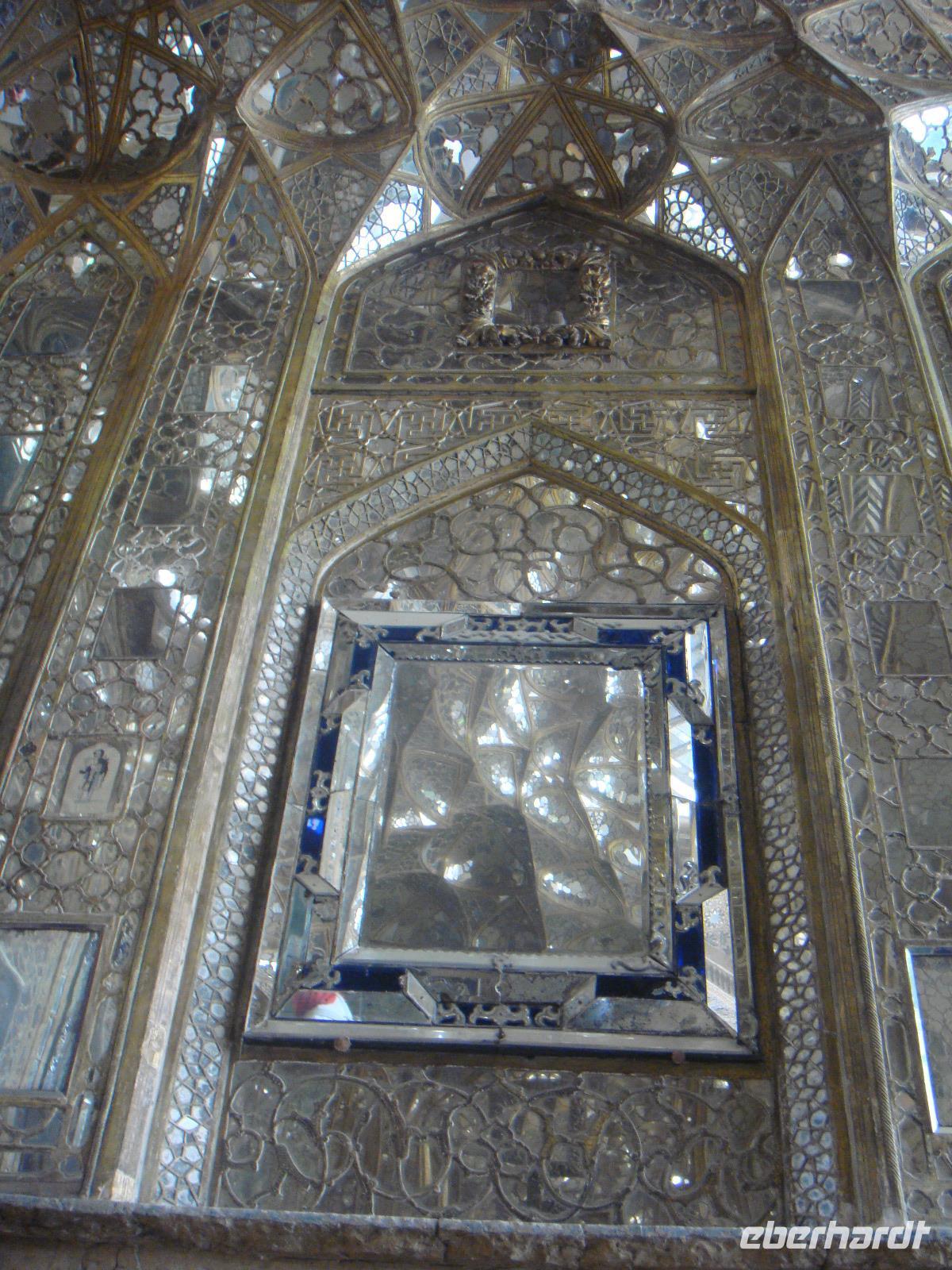 Den letzten Tag unserer Reise genießen wir in vollen Zügen. Die Stadt hat ein sehr anziehendes Stadtbild, sie ist sehr sauber und es gibt viele Grünanlagen. Zunächst besuchen wir den Palast der 40 Säulen. Mit einer großen Gartenanlage mit einem langgezogenen Wasserbecken, an dessen Ende sich ein gewaltiger Palast erhebt ist sehr beeindruckend. Das Dach des Palastes wird von zwanzig Säulen aus Zedernholz gestützt. Die Verdopplung der Säulen durch die Spiegelung im Wasserbecken gab dem Palast seinen Namen (40-Säulen-Palast). Im Inneren des Palastes sind die Wände mit Gemälden von politischen Ereignissen des 16.-18. Jahrhunderts geschmückt. Unweit vom 40-Säulen-Palast befindet sich der Maydan-e Naqsh-e Jahan-Platz bzw. auch Imam-Platz, dem Abbild der Welt. Er zählt zu den schönsten Plätzen der Welt. Wir besichtigen die 2 angrenzend stehenden Moscheen, die Lotfullah-Moschee (Privatmoschee der safawidischen Königsfamilien) und die Imam-Moschee. Interessant war der Besuch einer Tischdecken-Druckerei, in der die Muster per Hand auf die Baumwolle gestempelt werden. Von einer gewaltigen Veranda im 3. Stock kann man den gesamten Imam-Platz fantastisch überschauen. Leider stand uns aufgrund von Bauarbeiten nicht die gesamte Fläche zur Verfügung, aber selbst vom zugänglichen Teil gelangen uns einmalige Fotoaufnahmen. Anschließend bummelten wir über den prächtigen Bazar. Nun sind die letzten Einkäufe getätigt und Simin lädt zu einem köstlichem Safran Eis ein. Zum Abschluss fährt Sie noch mit uns in das jüdische Viertel. Es geht zurück zum Hotel und wir erleben in Hotel Restaurant mit einem herrlichem Panoramablick einen schönen Abschluss der. Nun heißt es Kofferpacken und fertig machen für den Abflug.