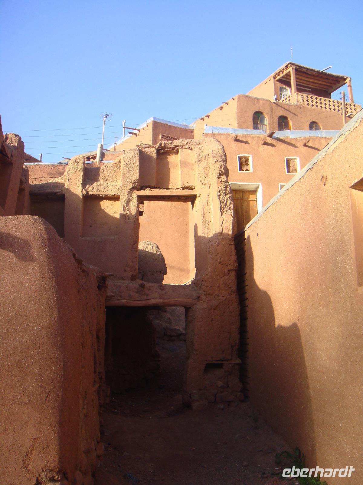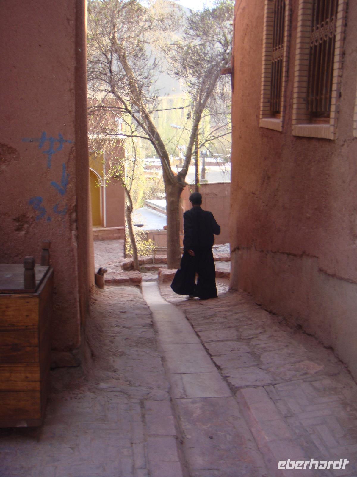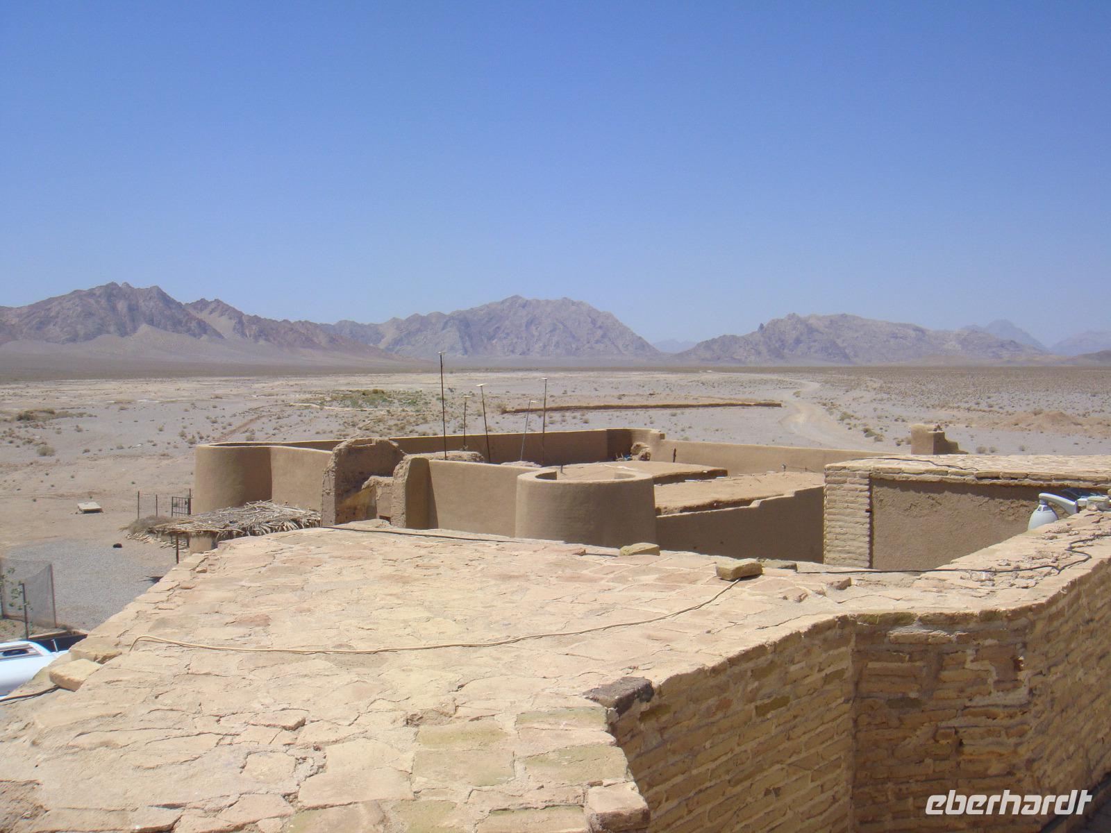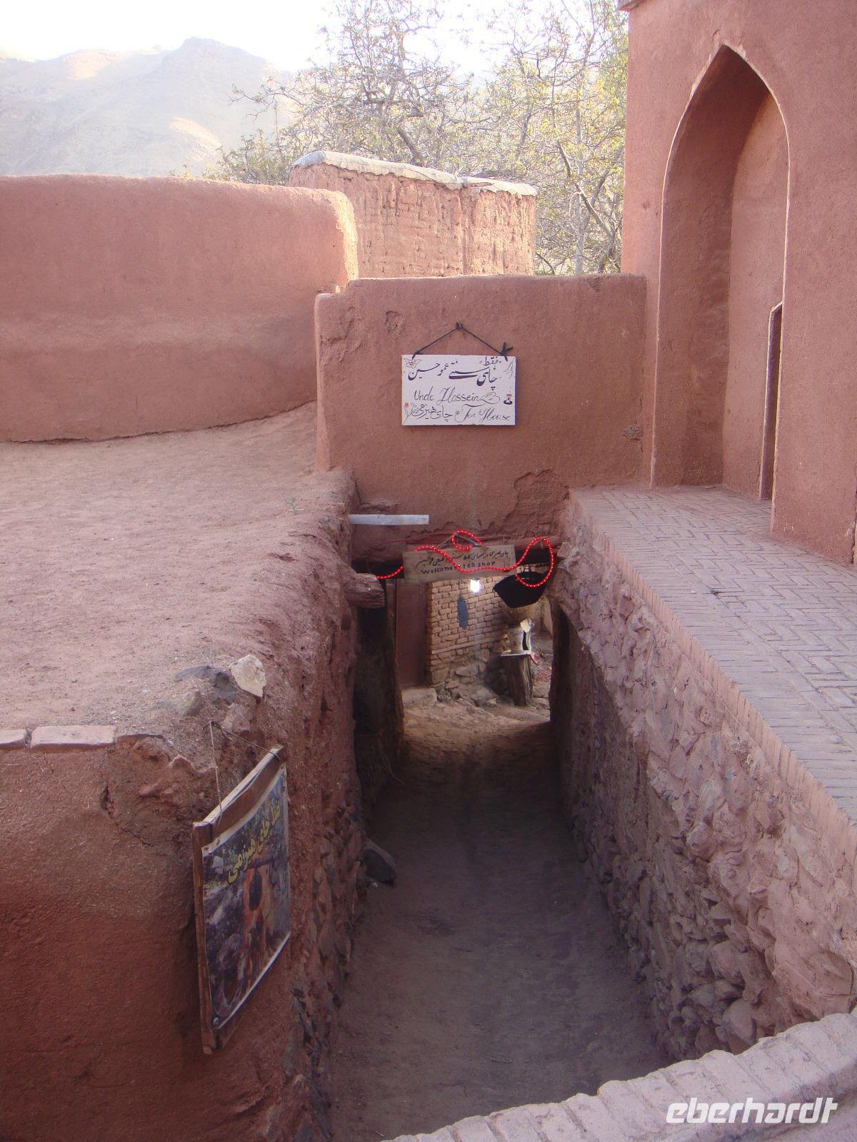 Heute liegt ein langer Tag mit ca. 570 Km vor uns. Von Hamadan aus fuhren wir auf der Autobahn in östliche Richtung nach Qom und von dort weiter nach Kashan. Am Nachmittag erreichten wir die Stadt und besuchten als erstes das Borujerdi-Haus. Wie überall im Orient sieht man von außen nicht, welche Pracht sich im Inneren verbirgt. Der Gebäudekomplex war und ist in einen öffentlichen, für Besucher zugänglichen Bereich und in einen privaten Bereich aufgeteilt. Im Innenhof spiegelt sich die Fassade in einem großen Wasserbassin. Nach diesem Besuch stärken wir uns wieder bei einem fürstlichen Picknick- Anschließend geht es zum Fin-Garten. Er ist vermutlich der älteste persische Garten und seine Existenz geht bis auf die achämenidische Zeit zurück. In diesem paradiesischen Garten hat sich auch eine Tragödie abgespielt. Auf Veranlassung des Shahs Nasseruddin wurde hier im Jahre 1852 der Premierminister Amir Kabir ermordet, da er sich als beliebter Politiker gegen den Ausverkauf Persiens eingesetzt hatte. Trotz dieser Geschichte fühlen wir uns in diesem Garten sehr wohl und wandeln gemütlich hindurch. Weiter geht es in Richtung Abyaneh und wir besuchen eines der alten Häuser aus dem 16. Jh. Nach kurzen Erläuterungen erkunden wir das Areal dieses wunderbaren Anwesens und nehmen Kurs auf das Dorf Abyaneh. Ca. 55 Km von Kaschan entfernt kommen wir über eine Serpentinenstraße in diesem typischen iranischen Dorf an. Wir spazieren durch das wohl älteste Dorf und deren schmalen Gassen und mit den rötlichen Lehmziegelhäusern. Überall treffen wir auf freundliche Menschen. In ihren für diesen Ort typischen Gewändern. Die Frauen tragen weiße, mit bunten Blumenmustern verzierte Kopftücher und die Männer Pluderhosen. Eine kleine Tee-Pause rundet diesen Besuch ab und wir begeben uns auf unsere letzte Etappe für den heutigen Tag. Am Abend erreichen wir unsere Unterkunft in Matin Abad. Wir beziehen unsere Zimmer in einer sehr schönen Karawanserei und gehen gemeinsam zum Abendessen. Unter sternenklaren Himmel verbringen wir mitten in der Wüste die Nacht.