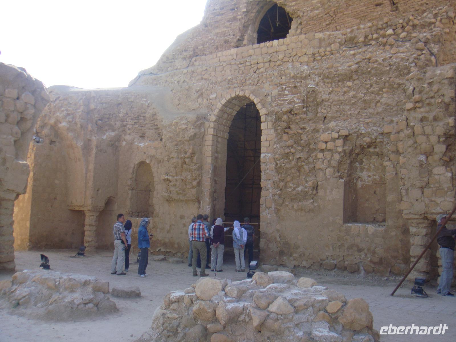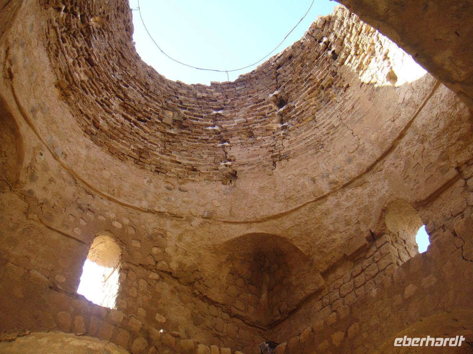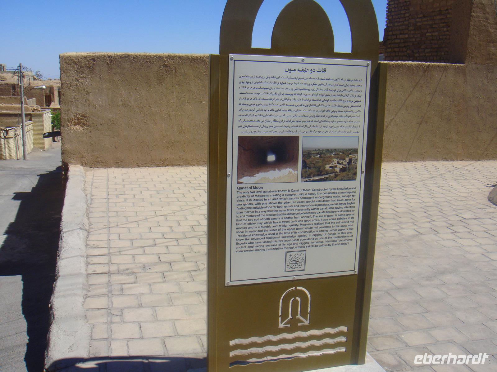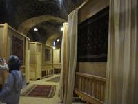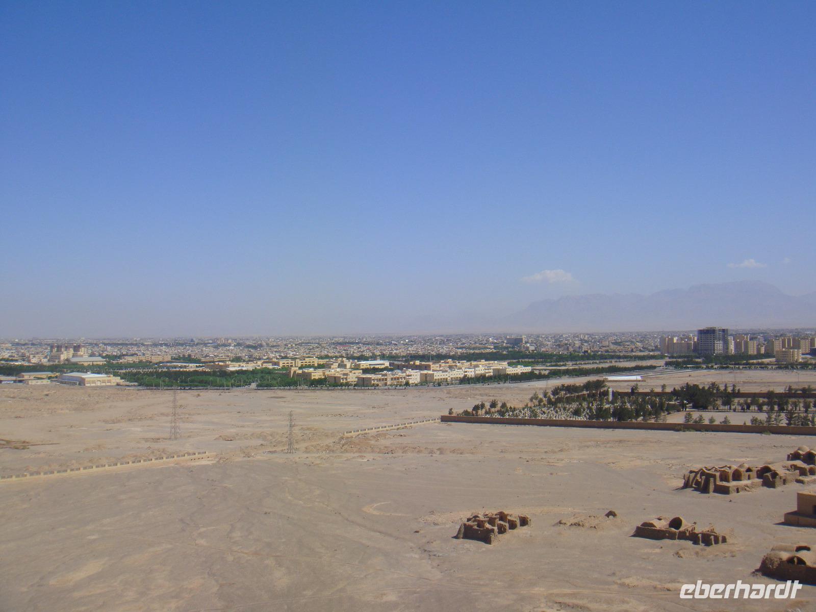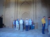 Den heutigen Tag beginnen wir mit dem Besuch des Dowlatabad- Gratens. Wir spazieren durch diese riesig ausgedehnte Gartenanlage mit Pavillon und Windturm. Das Zentrum der Anlage bildet wieder ein langes flaches Wasserbassin, an dem uns Simin die Funktionsweise des Zu- und Abflusses demonstrierte. Im Pavillon konnten wir anschaulich verfolgen, wie die Luftzirkulation in den Windtürmen zur Kühlung und Entlüftung funktioniert. Es wird etwas zügig. Vom Garten geht es direkt zu den „Türmen des Schweigens". Die Türme sind zwei auf Bergkuppen errichtete, ummauerte Heiligtümer am Stadtrand von Yazd. Da die Erde, das Feuer und das Wasser den Anhängern Zarathustras heilig sind, dürfen auch ihre Verstorbenen damit nicht in Berührung kommen. Man brachte sie nach der rituellen Waschung auf die Plattformen der Türme und überließ sie dort den Geiern. Nach einigen Tagen wurden die Knochen eingesammelt, gereinigt und in Öl gesalbten Krügen aufbewahrt. Nun nehmen wir unsere Fahrt weiter in Richtung Kerman auf. Unterwegs sehen Qanate, die seit Jahrhunderten die Wasserversorgung der Wüstenstädte über hunderte Kilometer sicherstellen. Viele dieser Anlagen werden auch heute noch genutzt, obwohl Wasserpumpen und moderne Wasserleitungen die historischen Anlagen immer mehr ersetzen. Simin bietet uns auch die Möglichkeit so etwas zu besichtigen. Am Nachmittag kommen wir in Kerman an. Wir beziehen unsere Zimmer und haben bis zum Abendessen noch etwas Zeit für die Erholung. Am Abend fahren wir zum Essen in einem kleinen Lokal in der Stadt. Wir sitzen draußen und lassen es uns schmecken. Gleich neben dem Restaurant befindet sich ein Süßwarenladen. Vor unserer Rückfahrt zum Hotel wird dieser von uns natürlich besucht. Glücklich und zufrieden kommen wir im Hotel an.