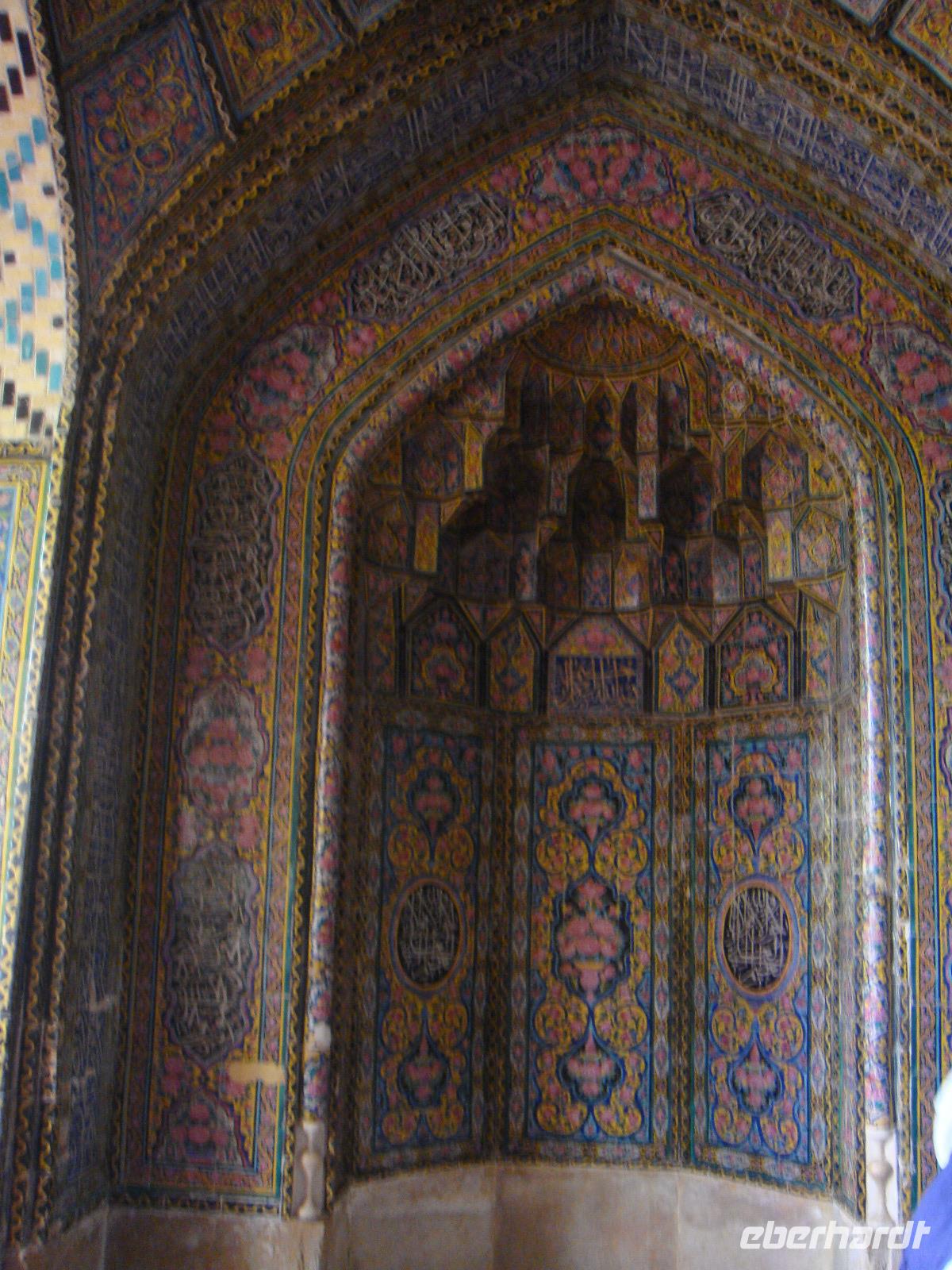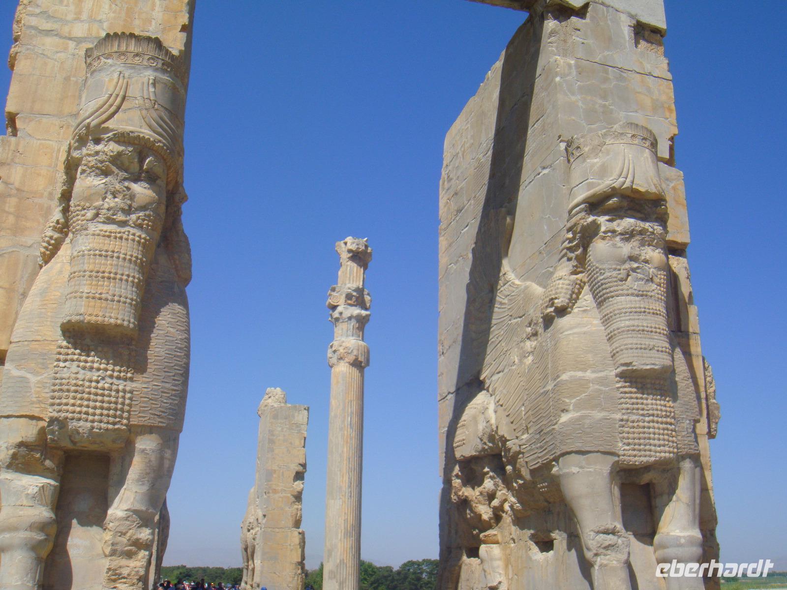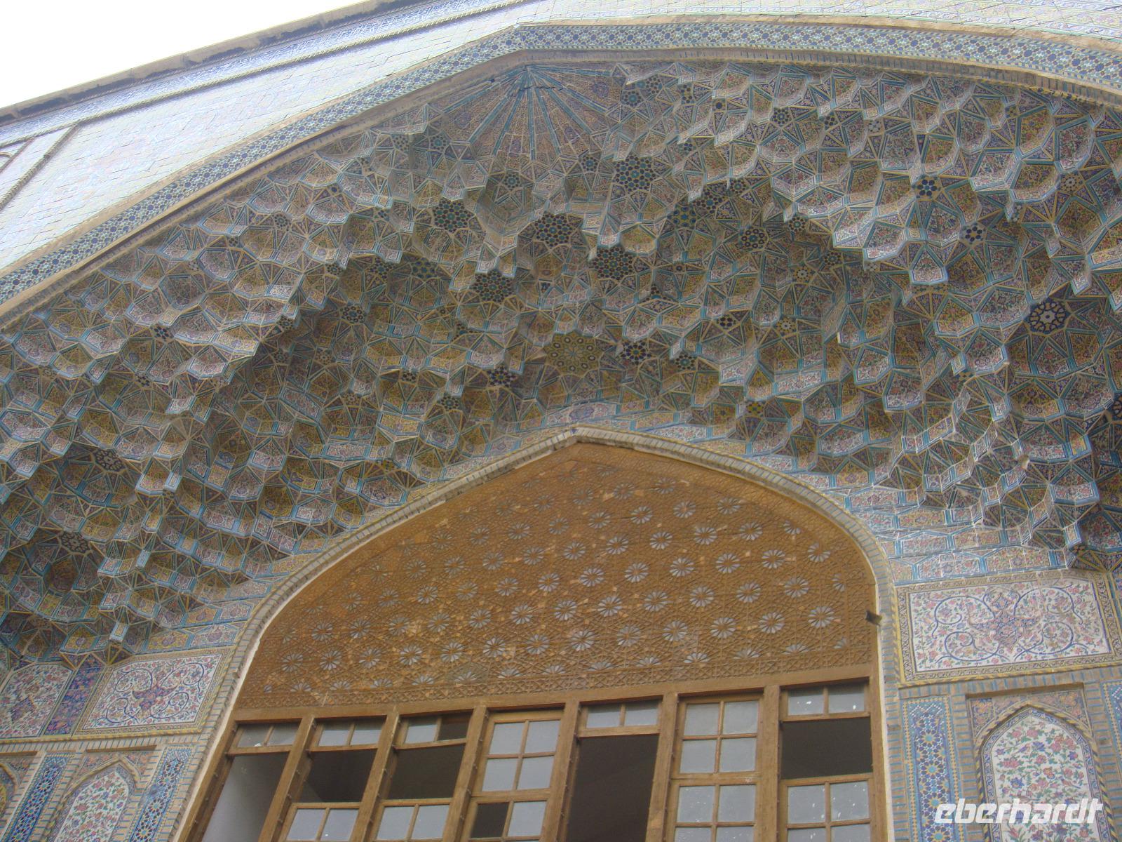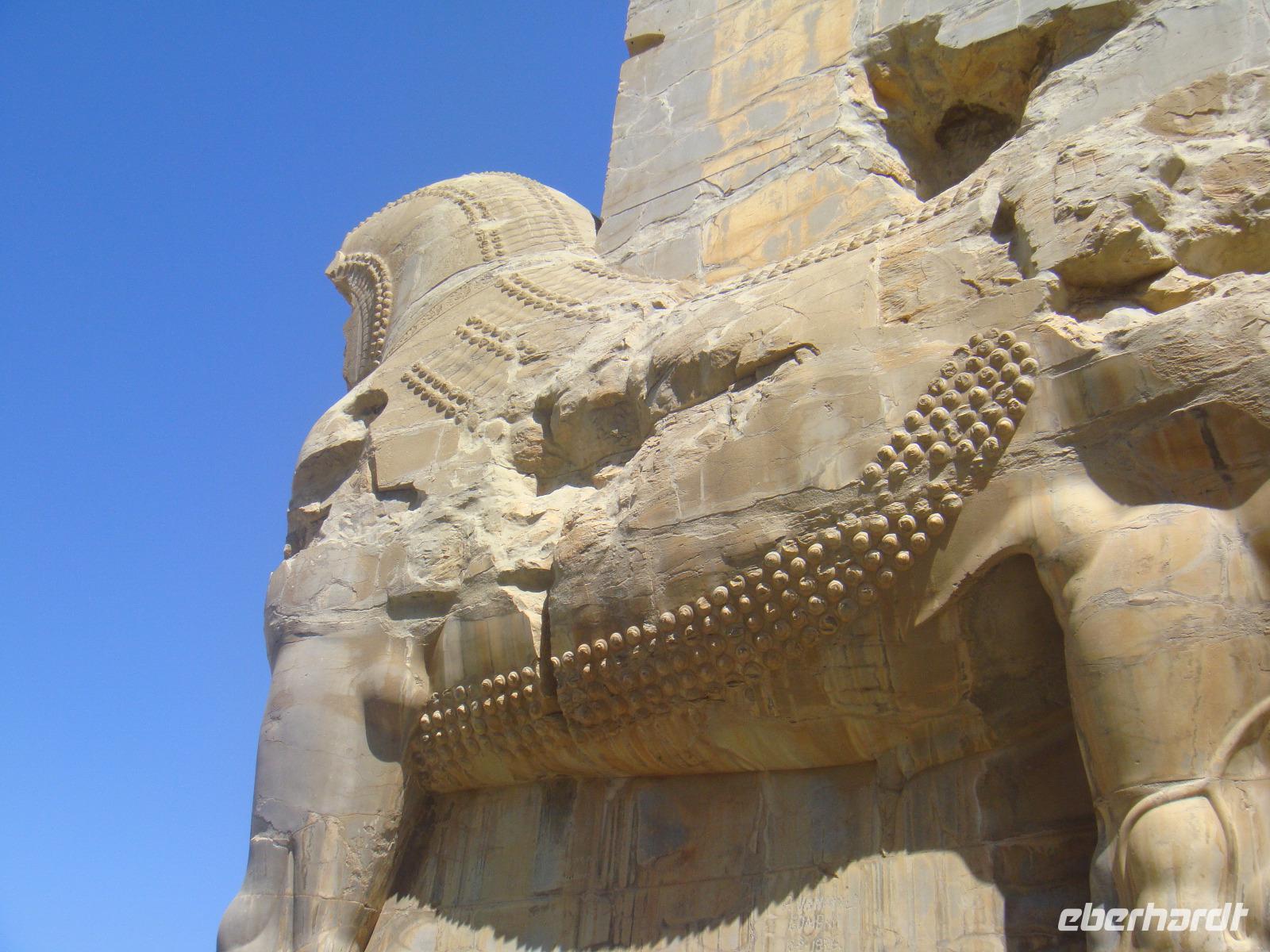 Heute steht ein besonderer Punkt auf dem Programm. Wir besichtigen Persepolis. Nach nur kurzer Fahrtzeit erreichen wir die altpersische Residenzstadt Persepolis. Sie war eine der Hauptstädte des antiken Perserreichs unter den Achämeniden und wurde 520 v. Chr. von Dareios I. im Süden Irans in der Region Persis gegründet. Der Name „Persepolis" bedeutet „Stadt der Perser"; der persische Name bezieht sich auf Dschamschid, einen König der Frühzeit. Simin führt uns durch die Überreste der Stadt die zum UNESCO Weltkulturerbe zählt und nach ca. 3 Stunden sind wir tief informiert. Bei ca. 32 Grad ist uns eine kleine Pause nur sehr recht. Über den Museumsshop geht es zurück zum Bus und wir fahren in das nahe gelegene Nasq-e-Rostam. Wir bestaunen die Felsgräber von vier achämenidischer Großkönige sowie eine Reihe unglaublich schöner Felsreliefs. Es handelt sich hier um die Abbildungen des Lebens der Rostamer. Nun ist es Zeit für eine Mittagspause. Diese gibt es in einem schönen Garten nahe der Felsgräber. Zu gutem Essen löscht ein iranisches kühles Malzbier unseren Durst. Nach dieser ausgiebigen Pause geht es wieder zurück nach Shiraz. Wieder genießen wir die Freizeit bis zum Abend und treffen uns zum gemeinsamen Bummel auf den Bazar. Auf dem Weg tauschen wir noch etwas Geld und stürzen uns dann in das Shoppingvergnügen des Bazars. Neben Gewürzen, schönen Stoffen, Tee und Düften locken so einige Dinge. Wir treffen uns in einem Teehaus und tauschen uns bei Koriander Tee und Zimtgebäck aus. Anschließend geht jeder individuell zurück zum Hotel.