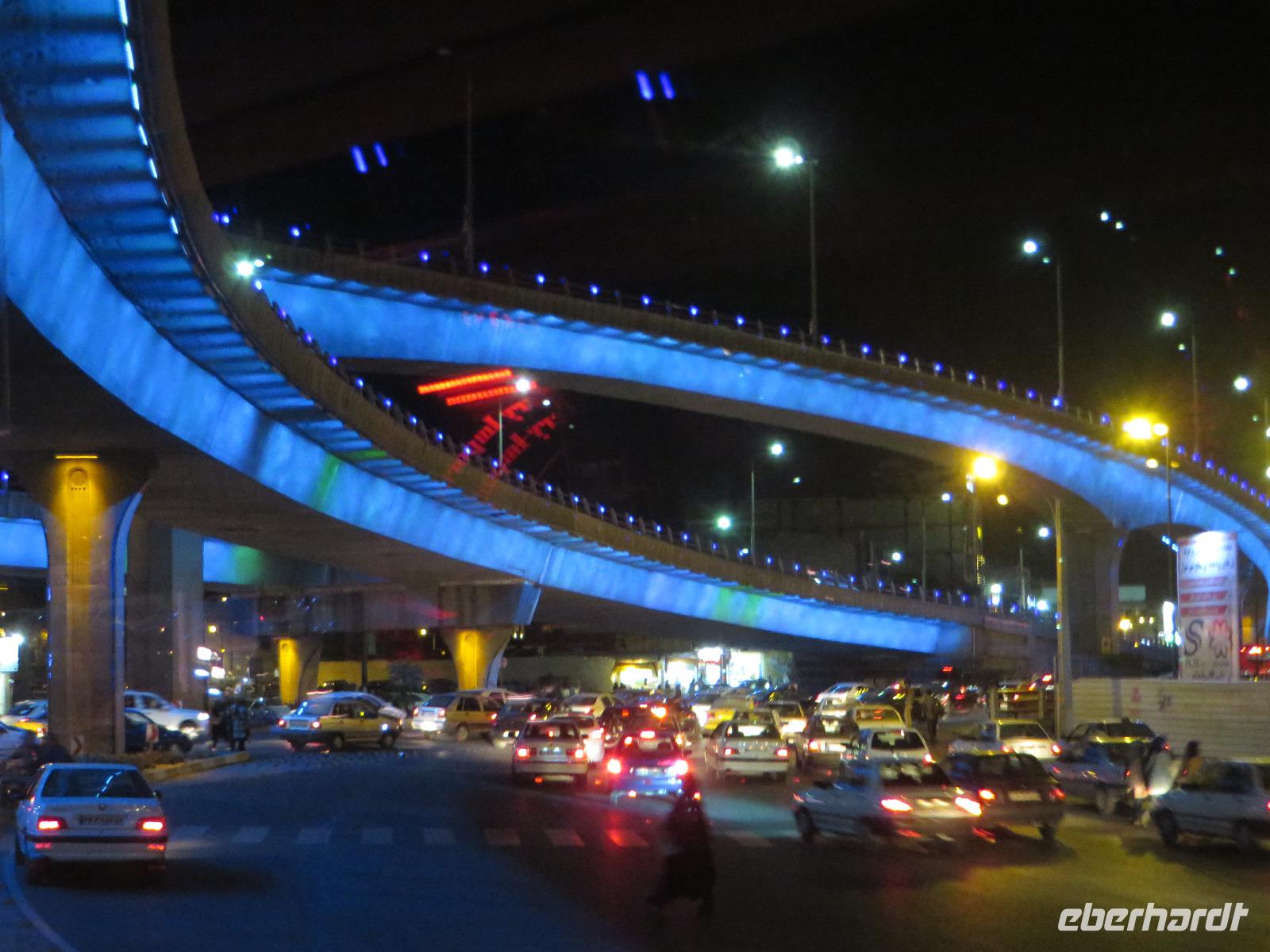 Mohammad, unser Busfahrer während der gesamten Rundreise, brachte uns sicher zum Hotel zurück. Am Abend unternahmen wir noch einen kurzen Spaziergang zu einem nahe gelegenen Restaurant, wo wir unseren nächsten Kontakt mit den Einheimischen hatten und unsere erste Essensbestellung in „persisch" abgaben. Man verstand uns sogar und das gebrachte Essen war vorzüglich. Auch gab es „doppelt gedrehte" Strohhalme, welche bei allen Gästen für ein Lächeln auf den Lippen sorgte. Anschließend fuhren wir noch mit der Metro zum nächtlich beleuchteten Azadi-Tower. Beides war für alle Gäste ein Erlebnis. Ein Iraner kommunizierte mit uns sogar in Deutsch.