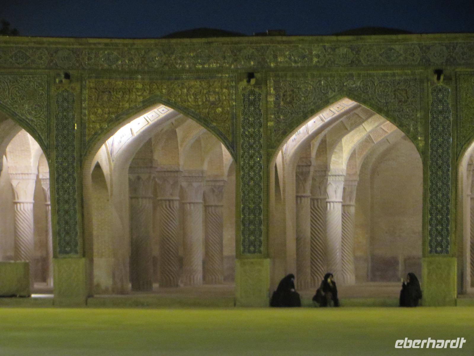 Heute konnten alle Gäste ein wenig länger schlafen, gab es an diesem Tag keine lange Busfahrt. Zuerst besichtigten wir den Eram-Garten. Leider war das Hauptwasserbecken mit Springbrunnen gerade in Bau, sodass es nicht ganz so malerisch wirkte. Weiter fuhren wir in das Stadtzentrum, wo unser Stadtrundgang begann. Von der Nasir ol-Molk bzw. Rosenmoschee mit ihren farbigen Fenstern und dem daraus resultierenden Farbenspiel ging es zu Fuß zum Pomeranzengarten, welcher sich leider auch in Bau befand. Anschließend besichtigten wir eine alte Koranschule und hatten Freizeit auf dem Vakil-Bazar. Vor unserem Mittagessen liefen wir noch an der Karim Khan Zitadelle vorbei.