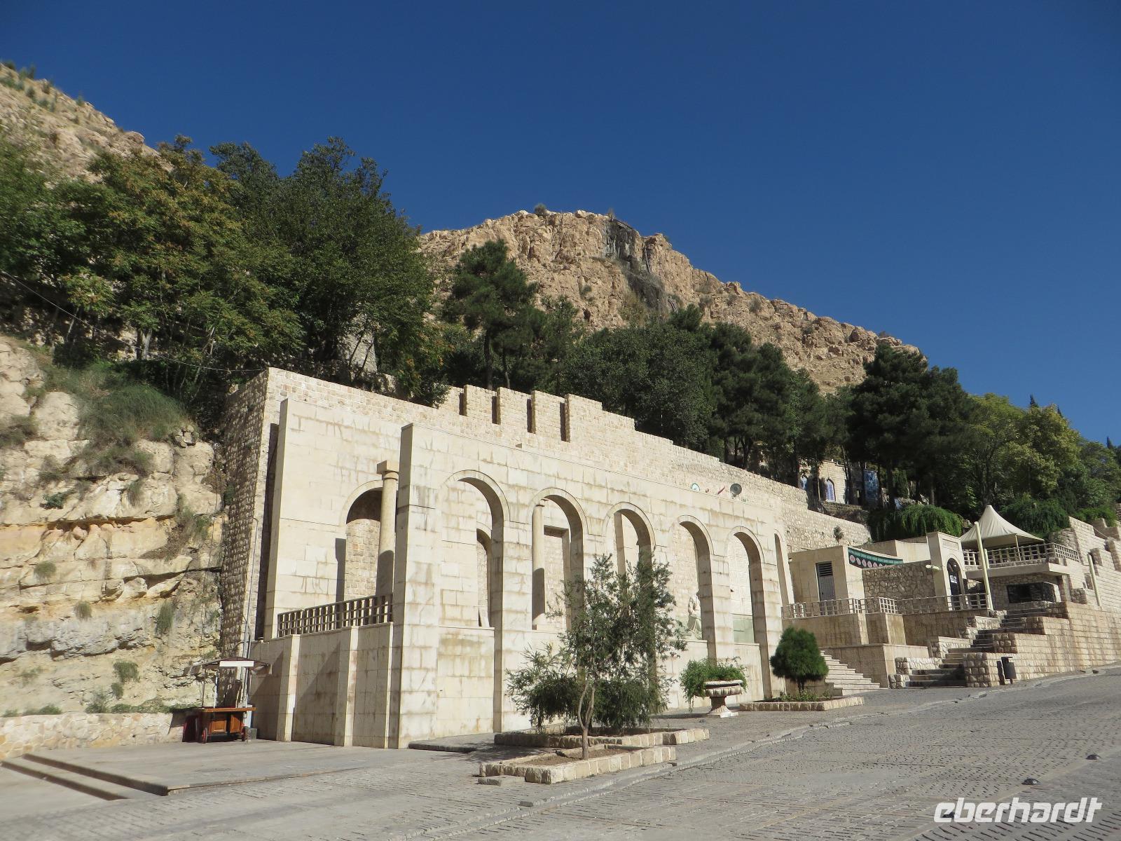 Am Abend erreichten wir Hamadan und besichtigten bei einbrechender Dunkelheit noch das Gandjname-Tal mit seinen achämenidischen Keilschrifttafeln. Auch einen noch nicht ausgetrockneten und beleuchteten Wasserfall gab es hier. Das Abendessen fand in einem Restaurant mit herrlichem Blick über das nächtliche Hamadan statt.
