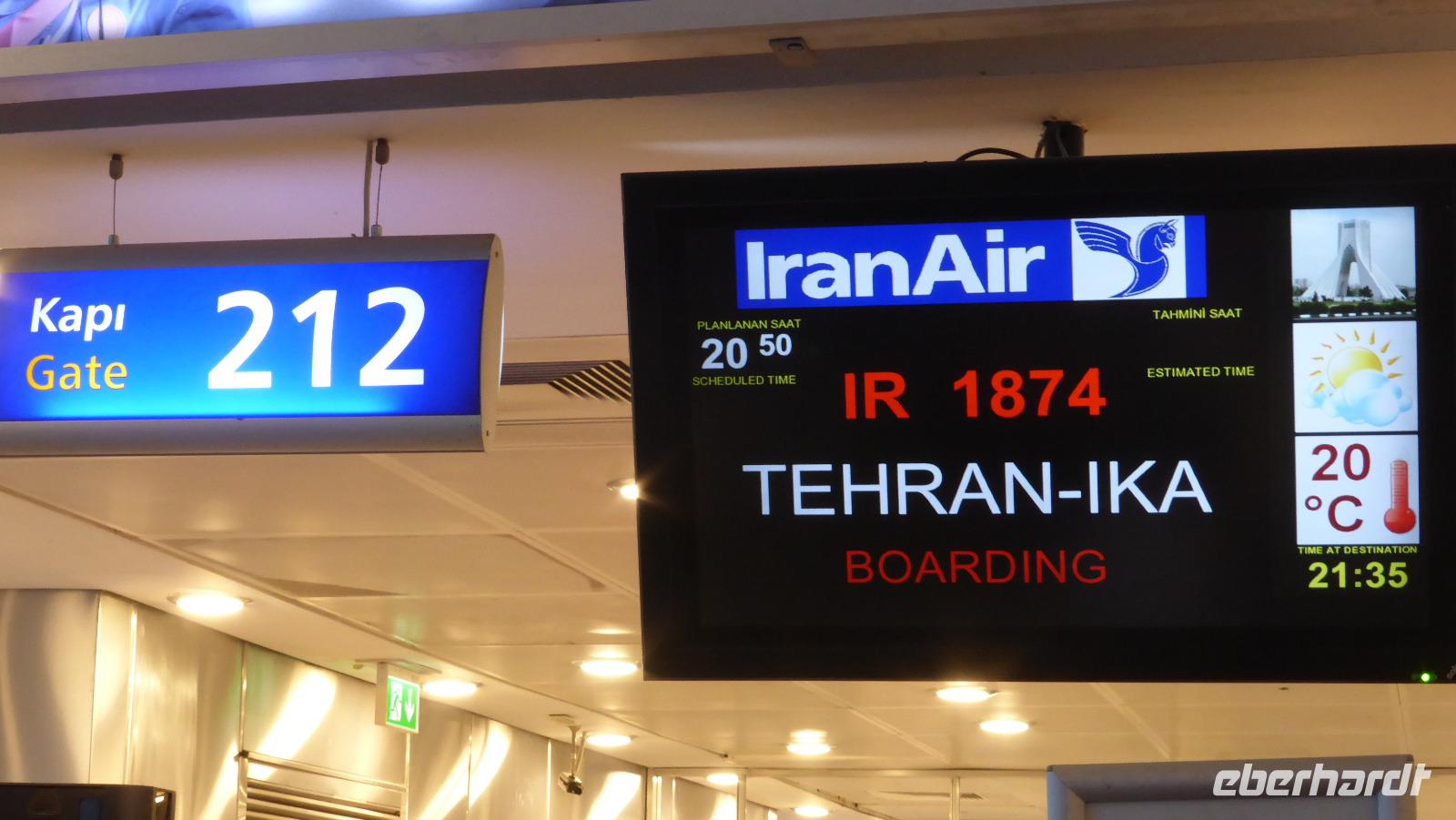 Am Morgen trifft sich unsere kleine Reisegruppe von 9 Personen am Flughafen Leipzig. Die Abfertigung auf dem überschaubaren Flughafen läuft ganz entspannt. Nach 2,5 Flugstunden erreichen wir bei 26 Grad und Sonnenschein Istanbul. Planmäßig haben wir hier einen längeren Aufenthalt bis wir am Abend den Anschlussflug nach Teheran nehmen. Halb zwei am frühen Morgen landen wir auf dem Imam Khomeini Flughafen Teheran. Kurz vor vier Uhr haben wir unser Hotel im Norden Teherans erreicht.