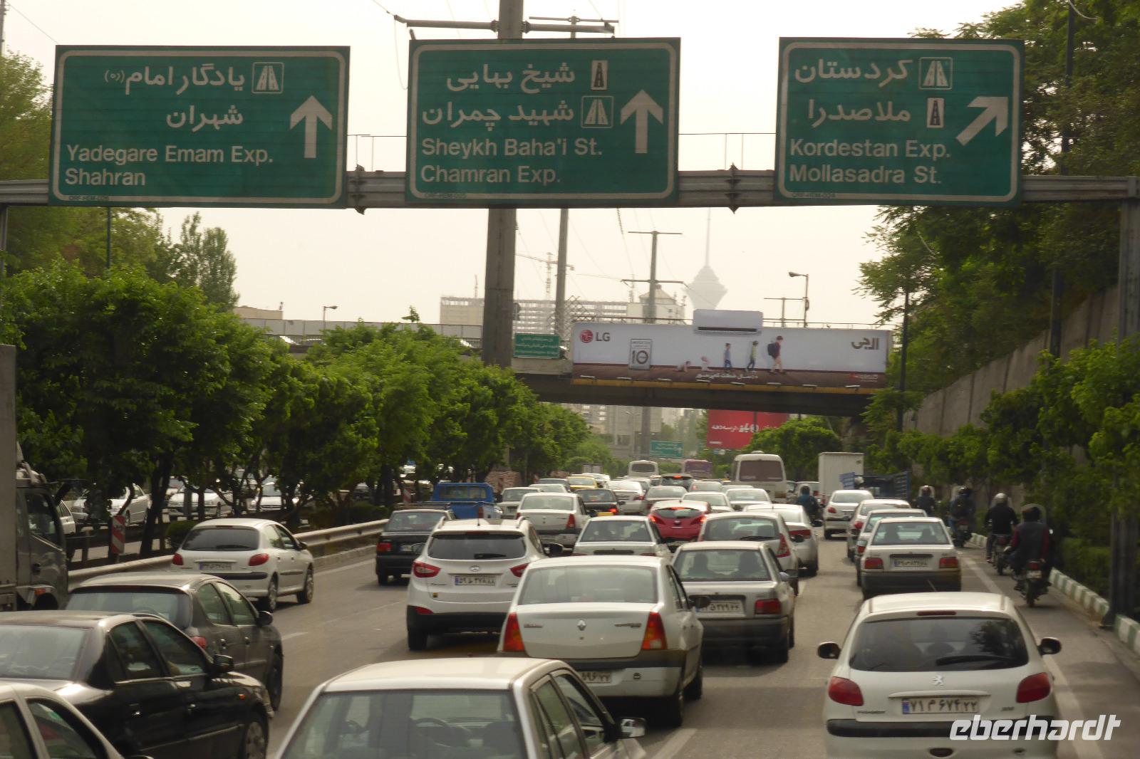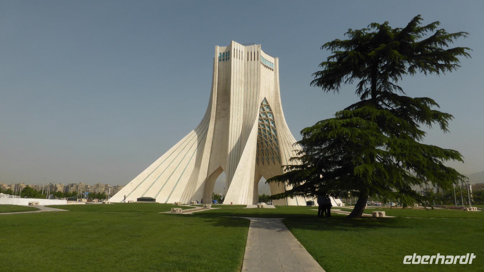 Heute Morgen liegt uns Teheran zu Füßen, denn die Luft ist für hiesige Verhältnisse klar und erlaubt einen weiten Blick über die Stadt. Auch die verschneiten Berge des Elburzgebirges sind gut zu sehen. Bevor wir die iranische Hauptstadt verlassen, halten wir am Wahrzeichen der Stadt, dem Azadi-Denkmal. Dieses wurde Anfang der 1970er Jahre durch den Schah im Zusammenhang mit den Feierlichkeiten zu 2.500 Jahren persischer Dynastien errichtet.