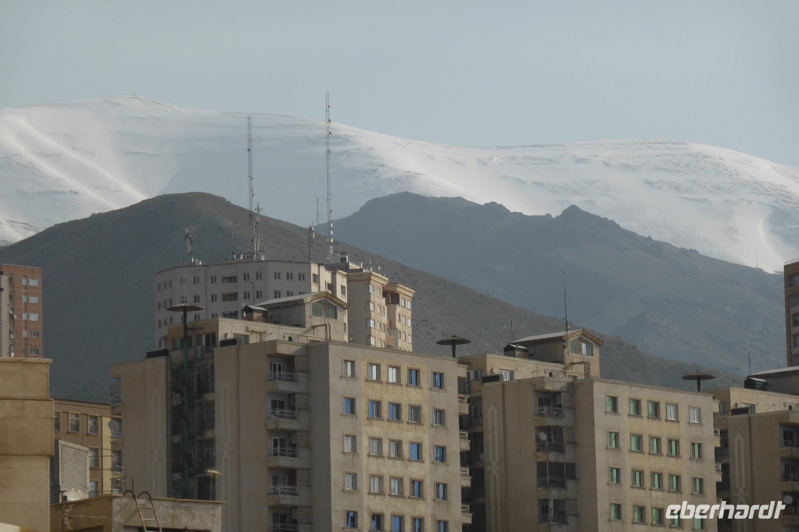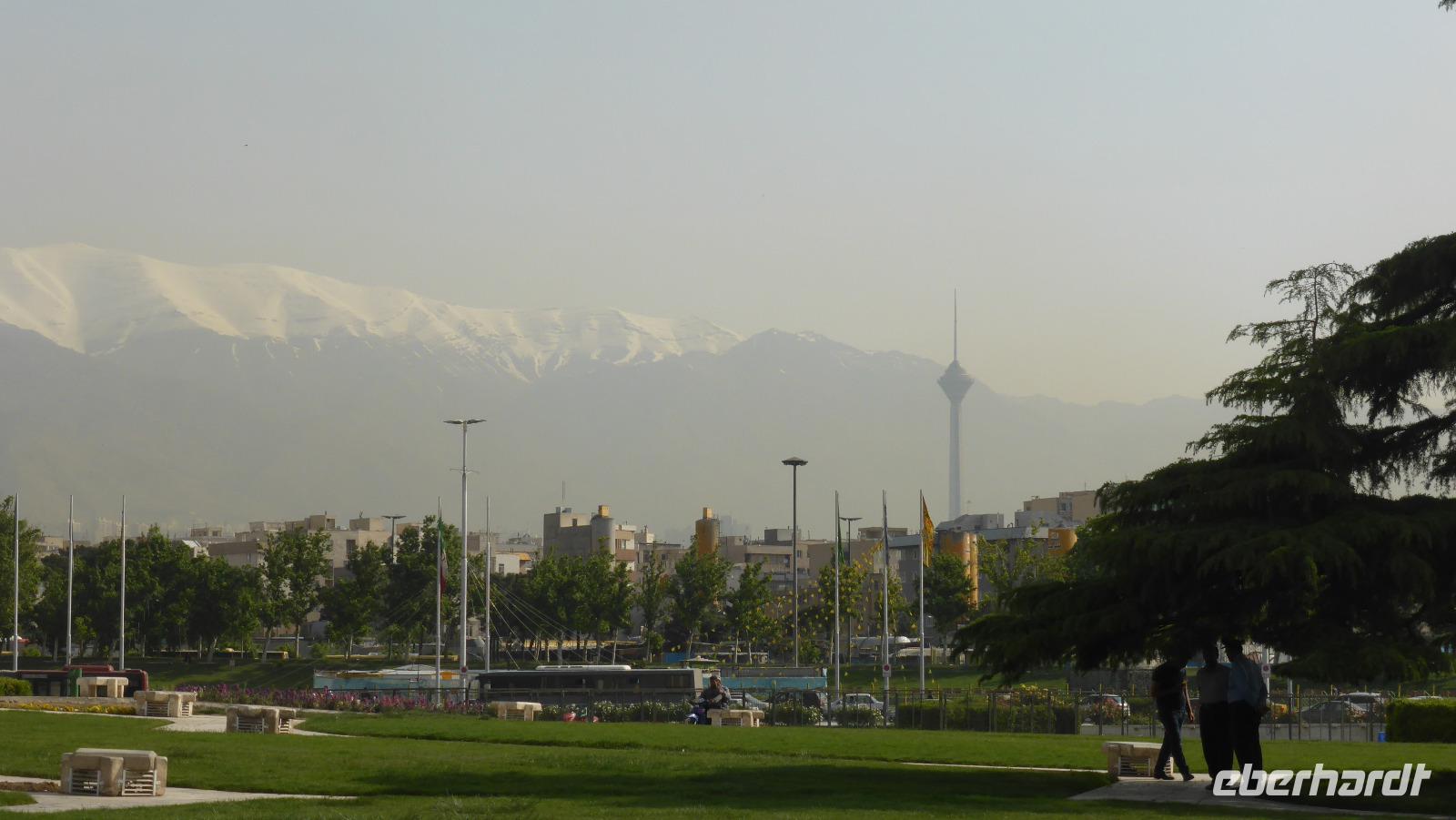 Am Vormittag beginnen wir unser Besichtigungsprogramm in Teheran. Im Moment ist es noch kühl und bewölkt. Wir befinden uns am nördlichen Stadtrand in ca. 1.700 Meter Höhe am Fuße des Elburzgebirges. Seine schneebedeckten Viertausender sind nicht weit von der Stadt entfernt.