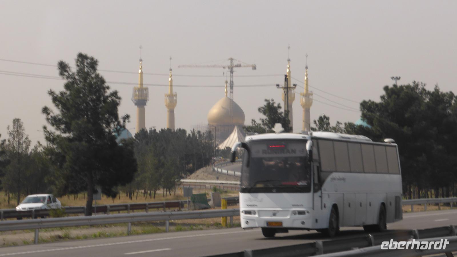 Wir verlassen Teheran Richtung Süden. Unterwegs kommen wir am Mausoleum des Revolutionsführers Ayatollah Khomeini vorbei. Neben dem 1989 verstorbenen Imam beherbergt es auch das Grab seiner Frau und eines seiner Söhne. Das Mausoleum ist Teil eines Komplexes, bestehend aus einem Kulturzentrum, einer Universität für Islamstudien und einer Akademie. Von hier aus ist es nicht mehr weit nach Ghom, lange Zeit Wirkungsstätte Khomeinis. Ghom gilt mit seiner theologischen Hochschule und dem Schrein der Fatima als ein wichtiges Zentrum der Schiiten.