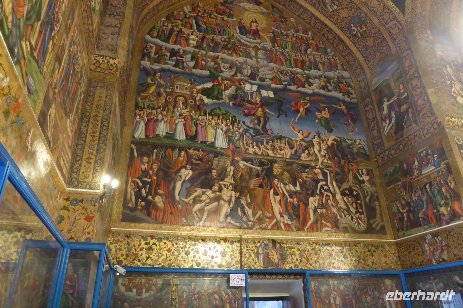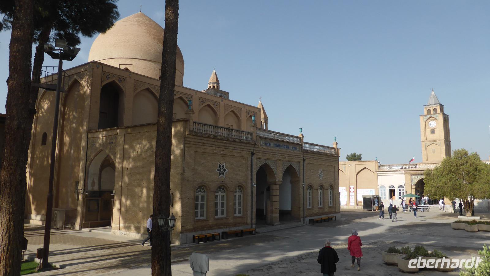 Wir beginnen unsere Stadtbesichtigung mit dem Besuch der Vank-Kirche, der schönsten von 14 Kirchen im Armenischen Dscholfa-Viertel. Die Vank-Kirche ist im Inneren vollständig mit Szenen aus dem Alten Testament in farbenfrohen Wand- und Deckenmalerei „ausgemalt". Eine Besonderheit stellen die Kuppel in Form einer Moscheekuppel sowie die Wandkacheln im Inneren dar.