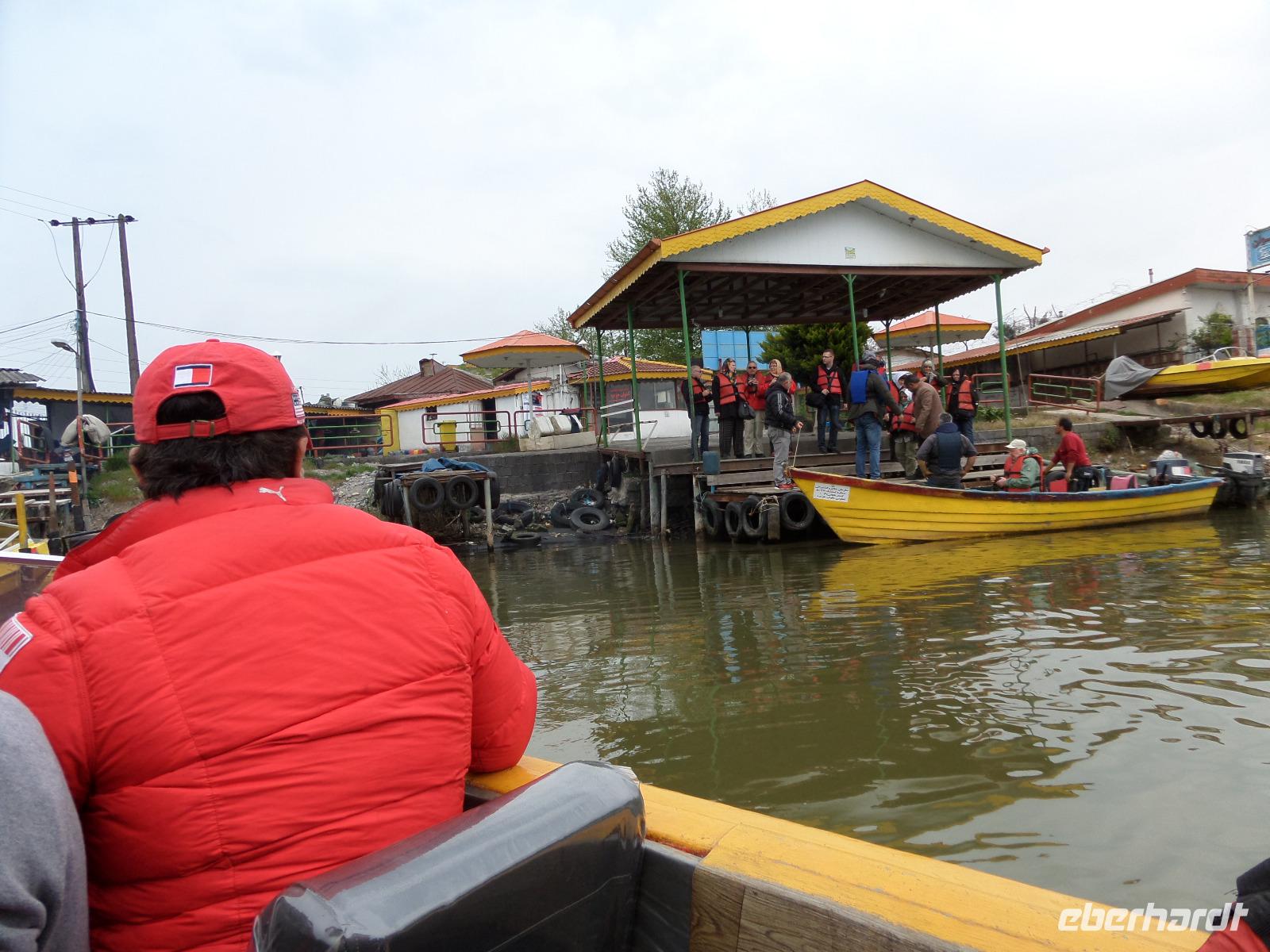 Am nächsten Morgen ging es weiter Richtung Norden. Von Qazvin führt die einzige Straße ans Kaspische Meer, die auch im Winter passierbar und meist schneefrei ist. In Bandar-e Anzali, der wichtigsten iranischen Hafenstadt am Kaspischen Meer, erwartete uns eine Motorbootfahrt durch die Lagunenlandschaft Mordab. Bandar-e Anzali liegt auf einer 33 km langen Halbinsel, die das Kaspische Meer von einer landeinwärts gelegenen Süßwasserlagune trennt. Eindrucksvoll lagen die großen Schiffe aneinander gereiht an den Kais fest und abseits des städtischen Trubels konnten wir viele Wasservögel sowie unberührte Natur beobachten. Unangenehm fiel uns im Hafenbereich und am Rand der Lagune der viele Plastikmüll auf, der das Erlebnis der Bootsfahrt ein wenig trübte. Anschließend fuhren wir direkt zu unserem am Strand gelegenen Grand-Hotel „Sefid Kenar". Nach dem Beziehen der Zimmer hatten wir noch etwas Freizeit und trafen uns zum gemeinsamen Abendessen wieder.