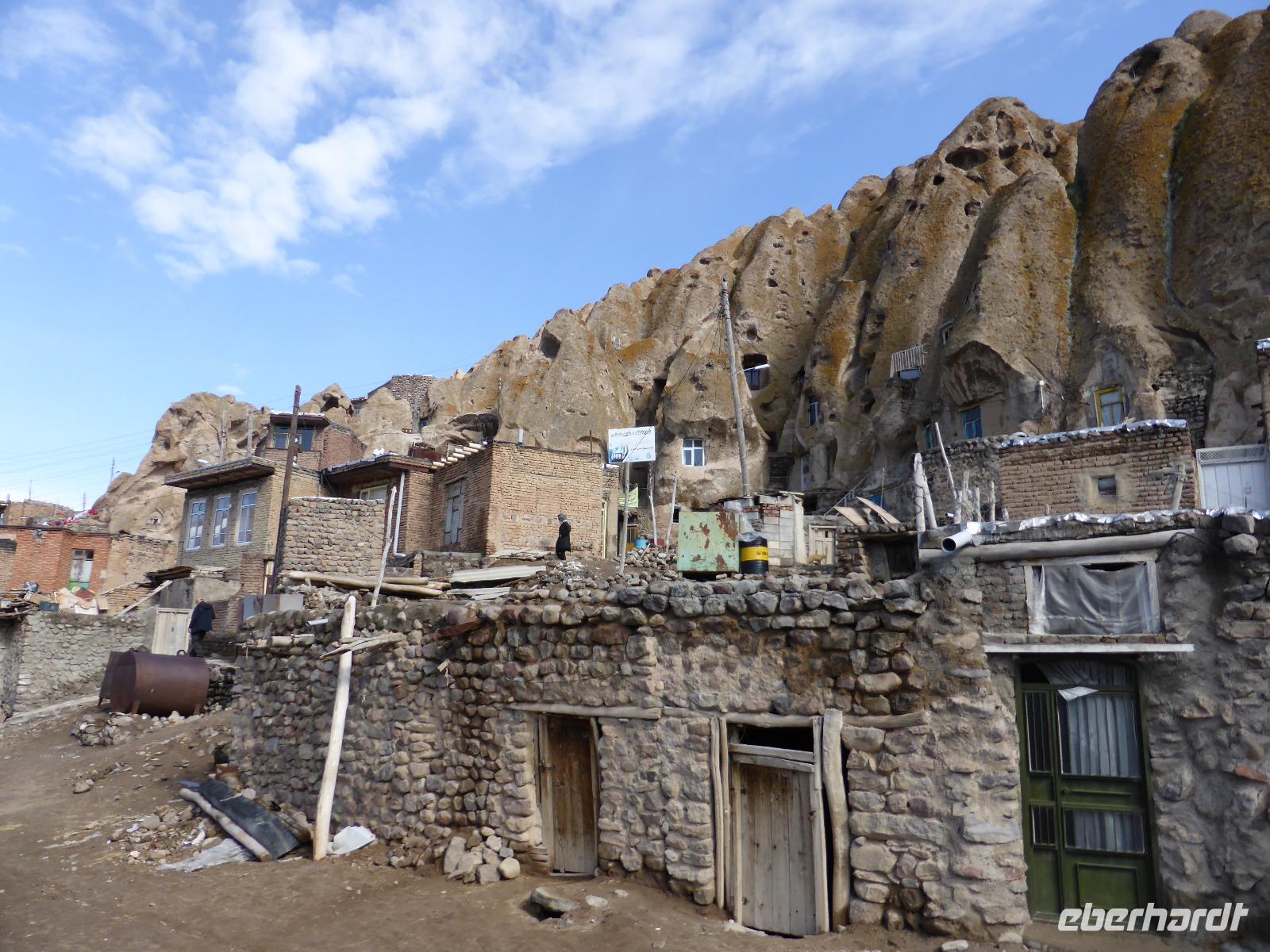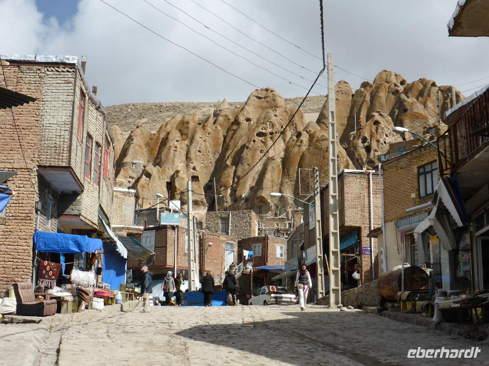 Nach dem Abschied von Tabriz ging es ins nicht weit entfernte Bergdorf Kandovan. Der Ort galt als Zufluchtsstätte in unruhigen Zeiten und insbesondere zur Zeit des Mongolenansturms diente er als Fluchtburg. Die Höhlenwohnungen wurden seit dem 12.Jh. in den weichen Tuffstein geschlagen, wobei sich die dicht aneinander gereihten Tuffstein-Pyramiden über eine Höhe von mehreren Metern erstrecken können und bis zu drei Stockwerke angelegt werden können. Die Bewohner leben heute überwiegend von Landwirtschaft, Tourismus sowie unzähligen Obst- und Taschenläden, in denen vorwiegend lokale Erzeugnisse angeboten werden. Die Elektrifizierung hinterließ ein unglaubliches Kabelwirrwarr über den Straßen und zwischen den Tuffsteinhäusern. Von Kandovan aus fuhren wir ganz dicht an den Orumiyeh-See heran. Einst zehn Mal größer als der Bodensee ist seine Fläche um ein Drittel geschrumpft. Damit einher ging ein Anstieg des Salzgehaltes auf bis zu 30%, wodurch die einzig im See lebenden Lebewesen, die Salzwasserkrebse, die die Nahrung für Flamingos und Pelikane bilden, in ihrer Existenz gefährdet sind.