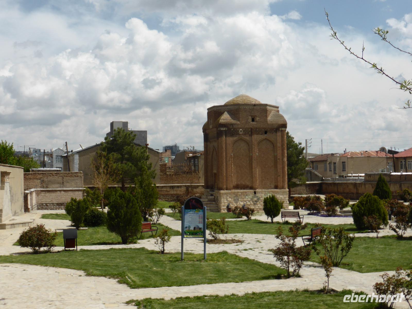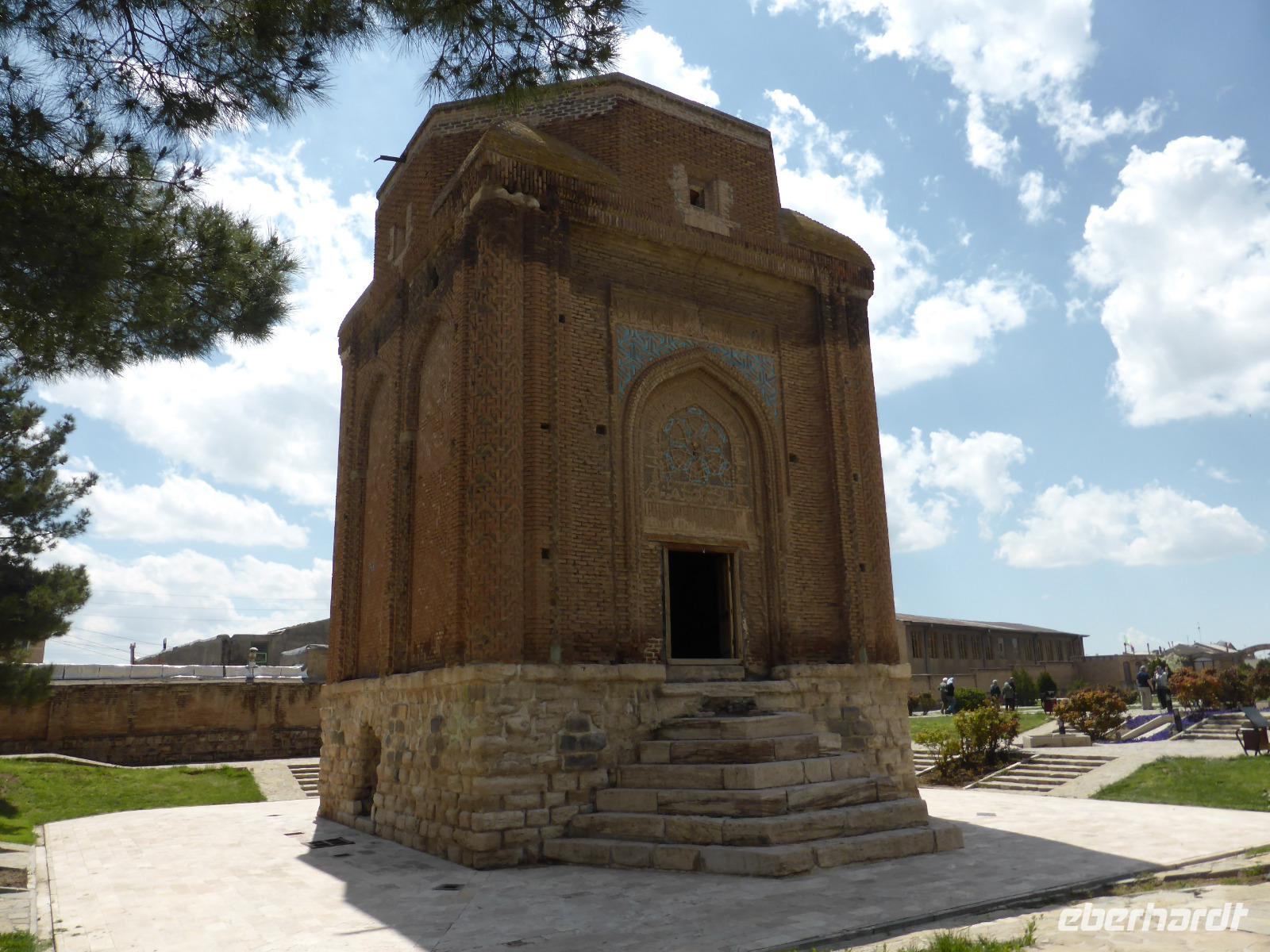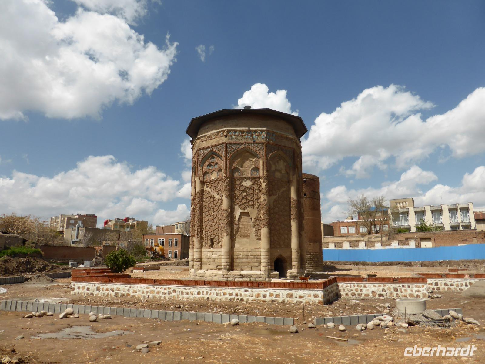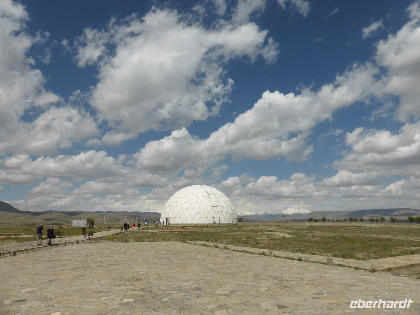 Vom Fotostopp am Orumiyeh-See ging es weiter nach Maragheh, wo wir zwei seldschukische Grabtürme besichtigten und anschließend zum ehemaligen Observatorium, welches auf einem Bergrücken hoch über der Stadt liegt. Das ehemals vierstöckige Gebäude war im13.Jh. eines der bedeutendsten der damaligen Zeit. Die dort bestimmte Präzession der Position der Sterne und Planeten war die genaueste seit der Antike und wurde in den sogenannten „Tafeln der Ilchane" zusammengefasst, an denen sich später auch Nicolaus Kopernikus orientierte.