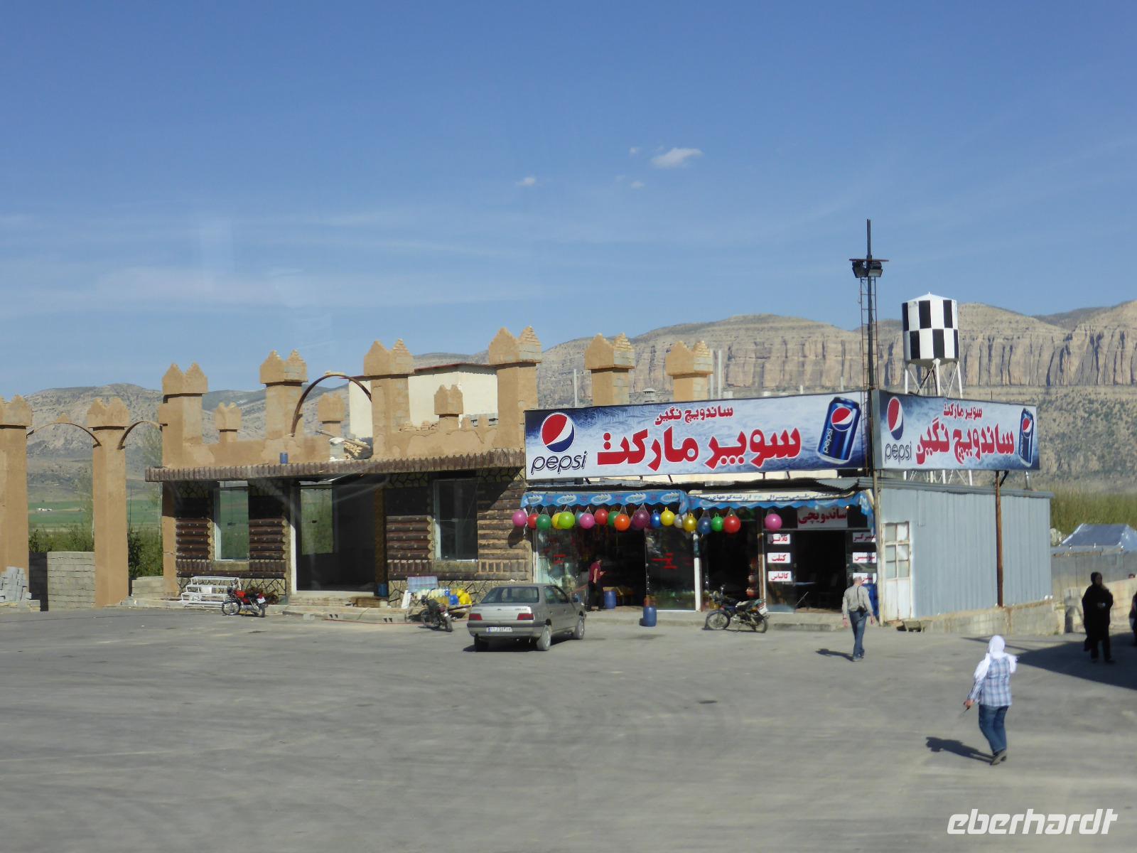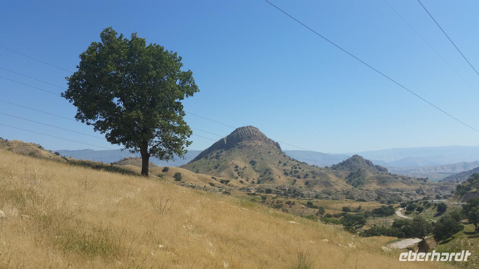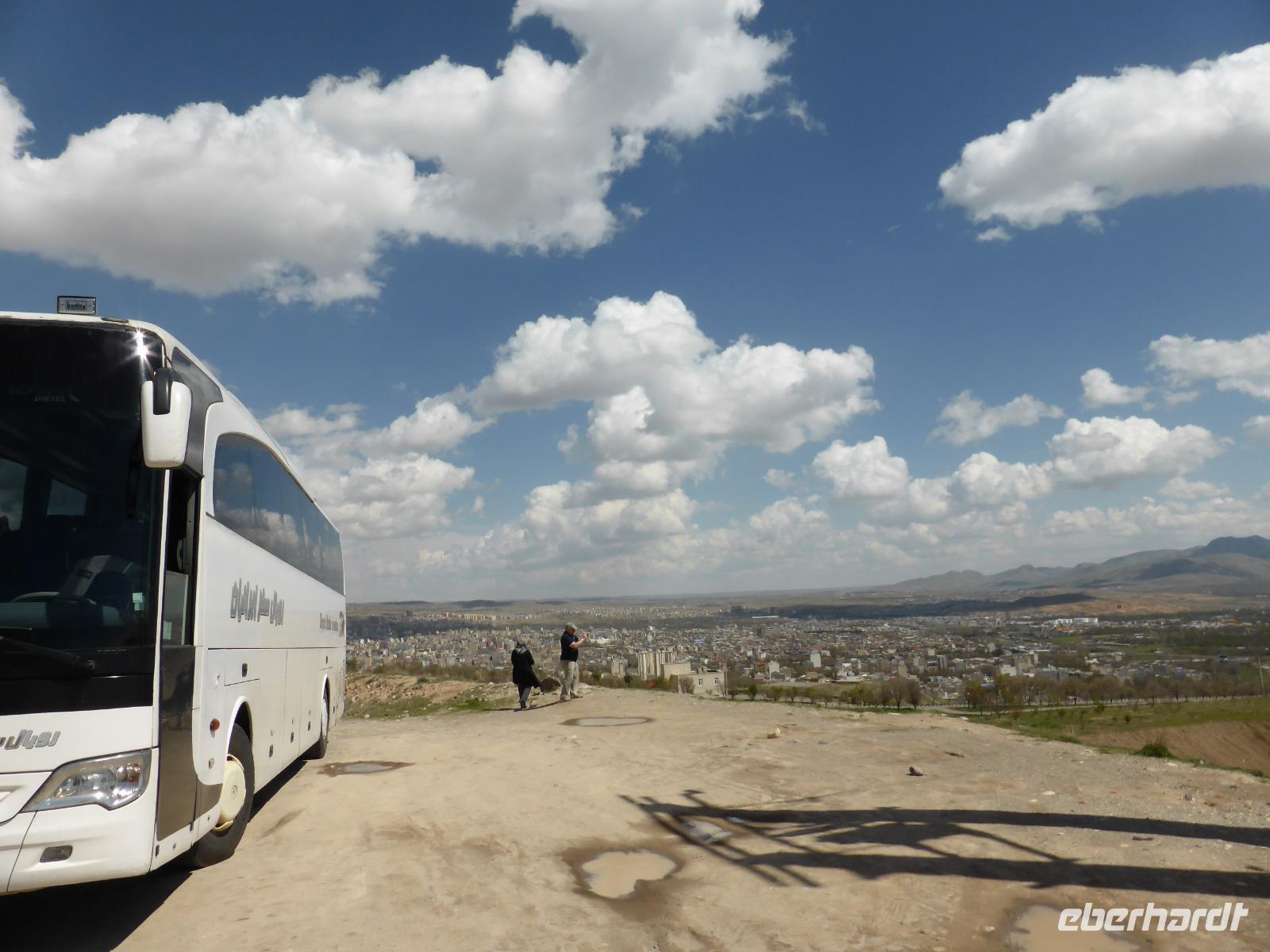 Vom Gefängnis des Salomon fuhren wir wieder zurück nach Takab und von dort über Bijar nach Santanaj. In dieser überwiegend von Kurden bewohnten Stadt legten wir eine Picknickpause ein und fuhren anschließend weiter zu unserem Hotel „Parsian" in Kermanshah. Nach dem Bezug der Zimmer trafen wir uns im obersten Stockwerk zum gemeinsamen Abendessen.