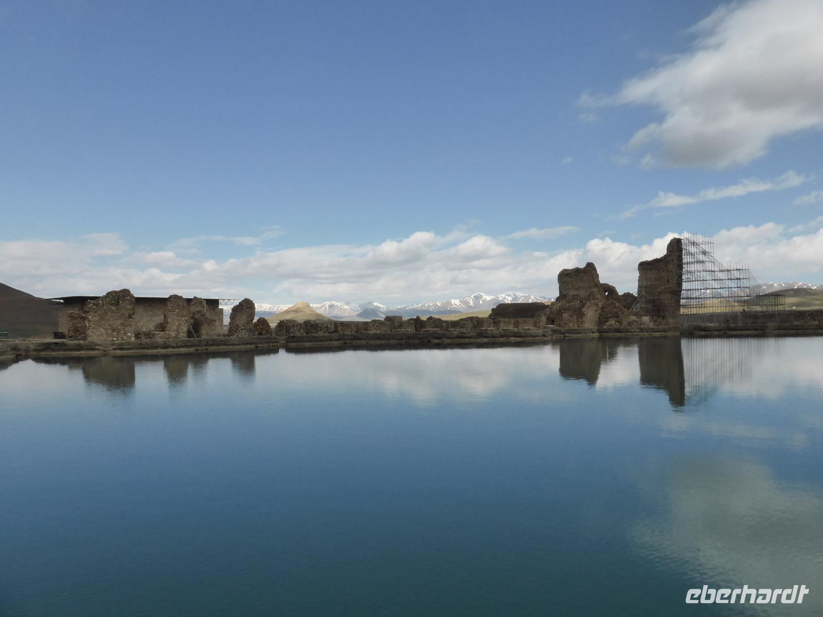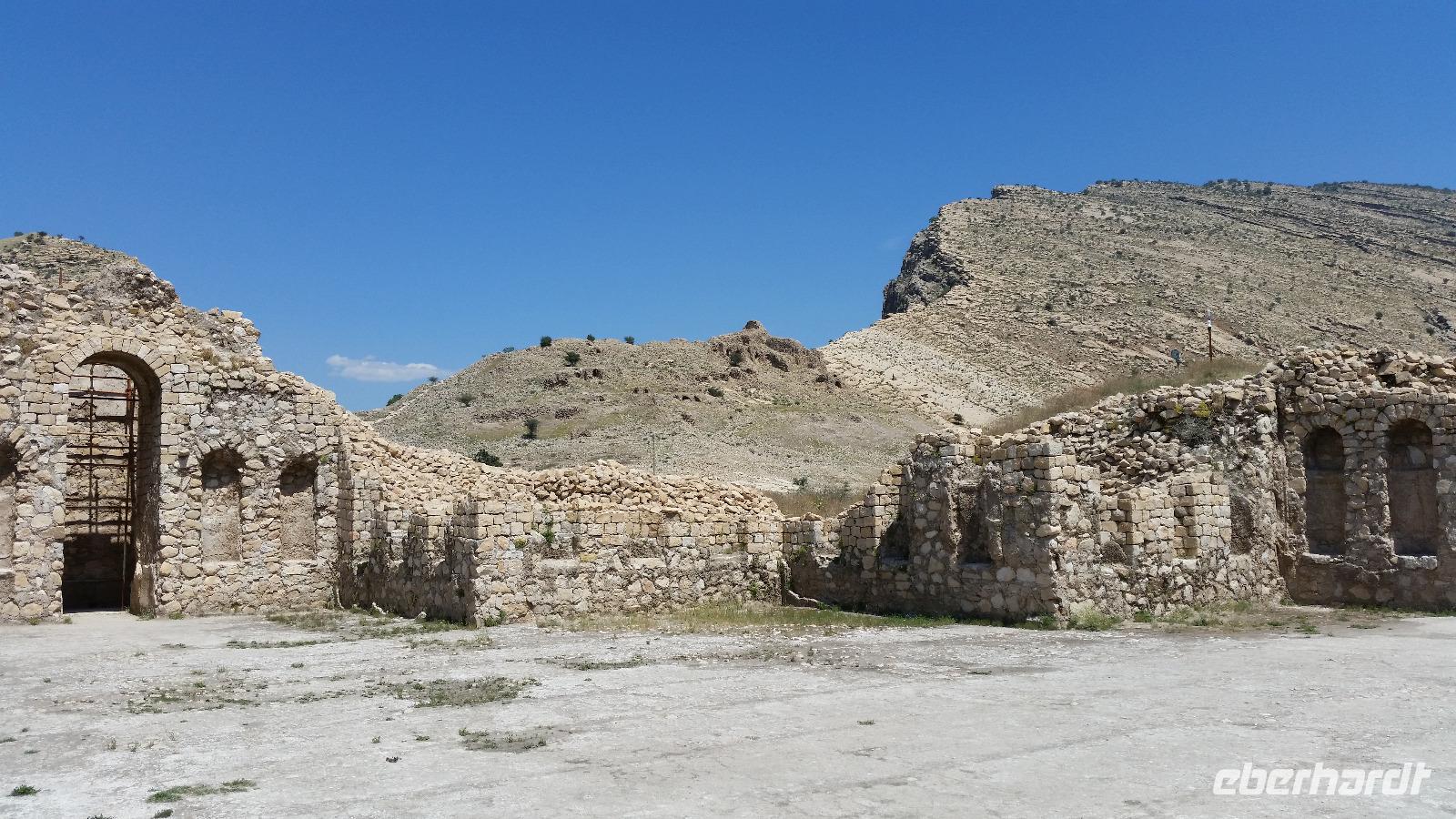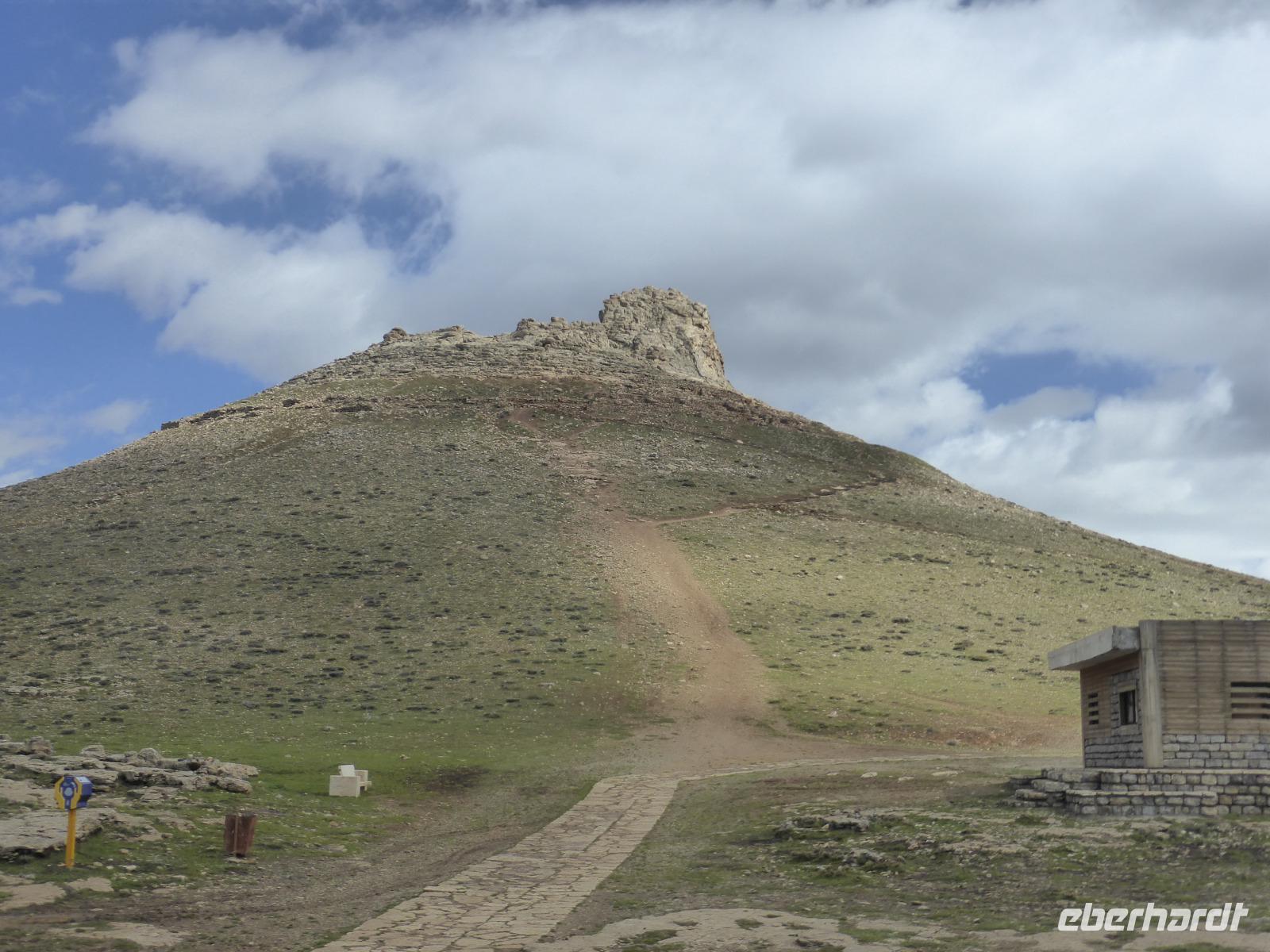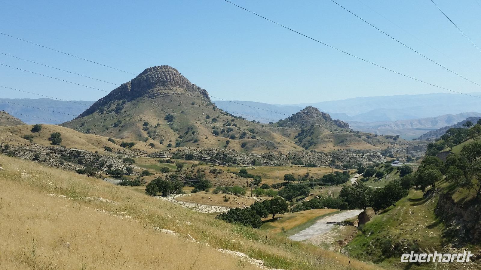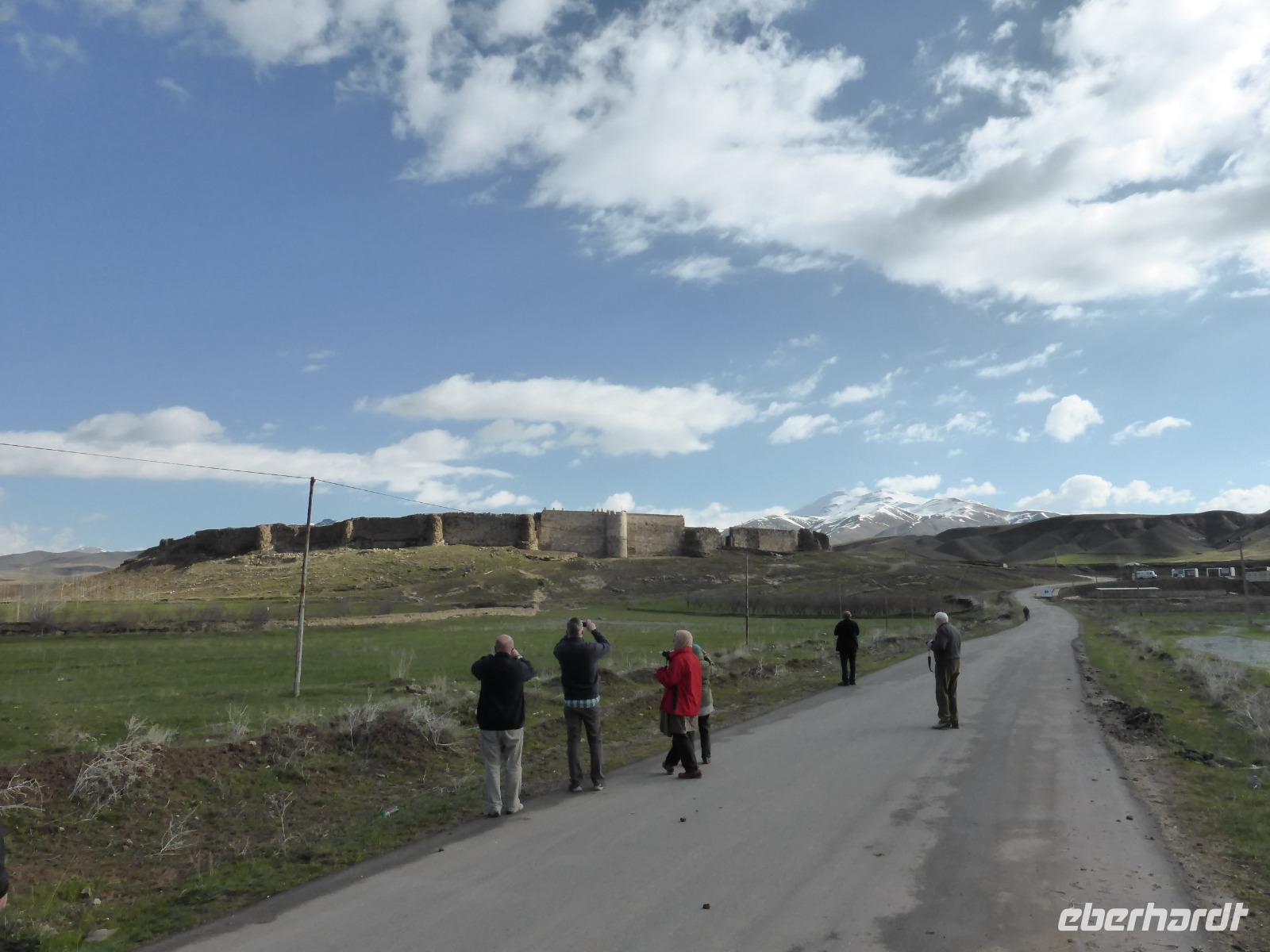 Von Takab aus ging es ein kleines Stück in nordöstliche Richtung zum Feuerheiligtum von Takh-e Suleyman. Es handelt sich hierbei um einen Palast mit Feuer- und Wassertempel aus der späten Sassanidenzeit und der dazu gehörenden Befestigungsanlage, welche die gesamte Anlage umschießt.