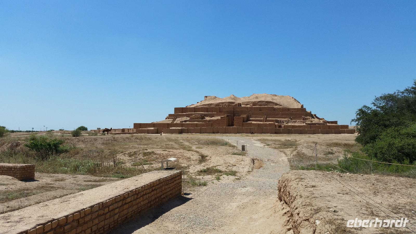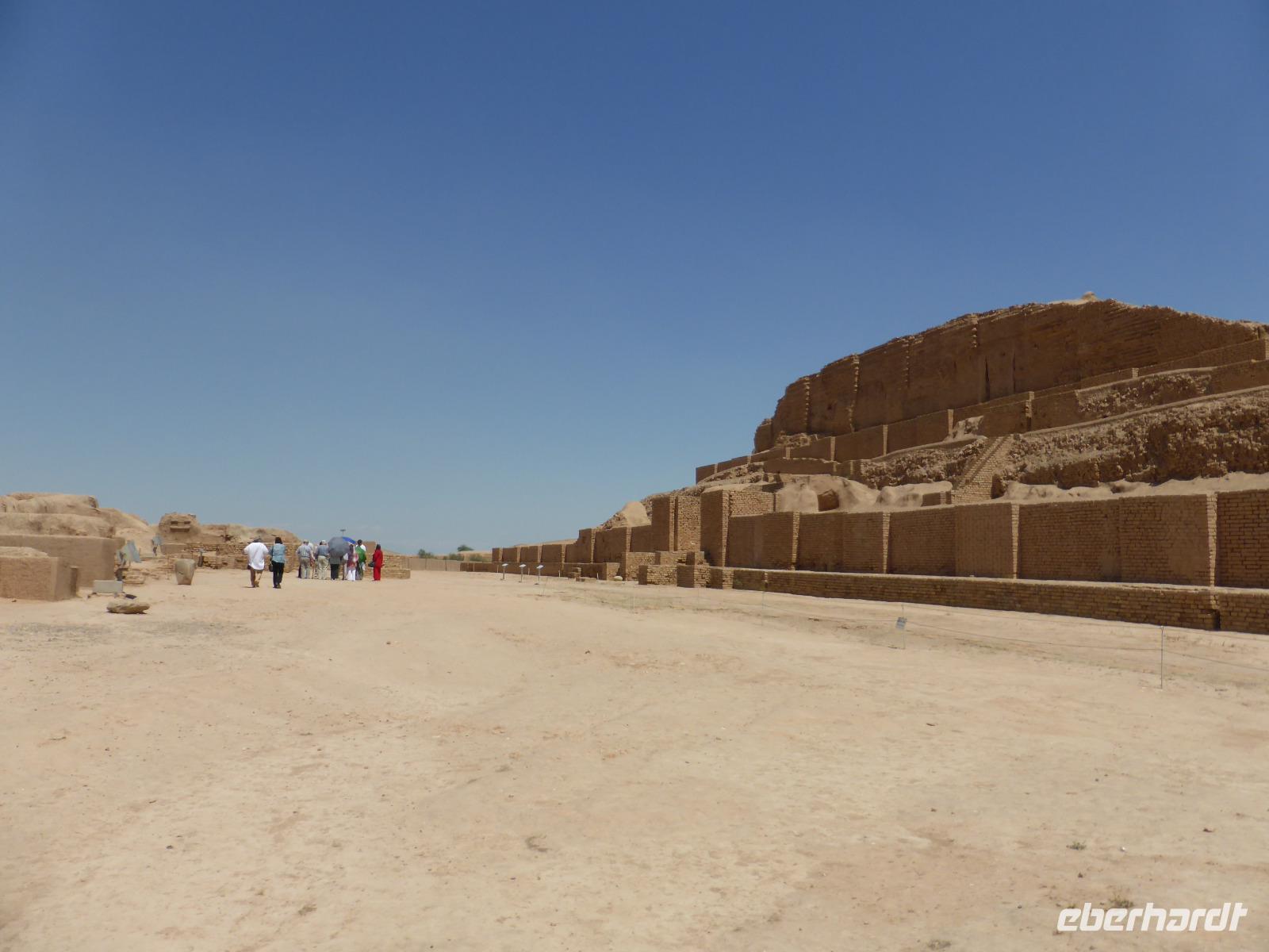 Von Shushtar ging es weiter zur Stufenpyramide (Zikkurat) von Choga Zanbil, welche eine mittel-elamische Residenzstadt von König Untasch-Napirischa war. Choga Zanbil wurde 1935 von Geologen, die auf der Suche nach Erdöl waren, vom Flugzeug aus entdeckt. Die Zikkurat (Stufenpyramide) ist eine der am besten erhaltenen Mesopotamiens und hat eine Seitenlänge von 105 x 105 Metern. Ursprünglich erreichte sie eine Höhe von 50 Metern und war den Göttern Inschuschinak und Napirischa gewidmet. Der Zugang erfolgte nicht über Außentreppen, sondern über Treppen im Inneren. Auf den Tempelportalen wurden halb-lebensgroße Tonfiguren von Stieren und Greifen gefunden.