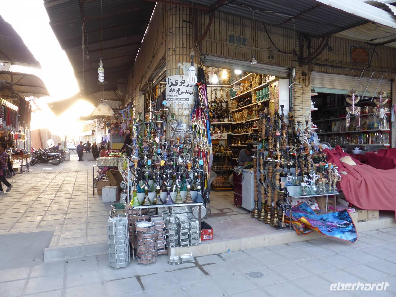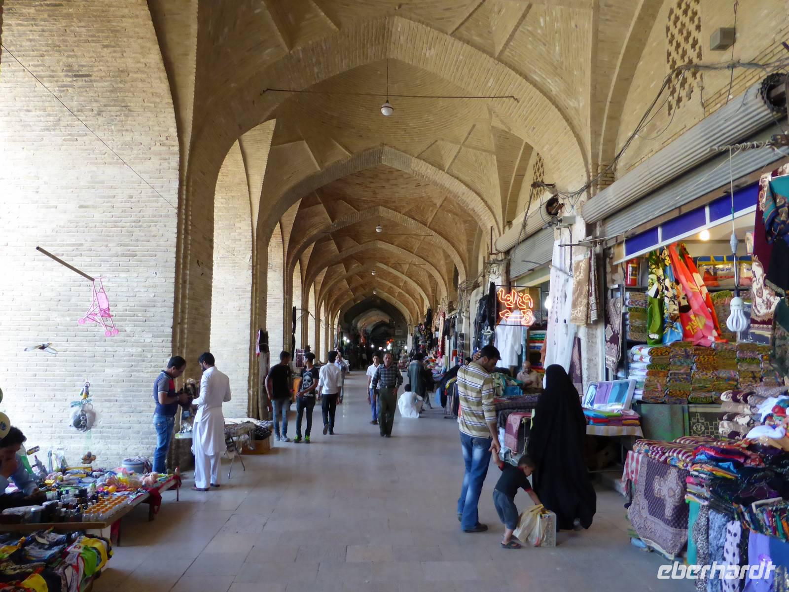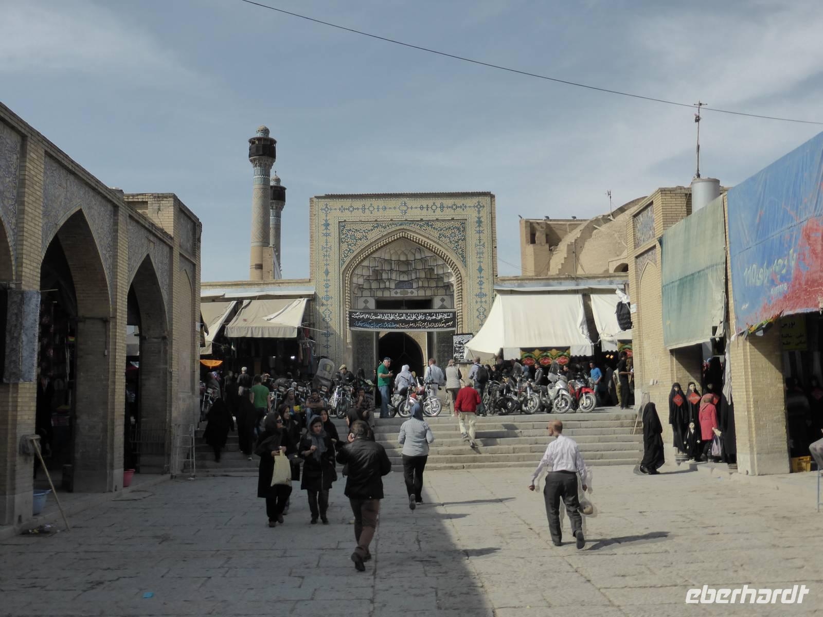 Danach fuhren wir zum Saadi-Mausoleum. Der moderne Grabbau liegt am Ende einer schönen Gartenanlage. Saadi starb im Jahre 1292 in Shiraz. Sein bekanntestes Werk heißt „Golestan" (Rosengarten). Anschließend ging es zum Mausoleum des Dichters Hafis. Unter einer auf acht Säulen ruhenden Kuppel liegt der Alabastergrabstein des 1389 verstorbenen Dichters. Hafis besang die Liebe und den Wein, seit der Gründung der Islamischen Republik Iran im Jahre 1979 ist aber jeglicher Alkoholgenuss im Land verboten. Heute ist das Grabmal von Hafis auch ein Ort für Verliebte, denn viele Iraner besuchen während ihrer Hochzeitsreise das Grab von Hafis und lesen Gedichte von ihm vor. Nach dem Besuch der beiden Grabmäler fuhren wir zum Basar. Danach konnten wir das kurze Stück bis zu unserem Hotel zu Fuß gehen oder die Mittagspause im Basar verbringen.
